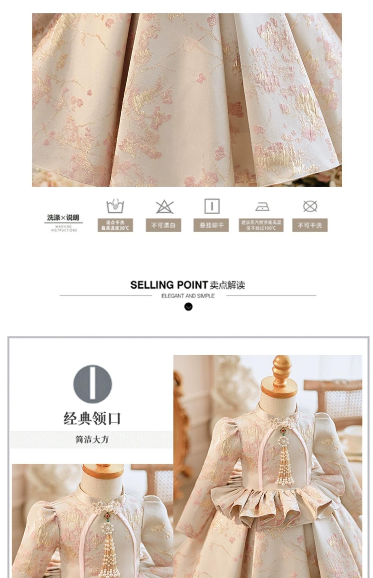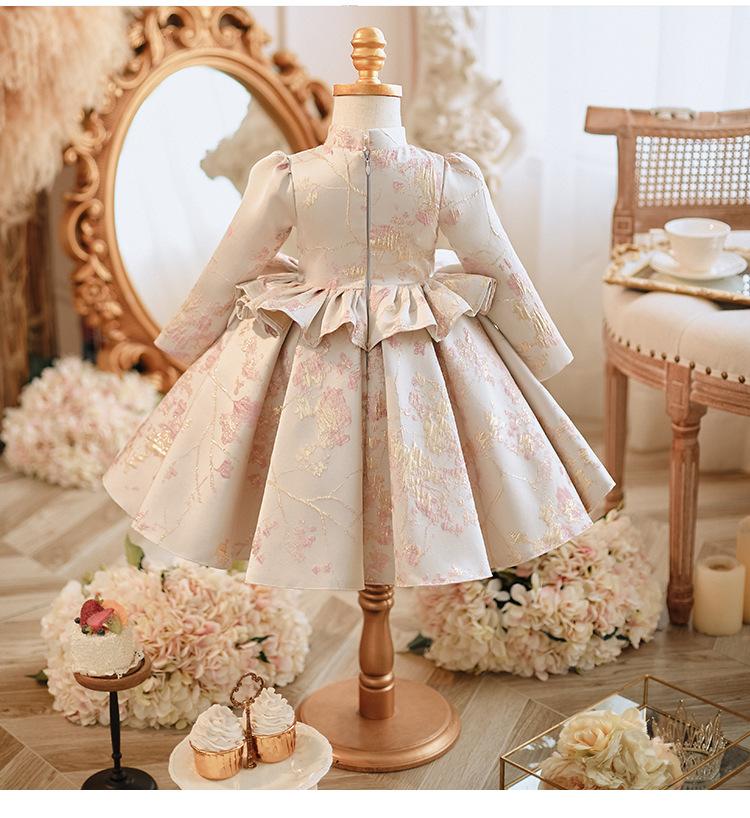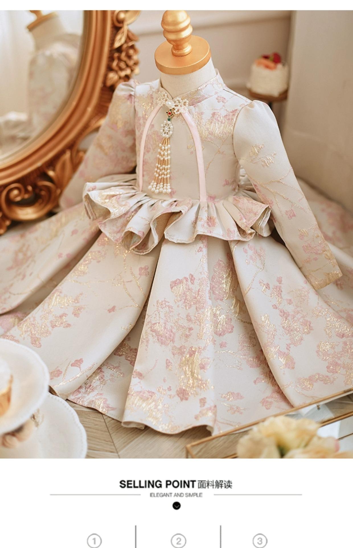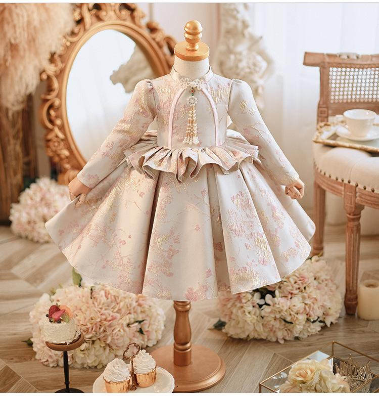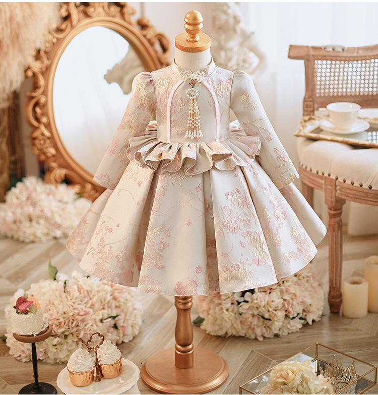 Vestido Cheongsam de Alta Gama para Niños Vestido de Princesa Niña de las Flores Bebé Niña Primer Cumpleaños Falda Tutú Manga Larga Primavera Engrosado