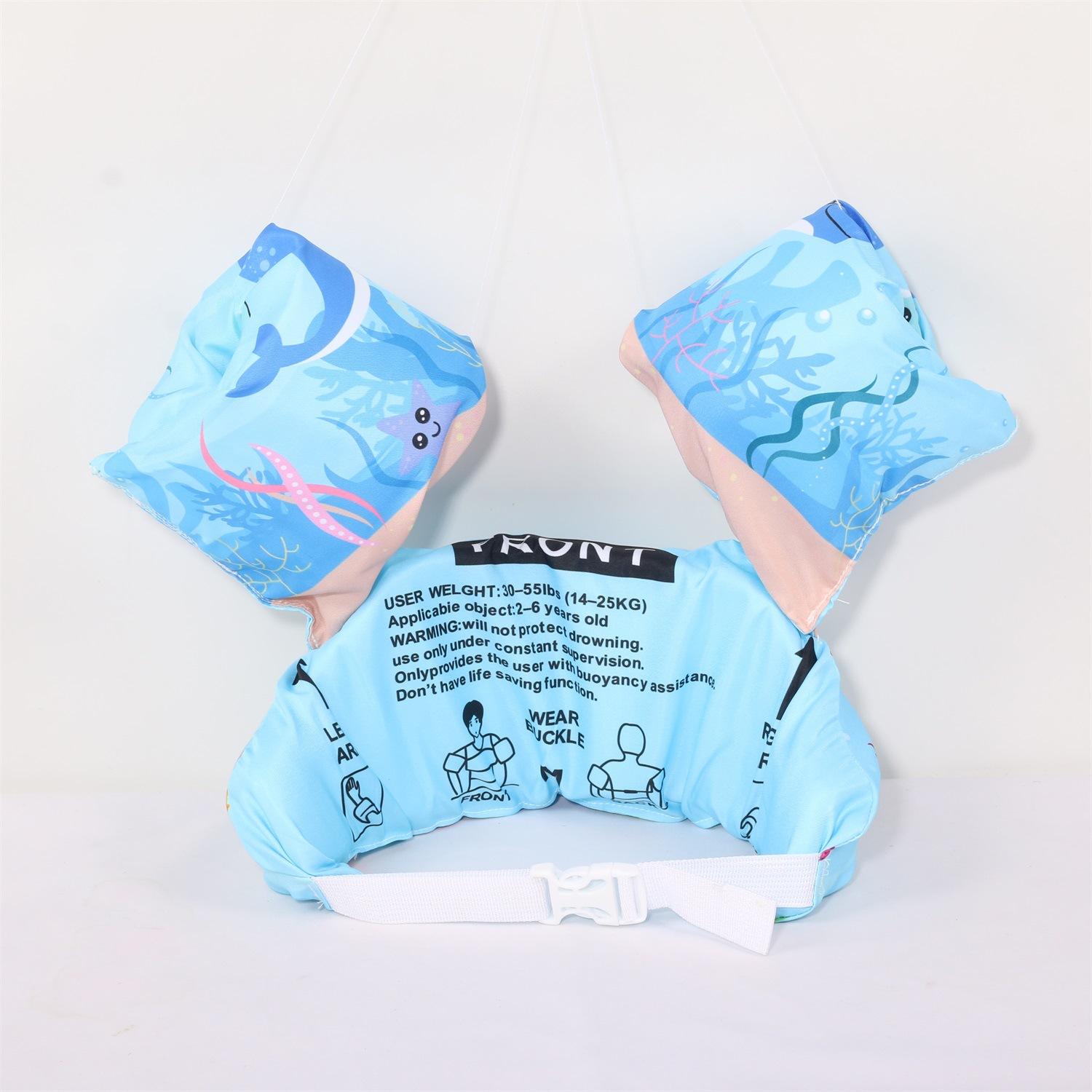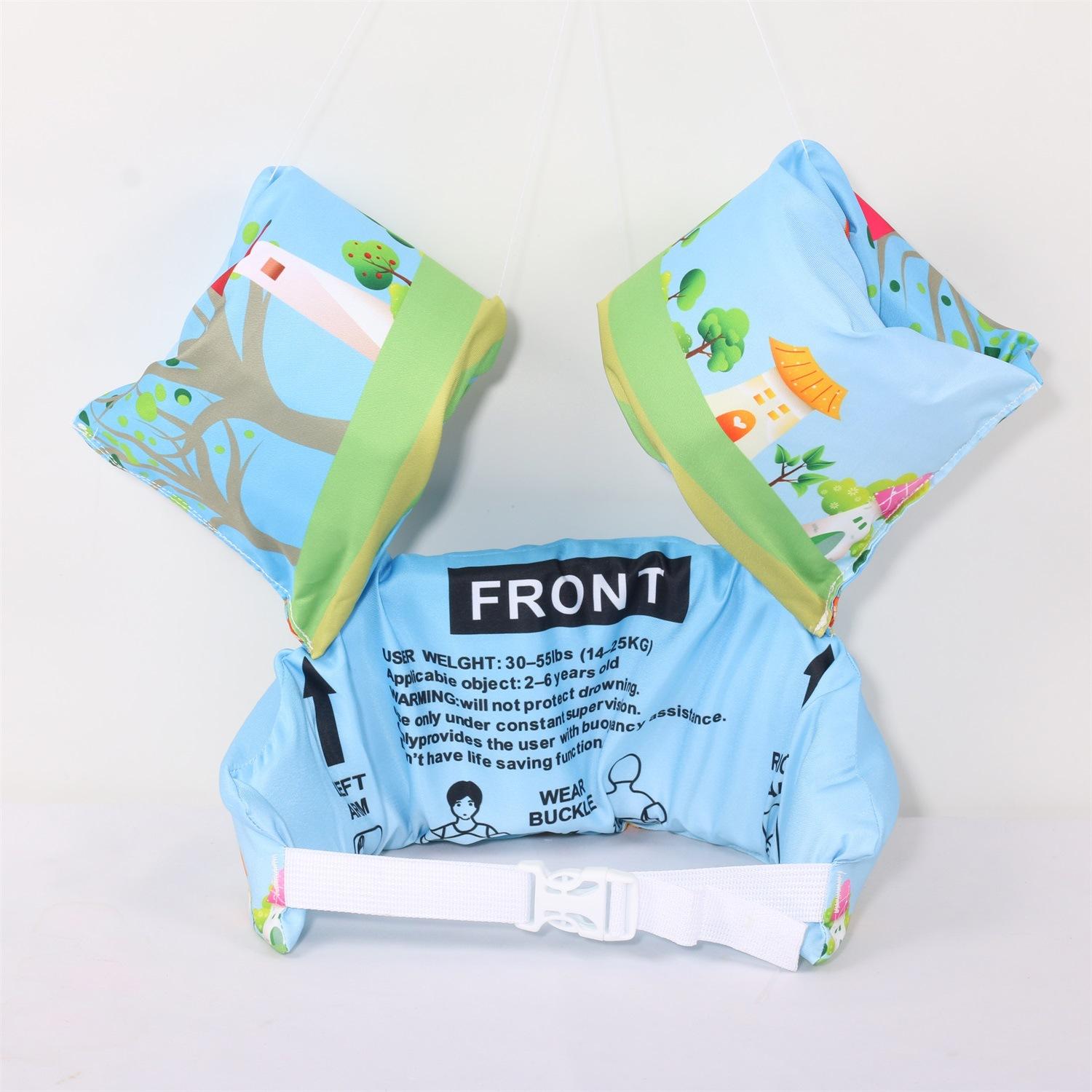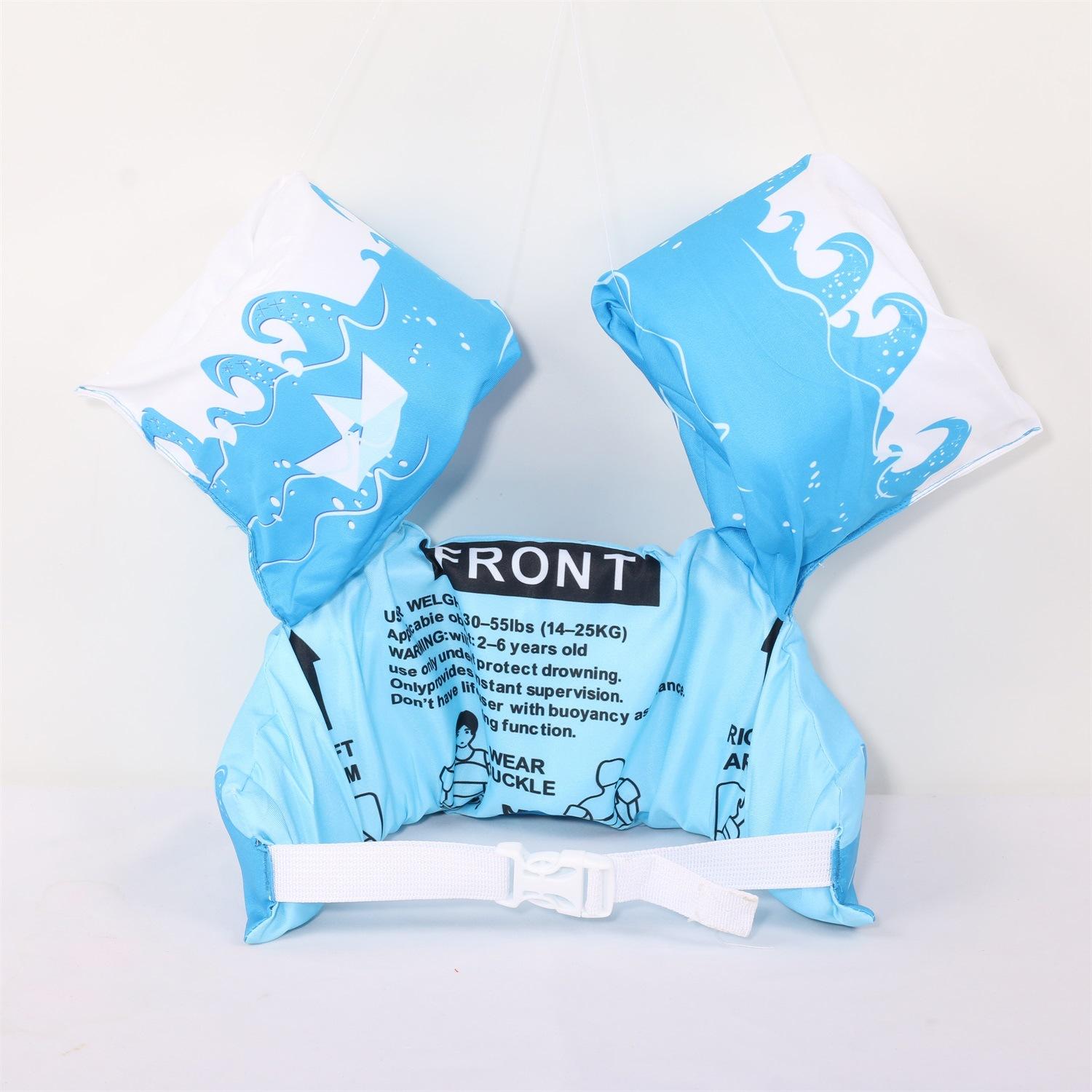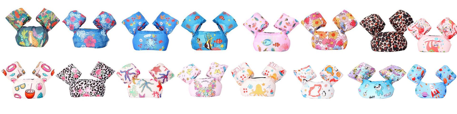 Nota: Los brazos y el cuerpo están hechos de espuma EPE de 4 cm de grosor, lo suficientemente grande para flotar. La variedad de patrones, las juntas reforzadas y las mangas reforzadas con nudos aumentan la seguridad del bebé.