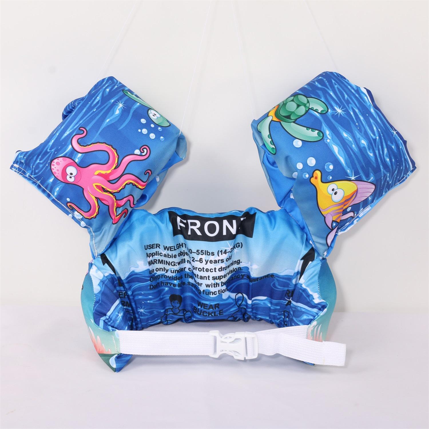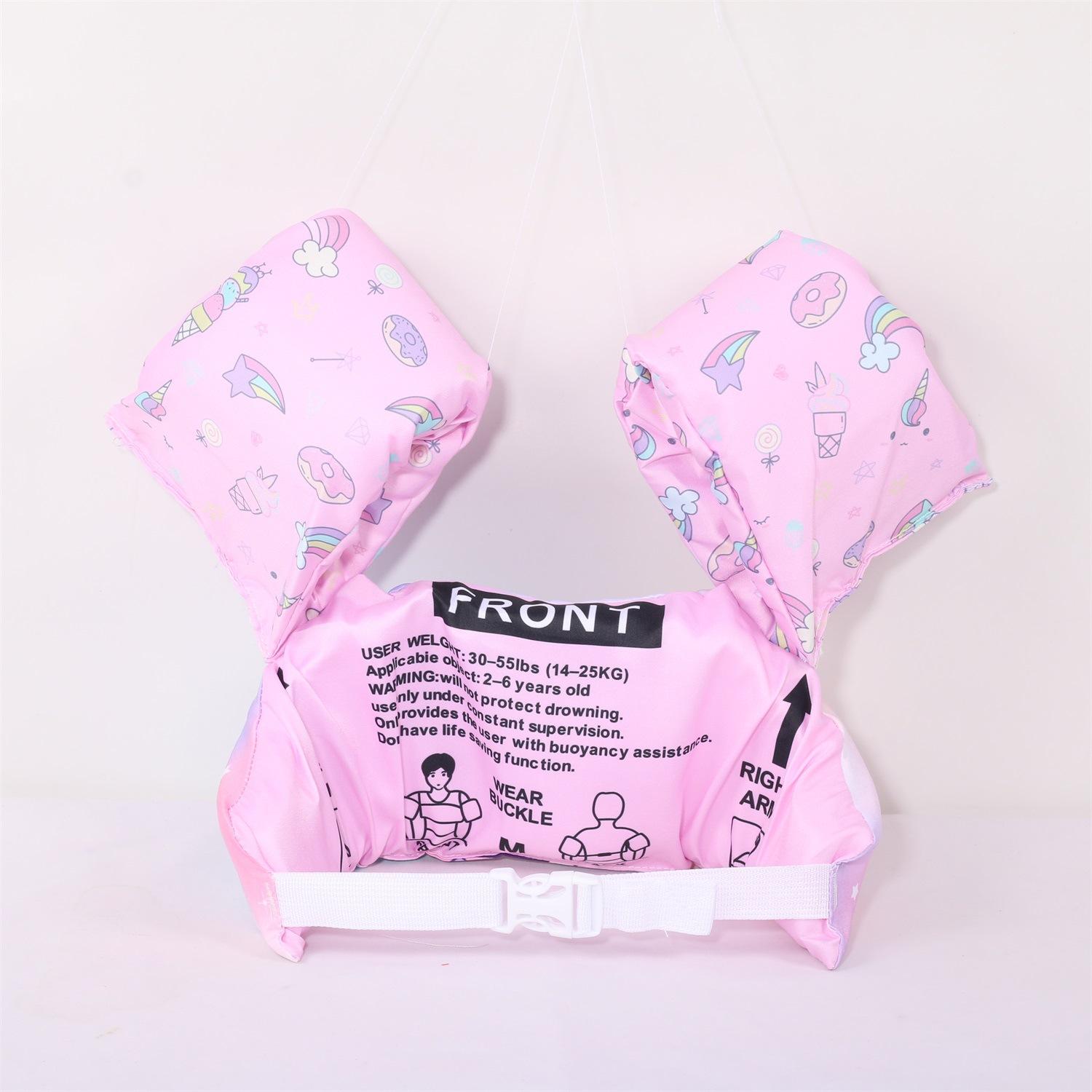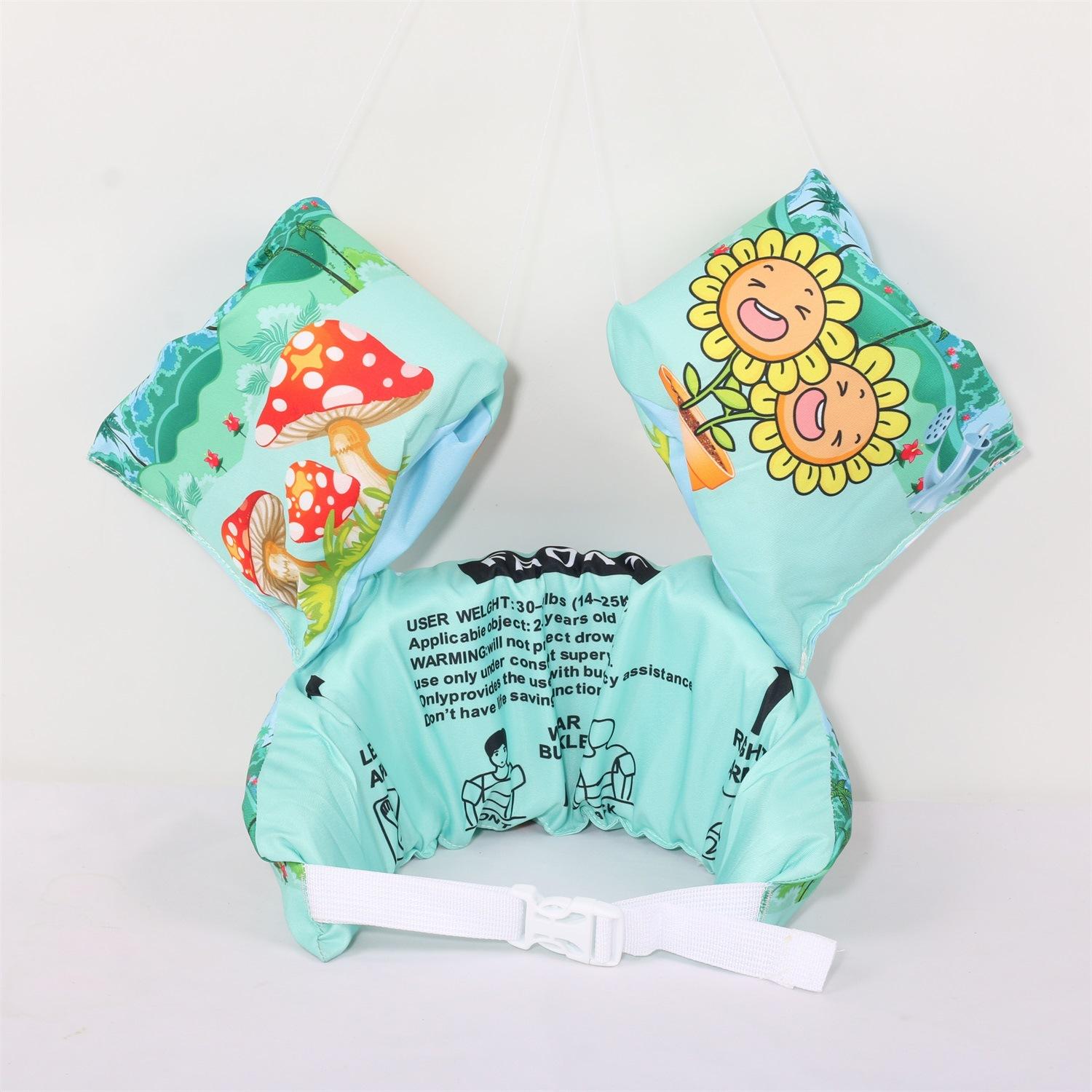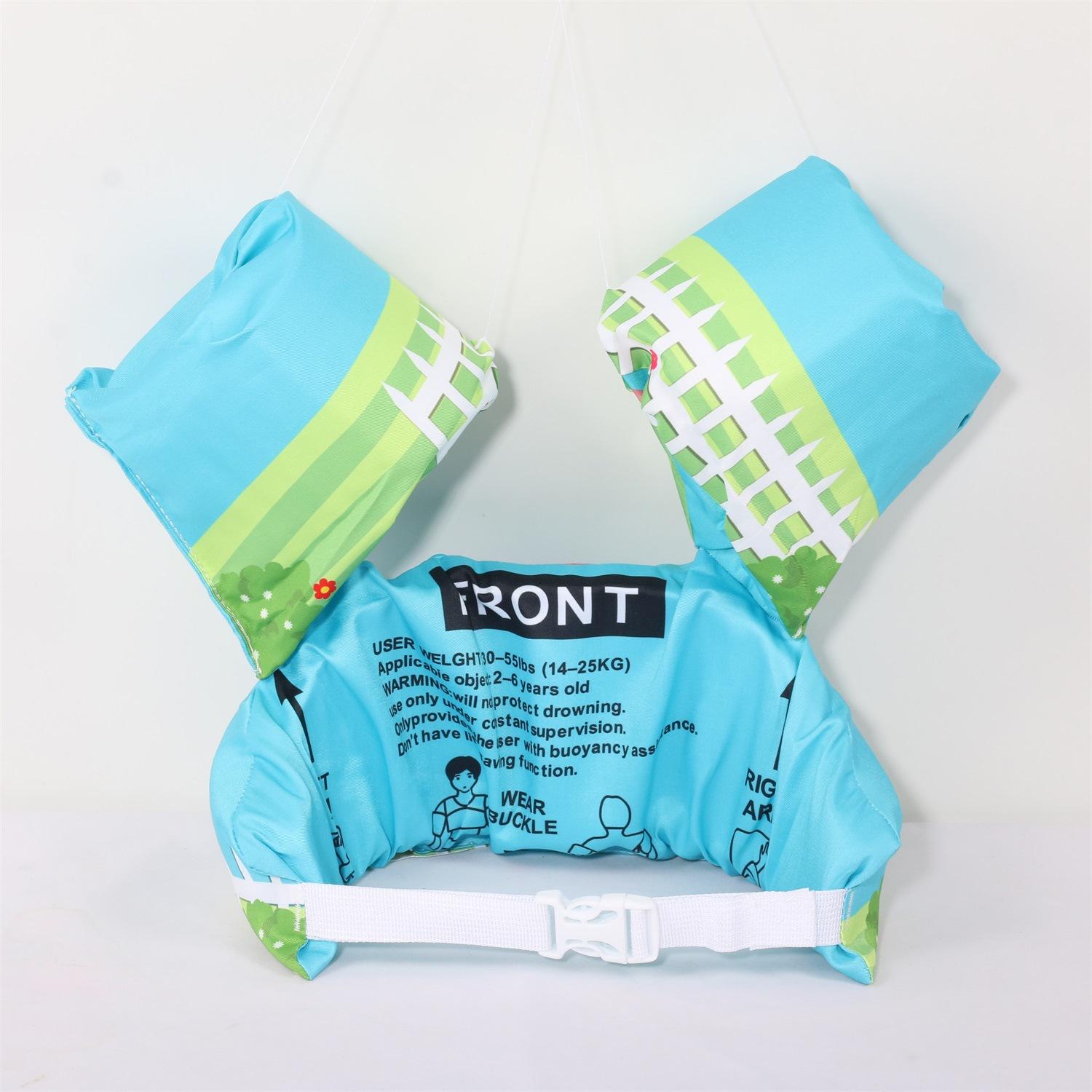 Nota: Los brazos y el cuerpo están hechos de espuma EPE de 4 cm de grosor, lo suficientemente grande para flotar. La variedad de patrones, las juntas reforzadas y las mangas reforzadas con nudos aumentan la seguridad del bebé.
