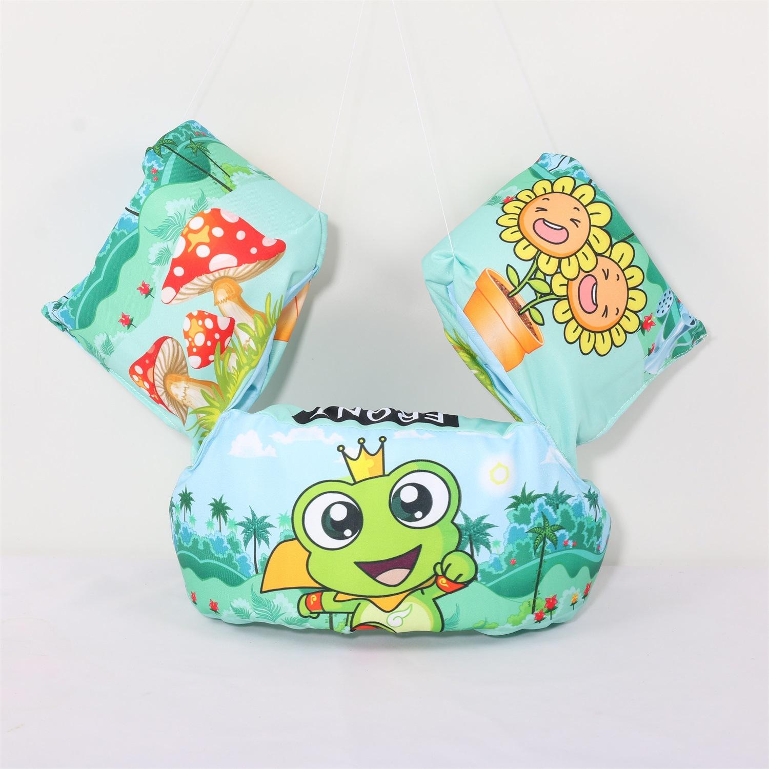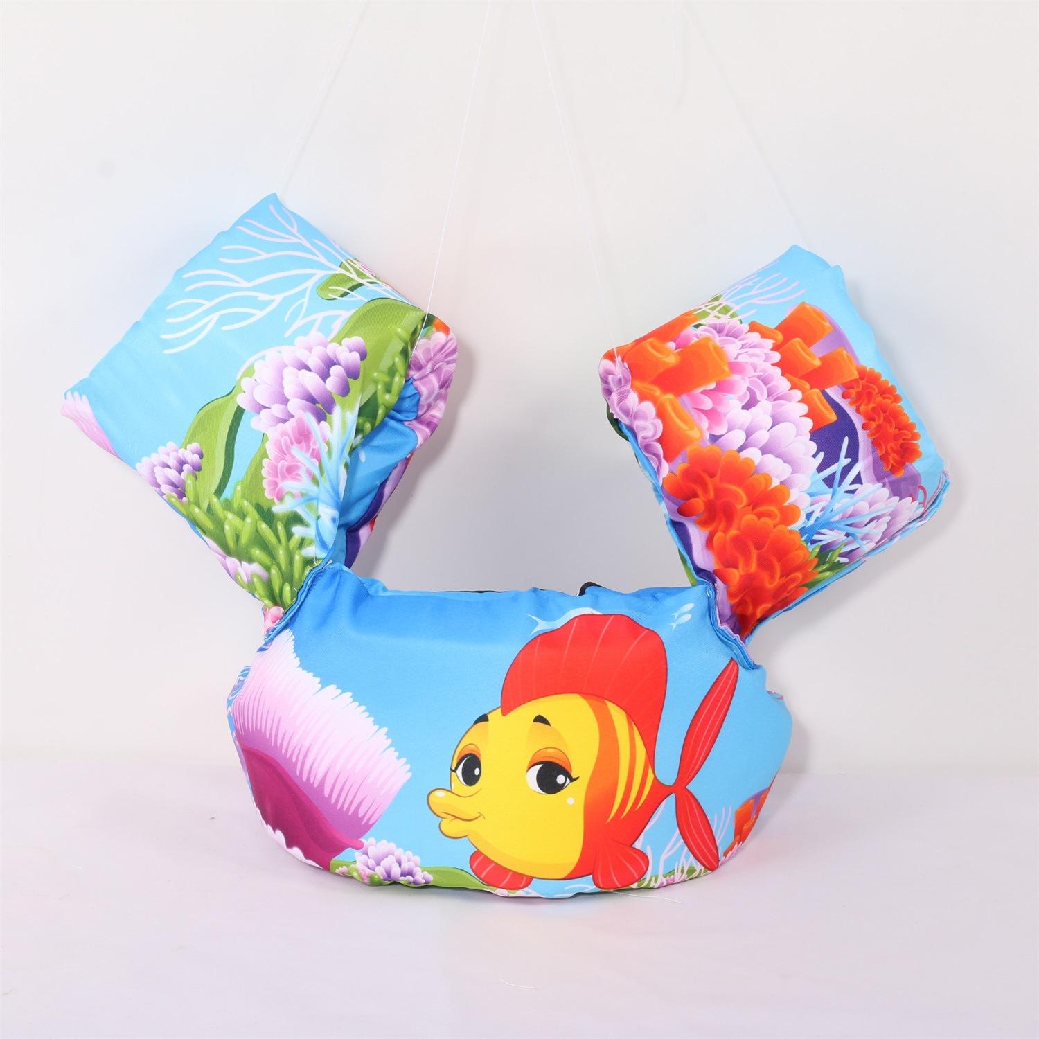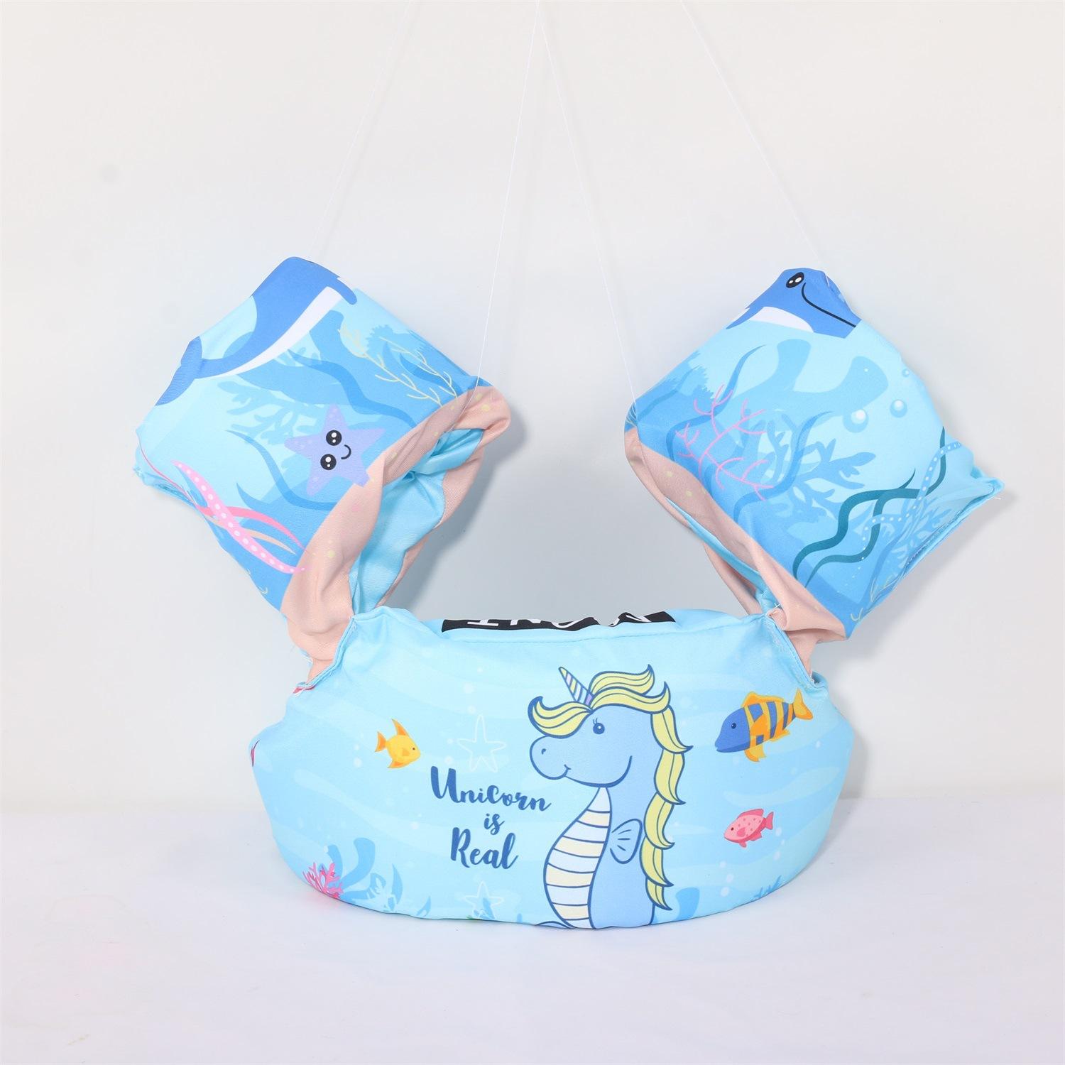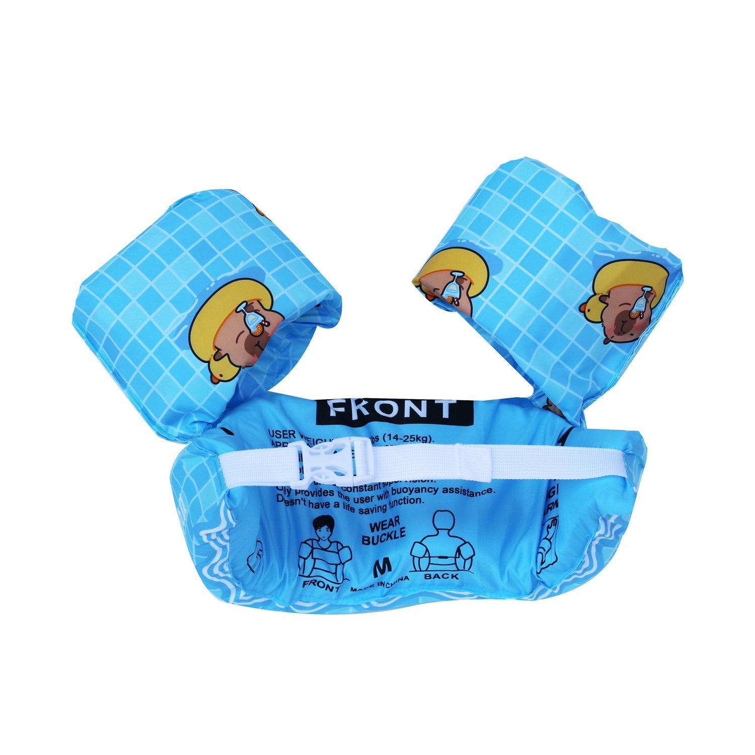 Nota: Los brazos y el cuerpo están hechos de espuma EPE de 4 cm de grosor, lo suficientemente grande para flotar. La variedad de patrones, las juntas reforzadas y las mangas reforzadas con nudos aumentan la seguridad del bebé.