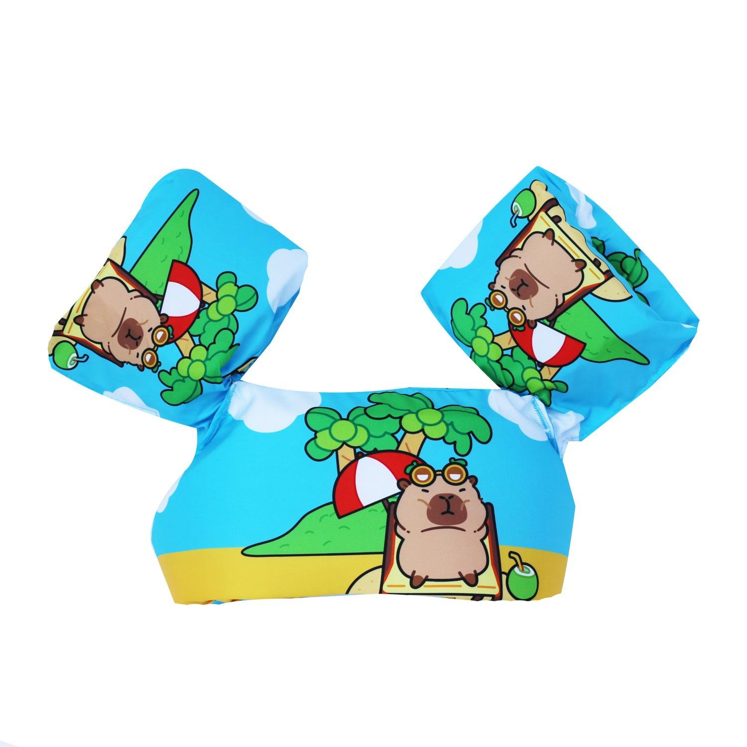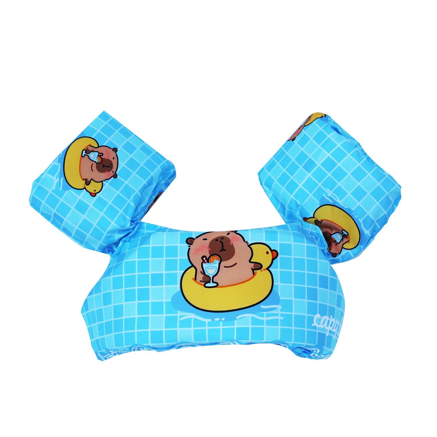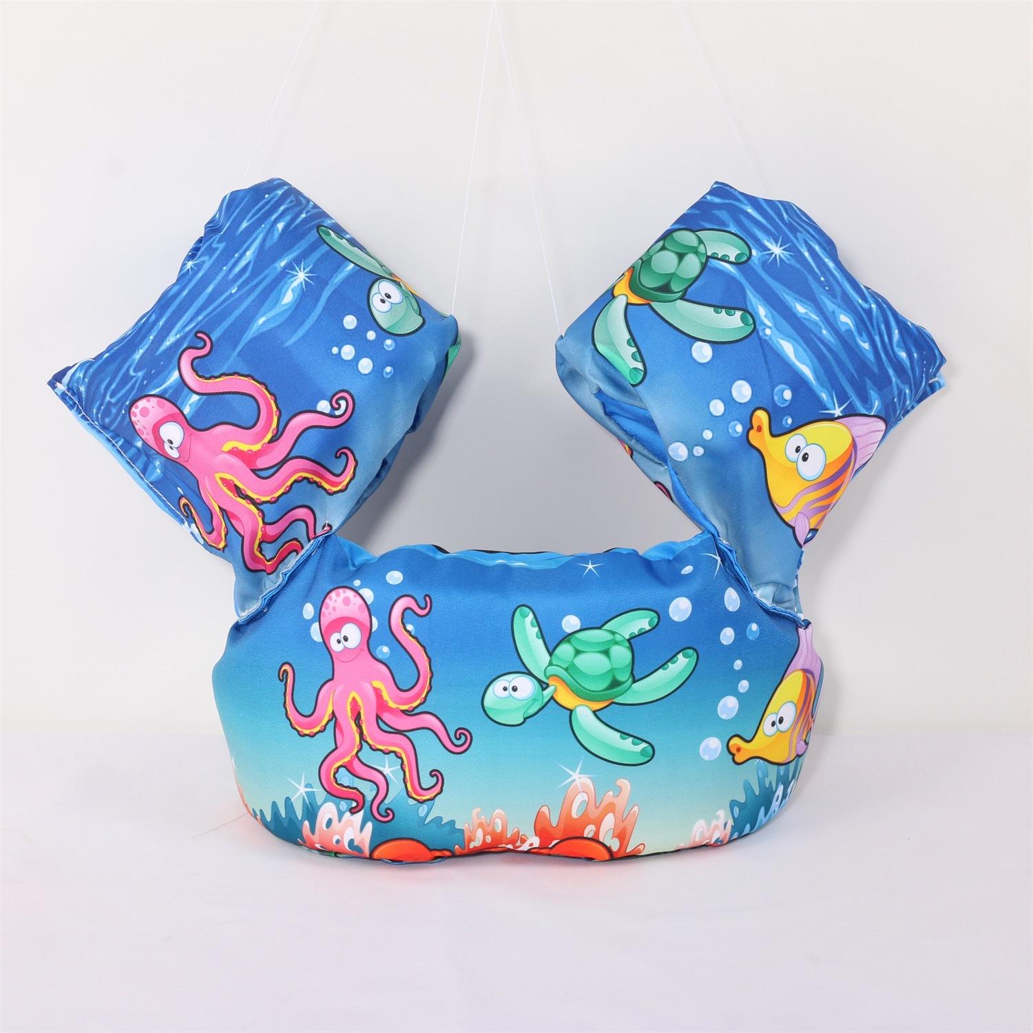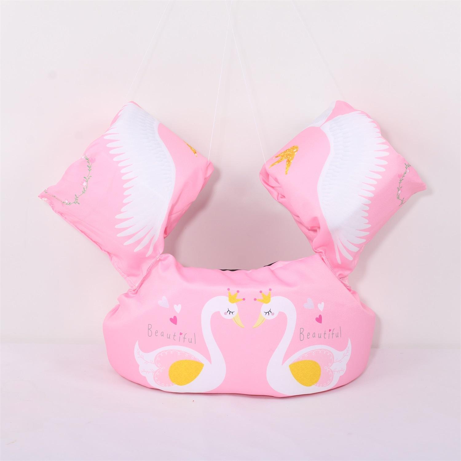 Nota: Los brazos y el cuerpo están hechos de espuma EPE de 4 cm de grosor, lo suficientemente grande para flotar. La variedad de patrones, las juntas reforzadas y las mangas reforzadas con nudos aumentan la seguridad del bebé.