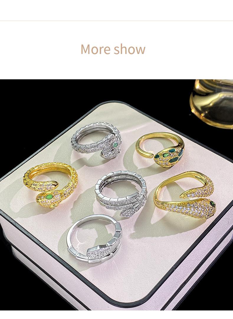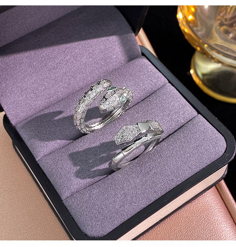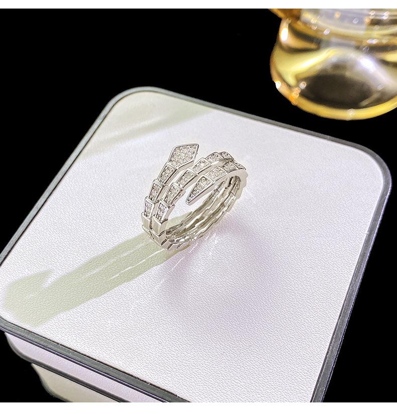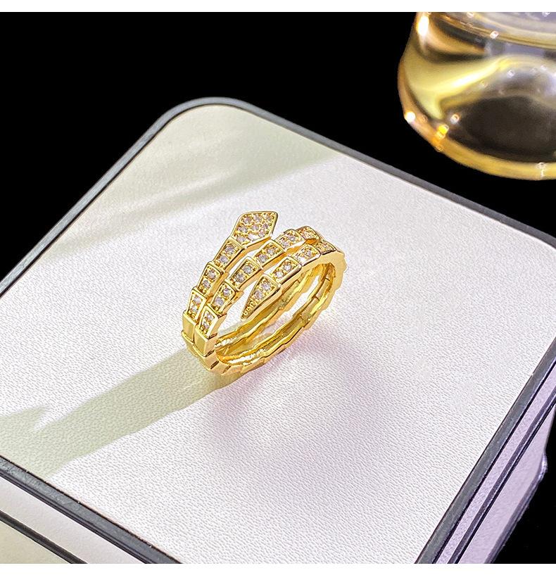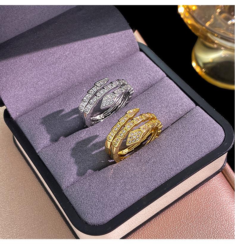 Anillo de serpiente popular transfronterizo europeo y americano con incrustaciones de cobre y circonita, anillo de moda que combina con todo, lleno de diamantes, joyería ligera de lujo.
