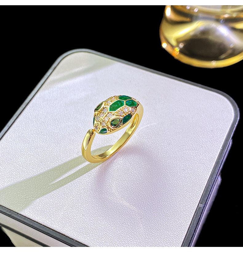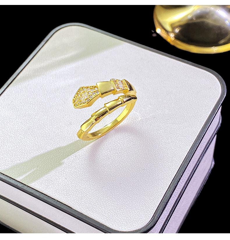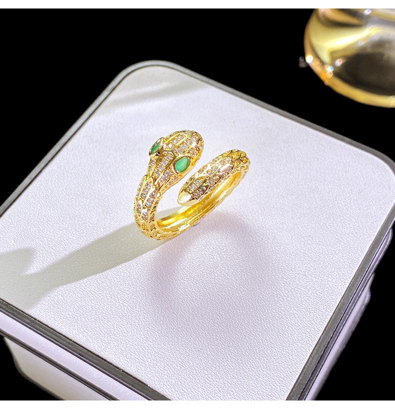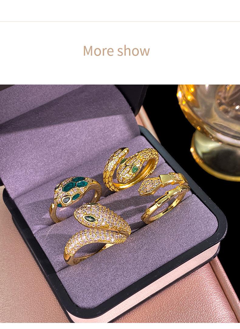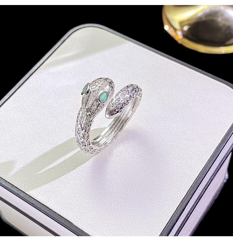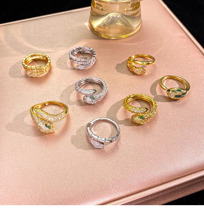 Anillo de serpiente popular transfronterizo europeo y americano con incrustaciones de cobre y circonita, anillo de moda que combina con todo, lleno de diamantes, joyería ligera de lujo.