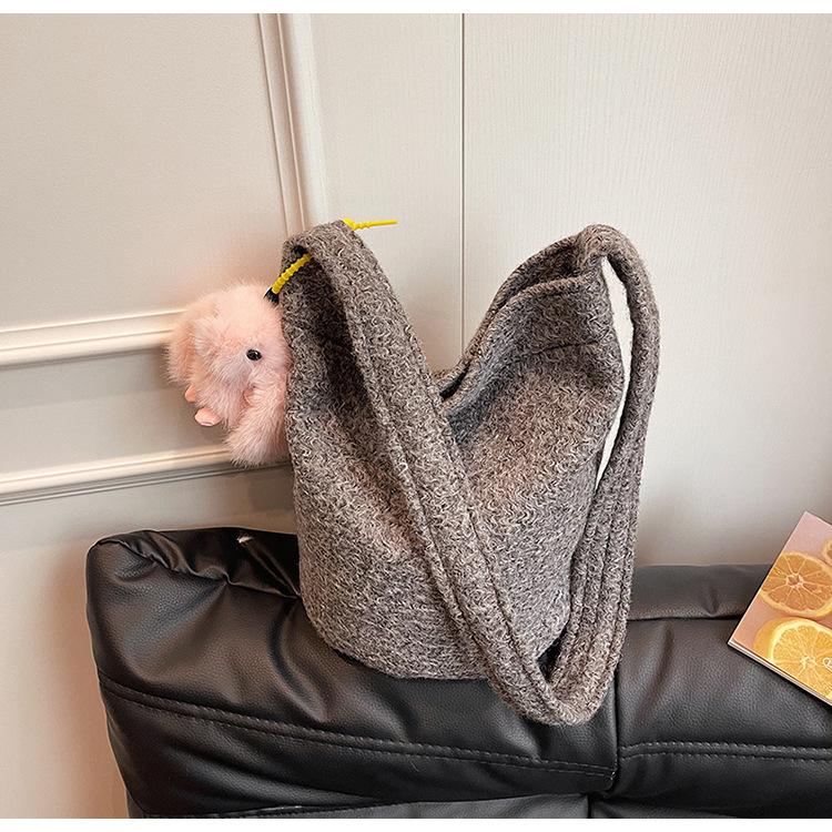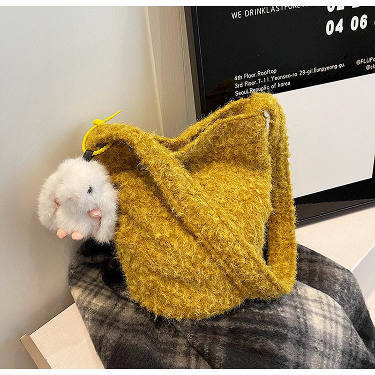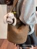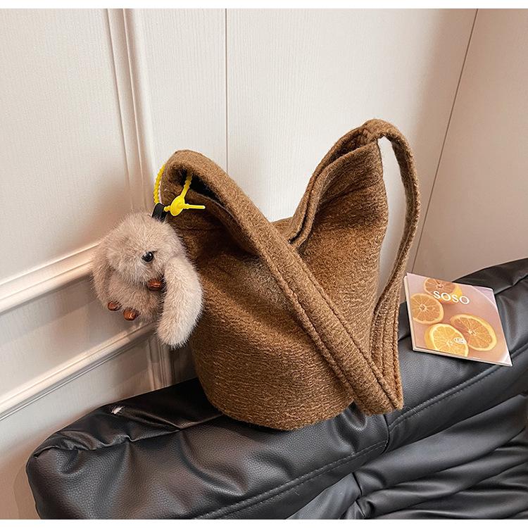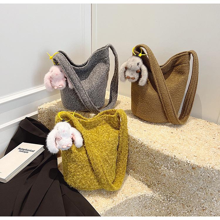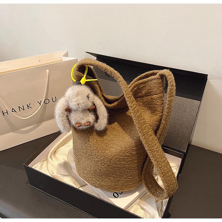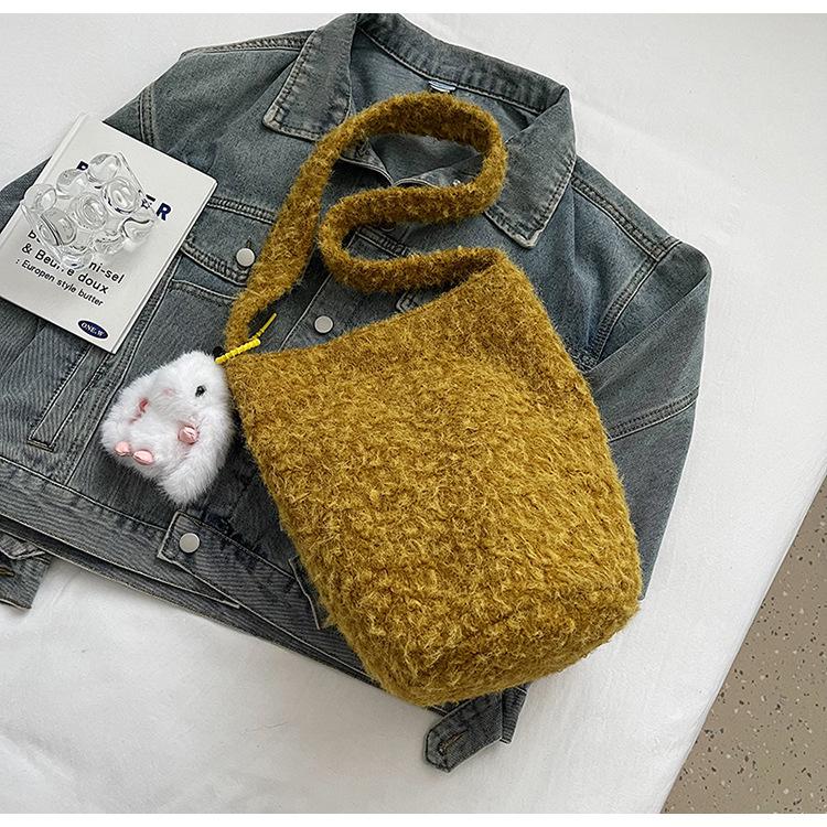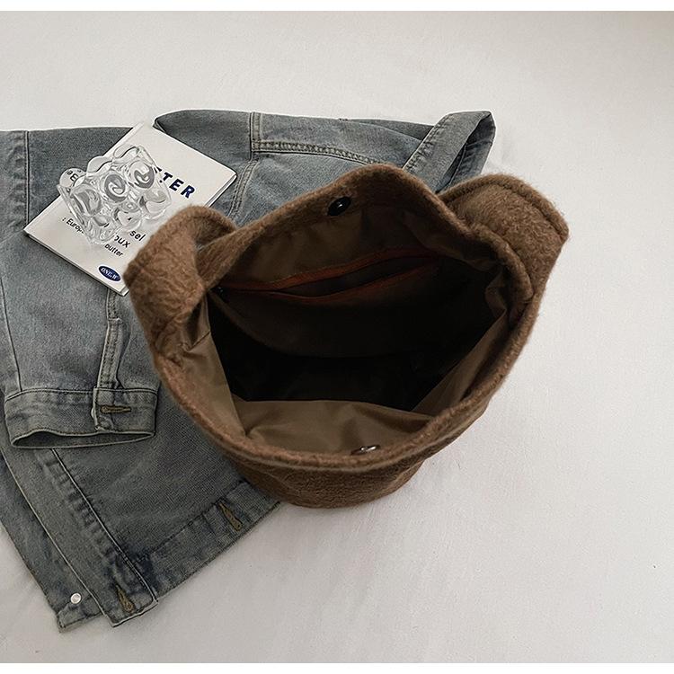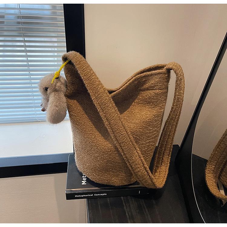 Bolso bandolera de lana coreana para mujer, otoño e invierno 2024, nueva tendencia, bolso de cubo informal, bolso de mano de gran capacidad