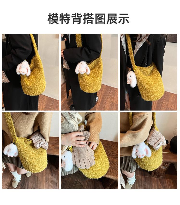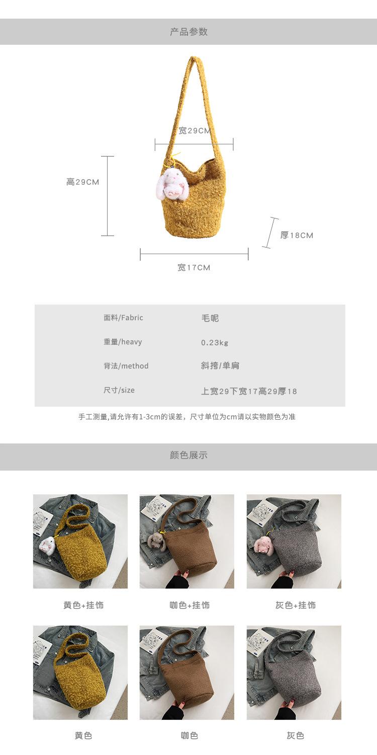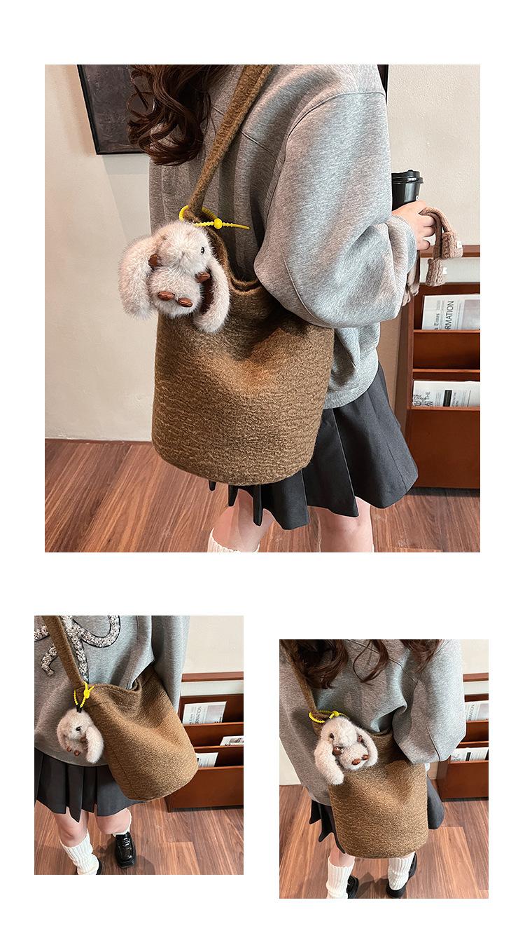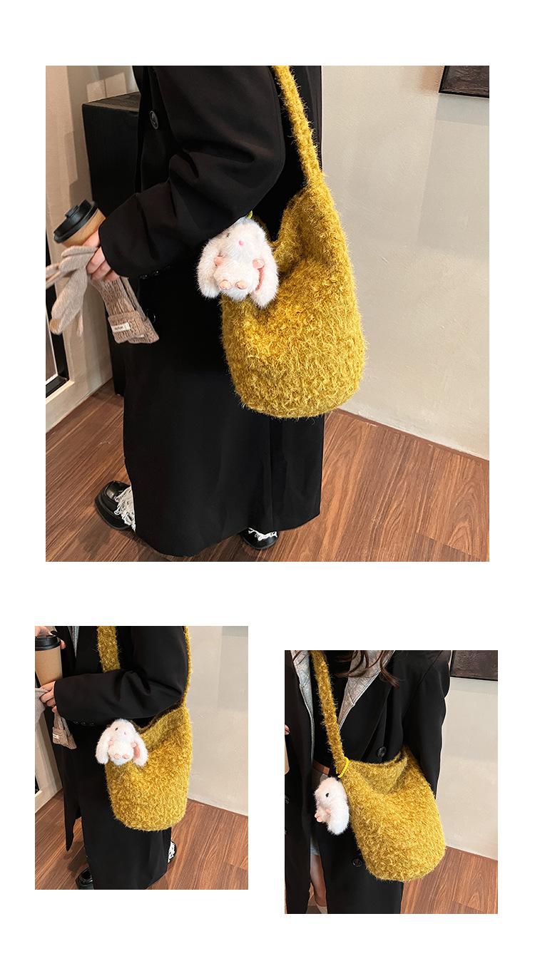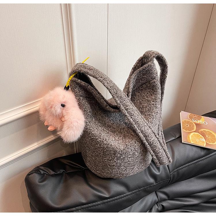 Bolso bandolera de lana coreana para mujer, otoño e invierno 2024, nueva tendencia, bolso de cubo informal, bolso de mano de gran capacidad