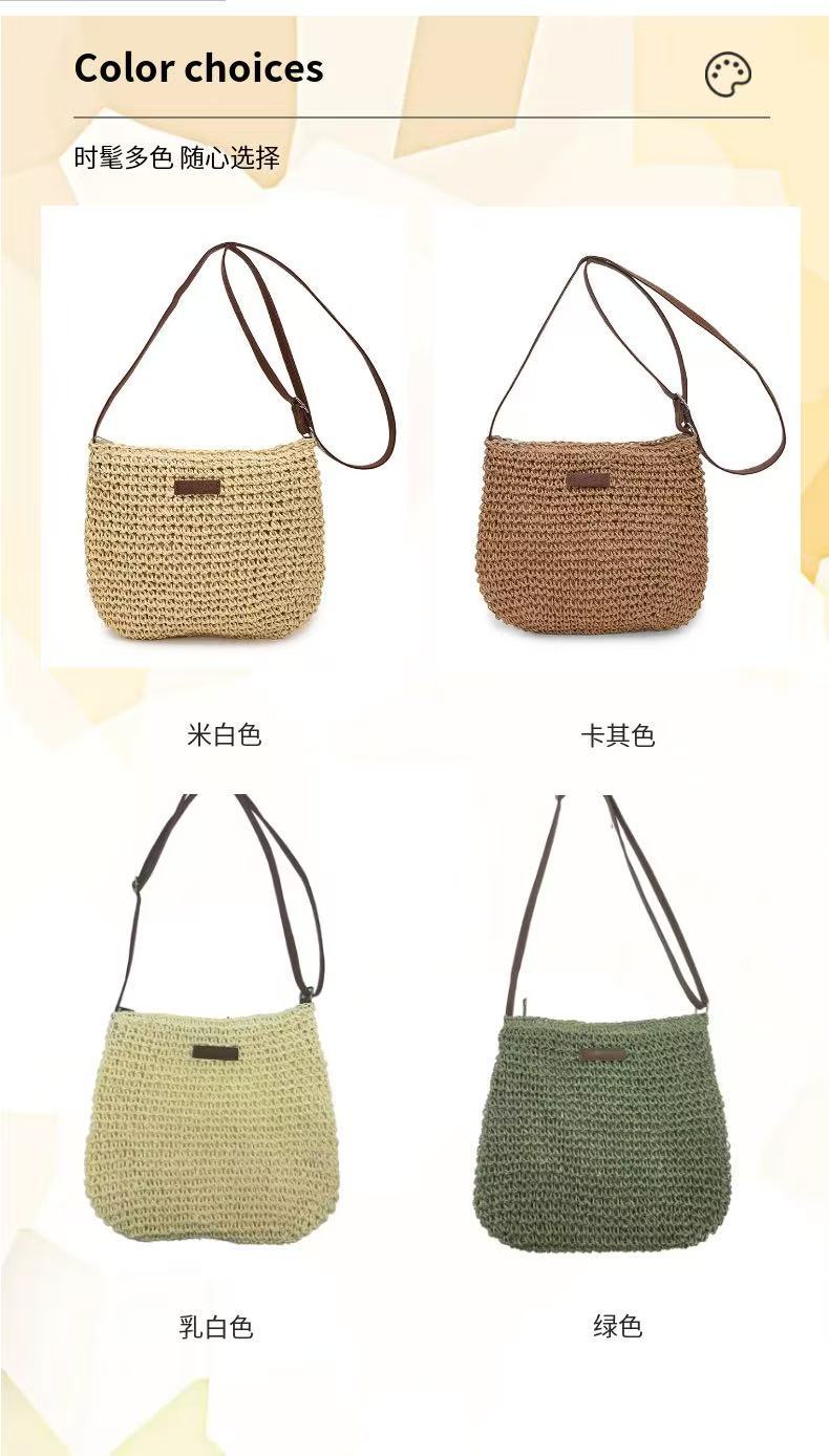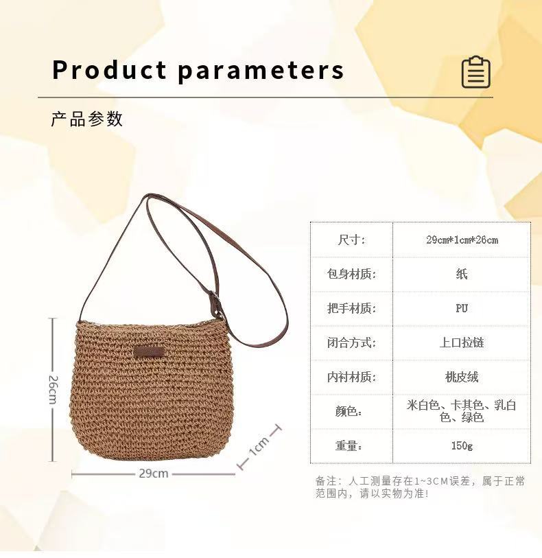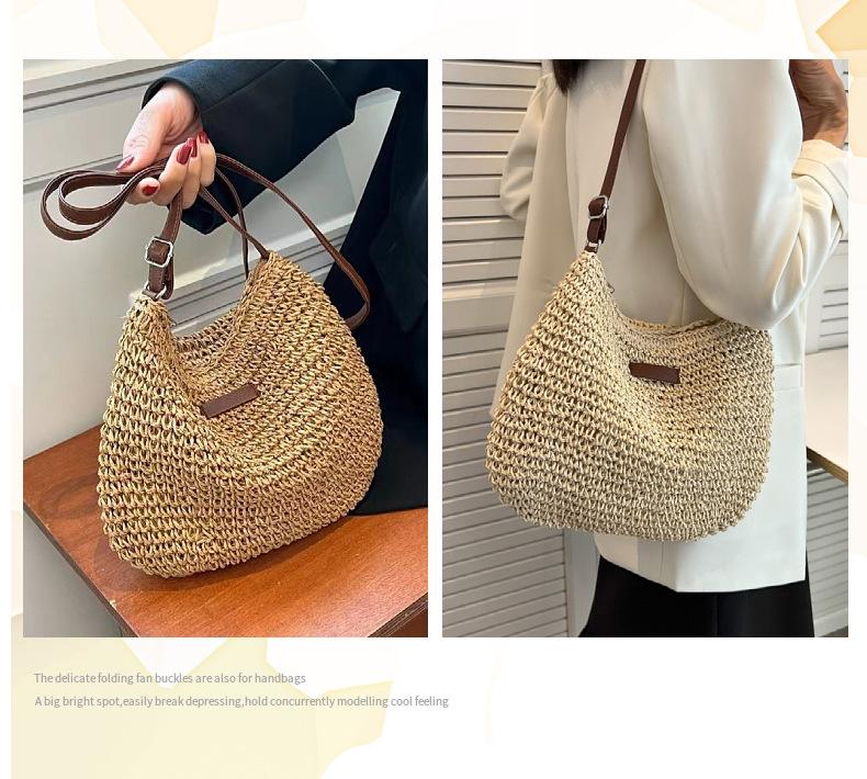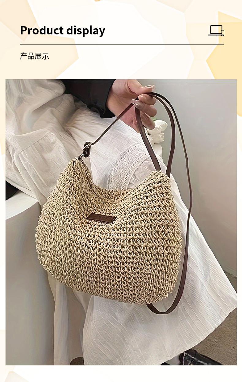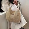 Bolso de Paja con Cremallera de Hombro Único de Gran Capacidad, Nuevo Bolso Tejido a Mano, Bolso Cruzado Versátil, Bolso de Playa para Vacaciones de Mujer