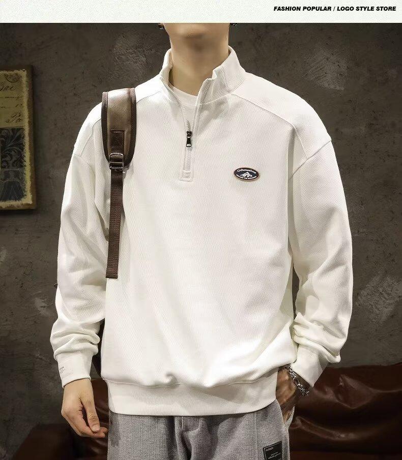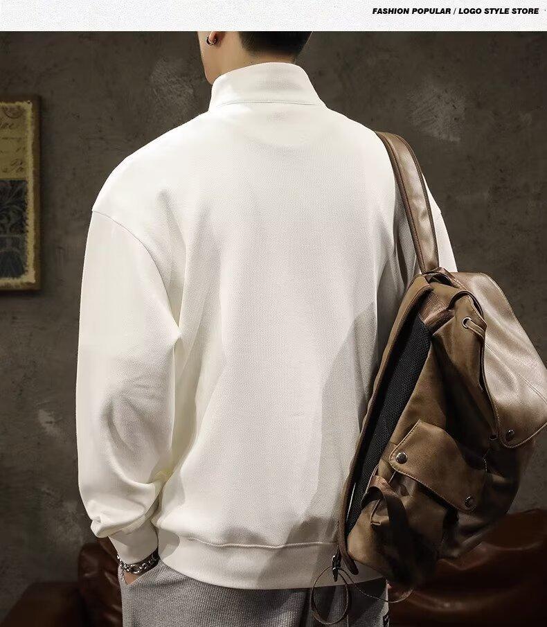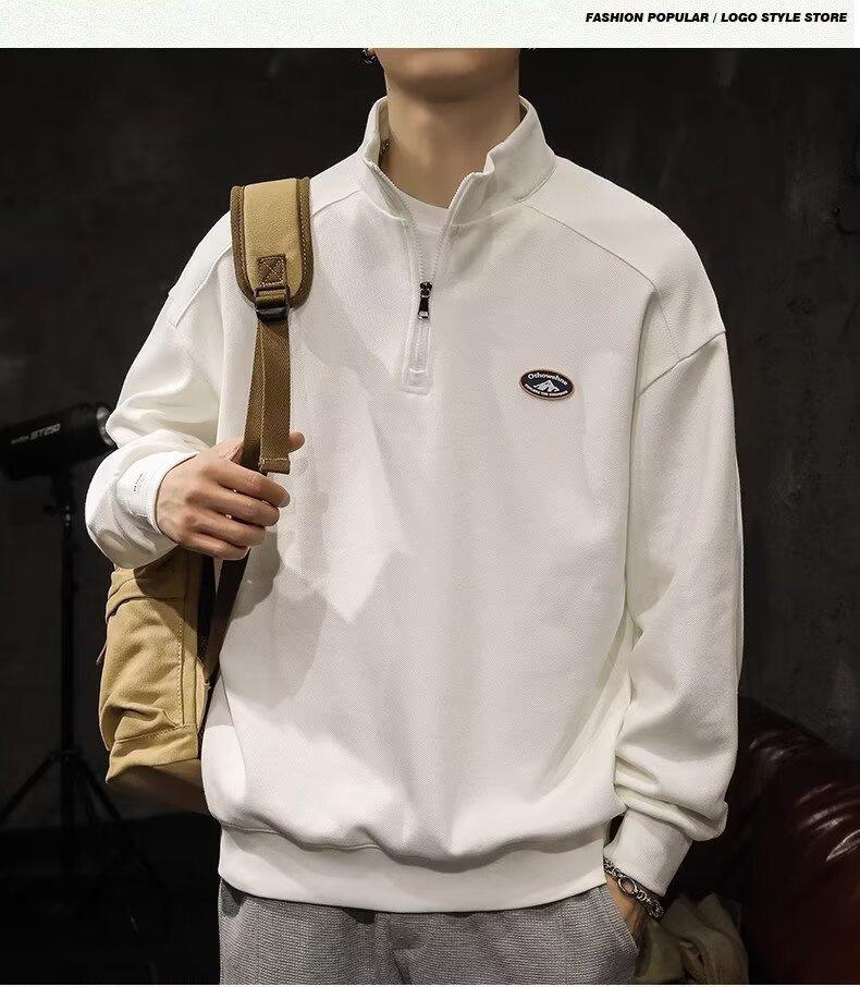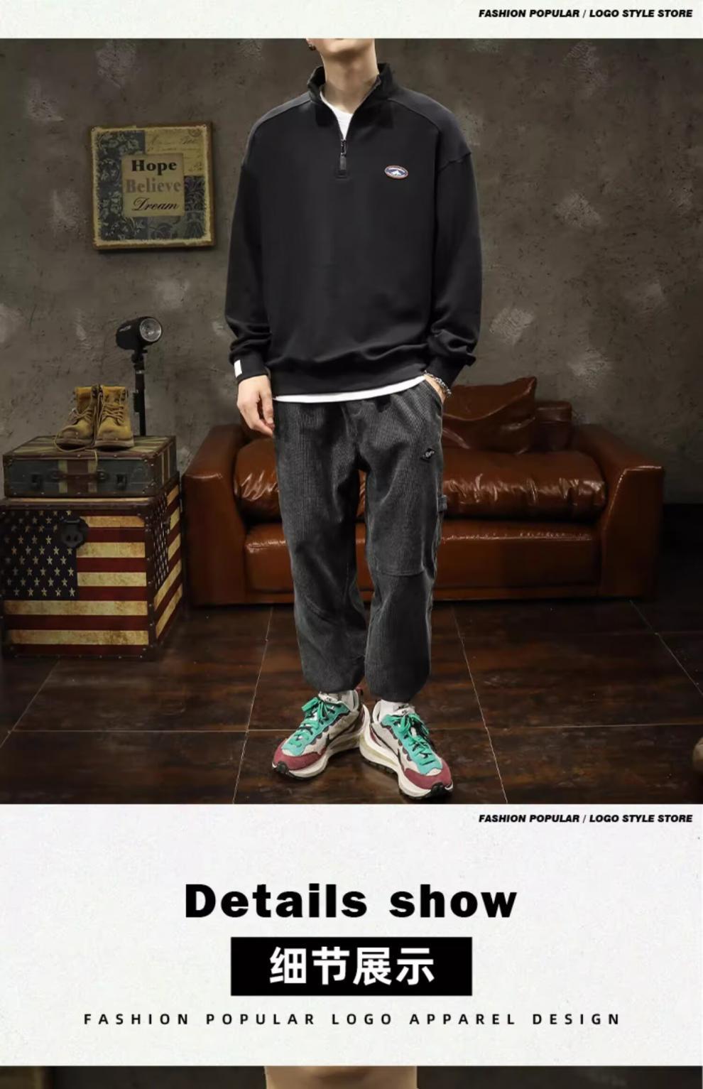 Sudadera Deportiva de Marca de Moda Americana 2023 para Niños Moda Holgada Otoño Peso Pesado Media Cremallera Cuello Alto Top para Hombre
