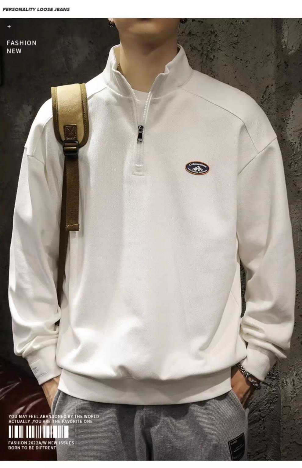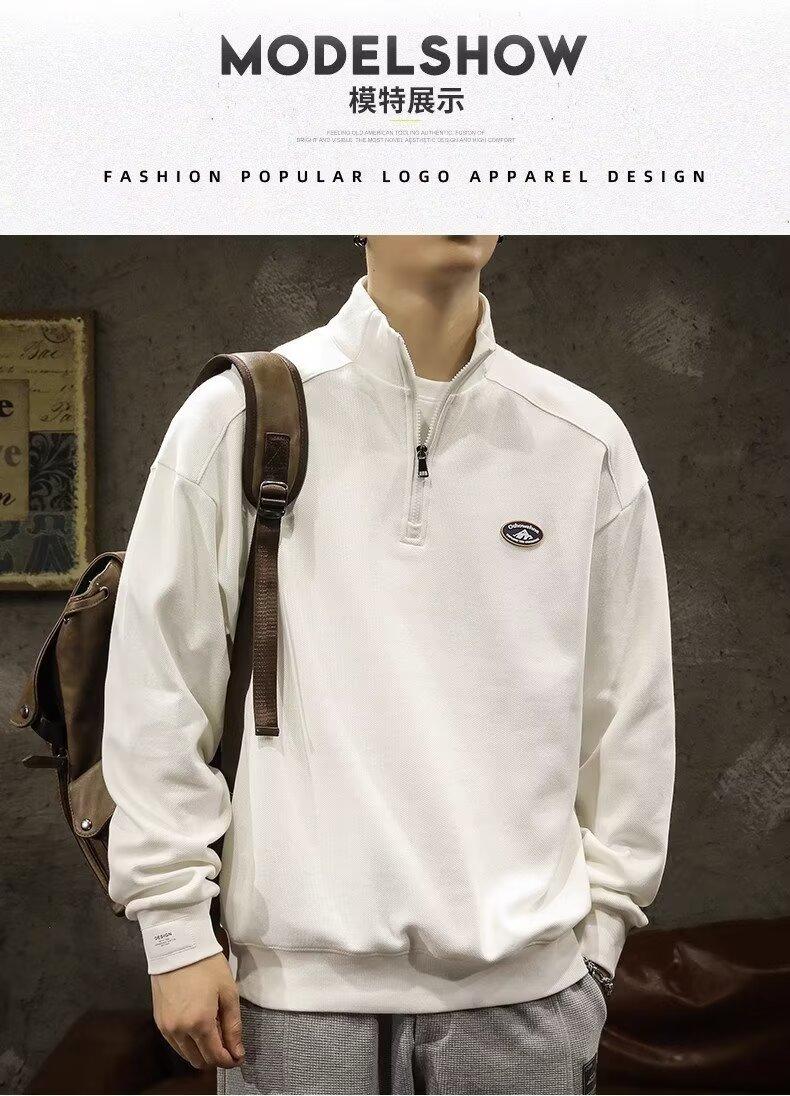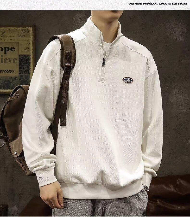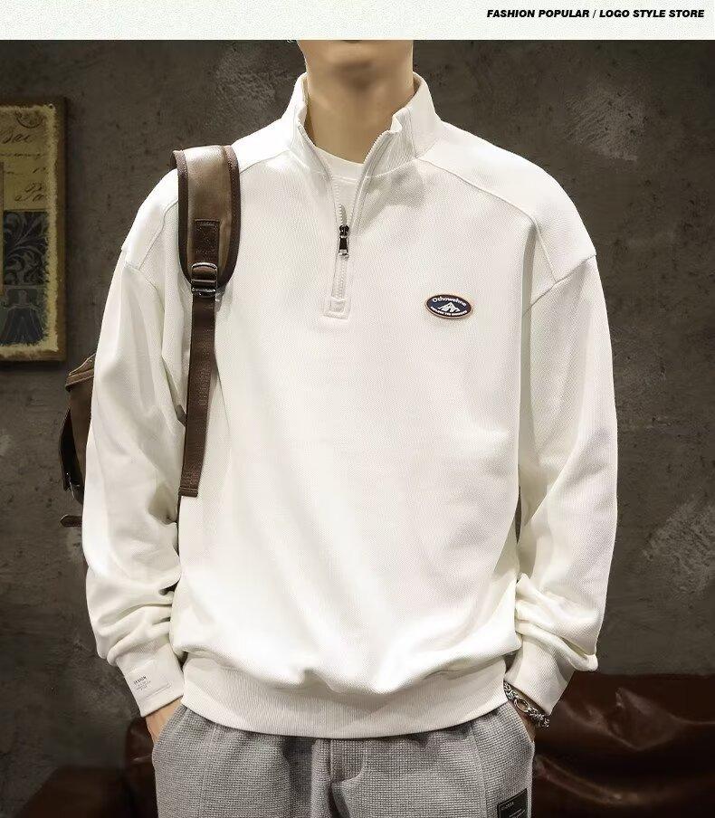 Sudadera Deportiva de Marca de Moda Americana 2023 para Niños Moda Holgada Otoño Peso Pesado Media Cremallera Cuello Alto Top para Hombre