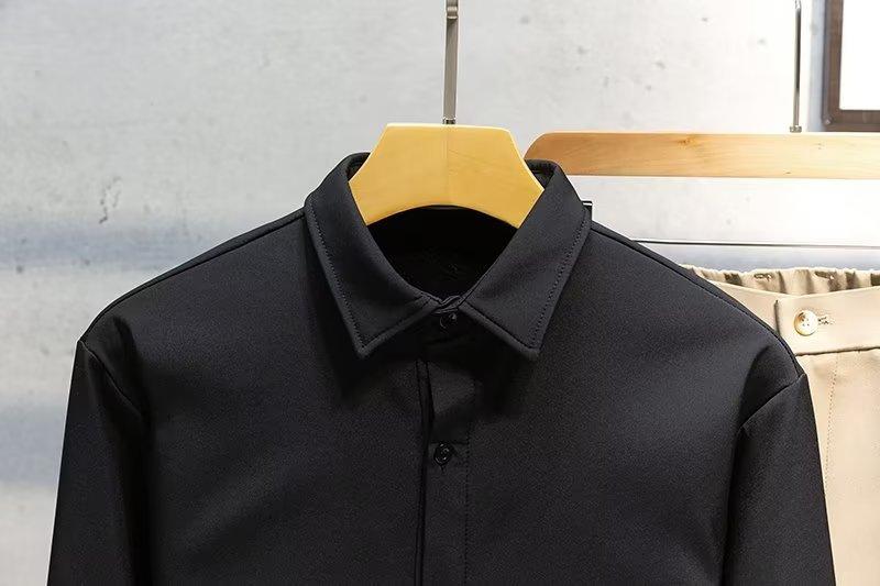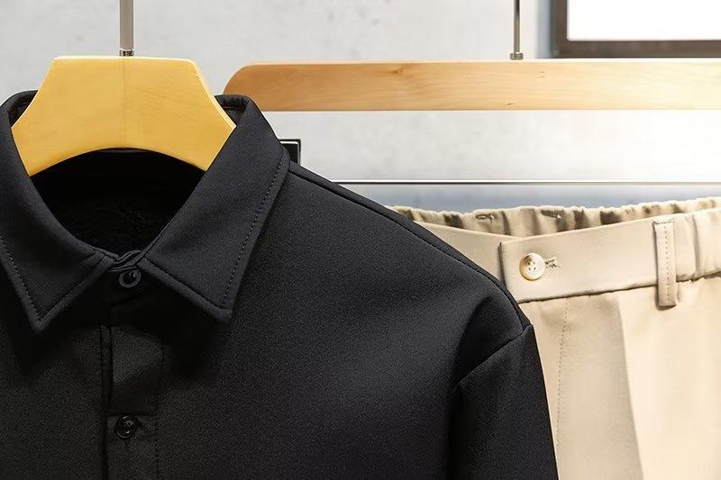 Camisa Sense de alta calidad para hombre, con forro polar, engrosada, a la moda, estilo coreano, de manga larga, corte ajustado, cálida, ropa casual