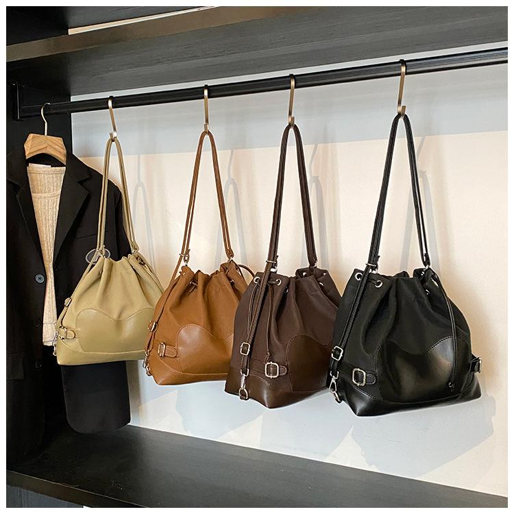 Bolsos Bolso Balde Versátil Coreano de Alta Gama 2025 Nuevo Diseño Nicho Plisado de Un Hombro Cruzado para Mujer