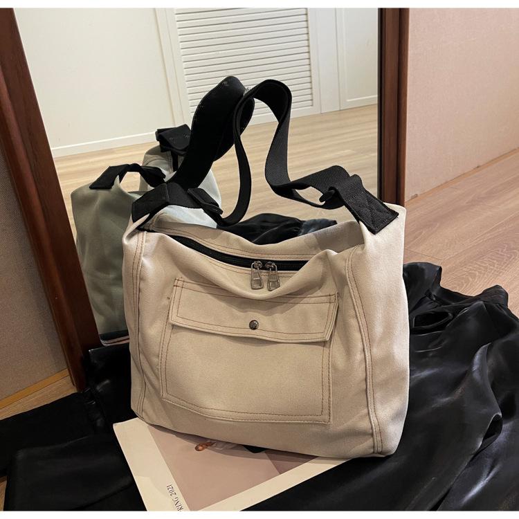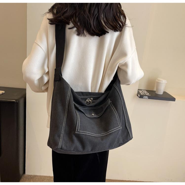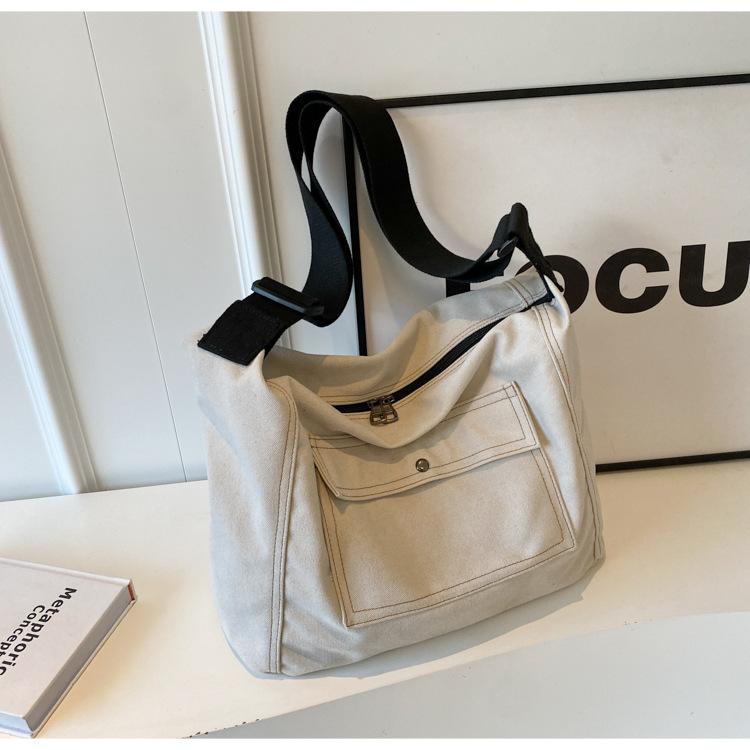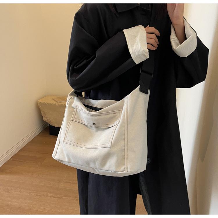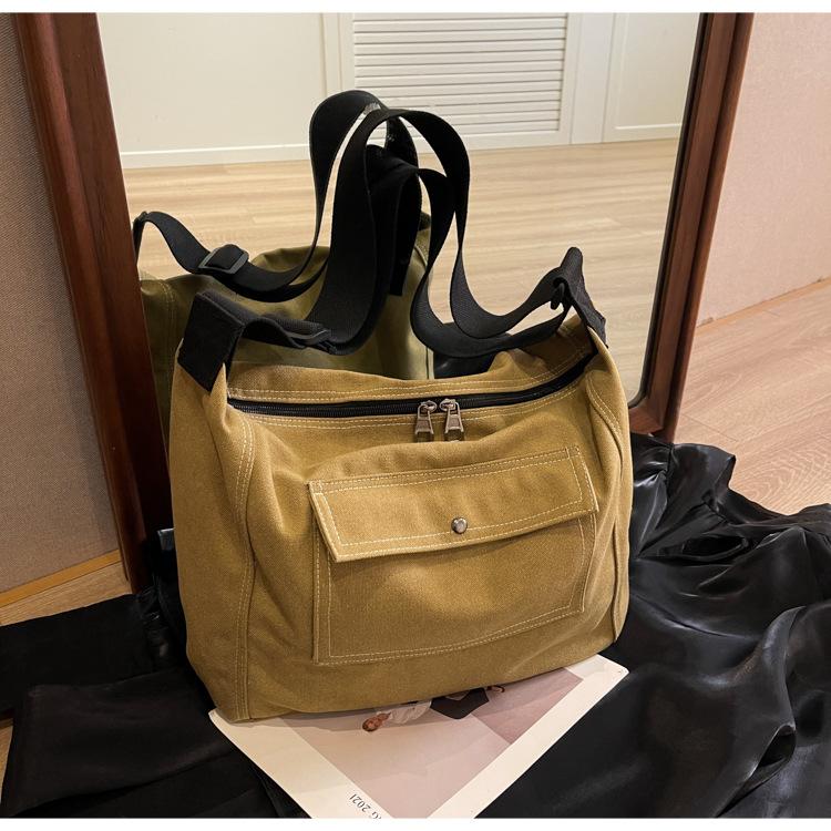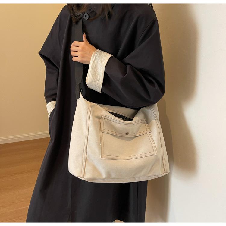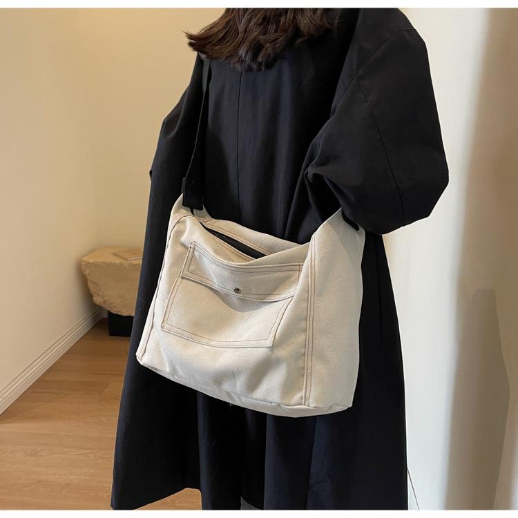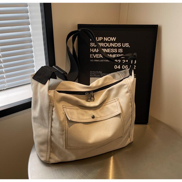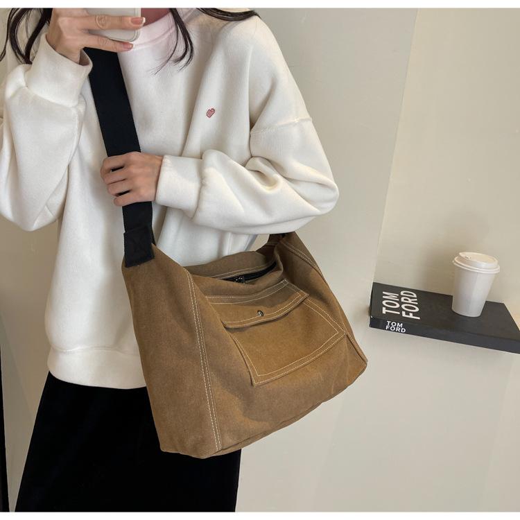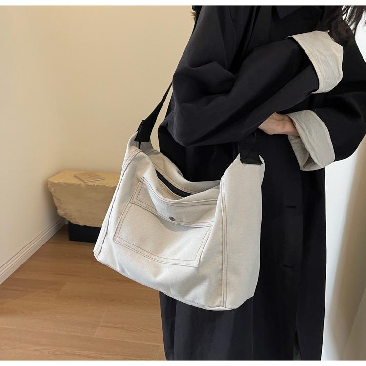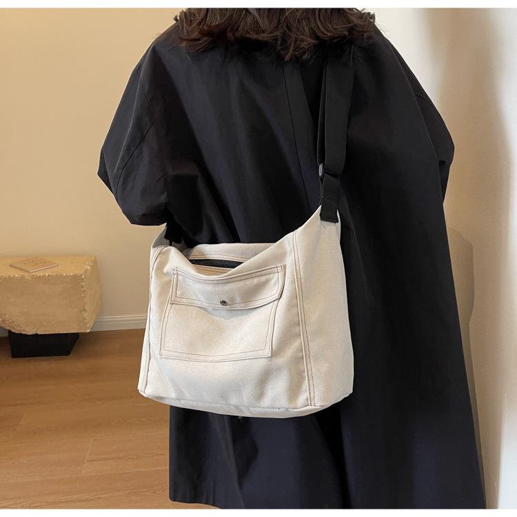 Bolsa de Lona Individual Extranjera Estilo K Nueva 2025 Bolsa para Mujer Gran Capacidad Bandolera Clase Estudiante Sencilla Casual Bolsa de Hombro
