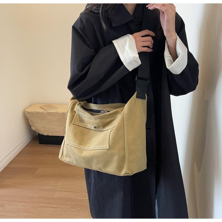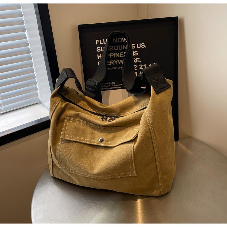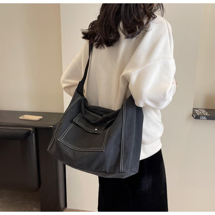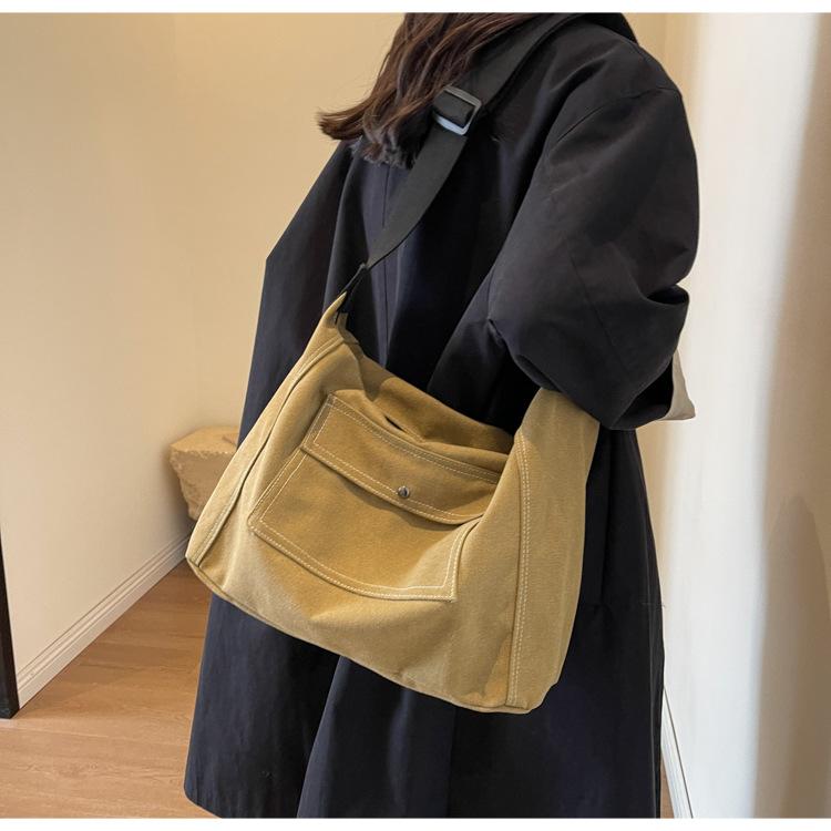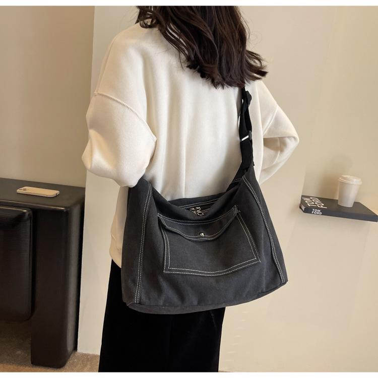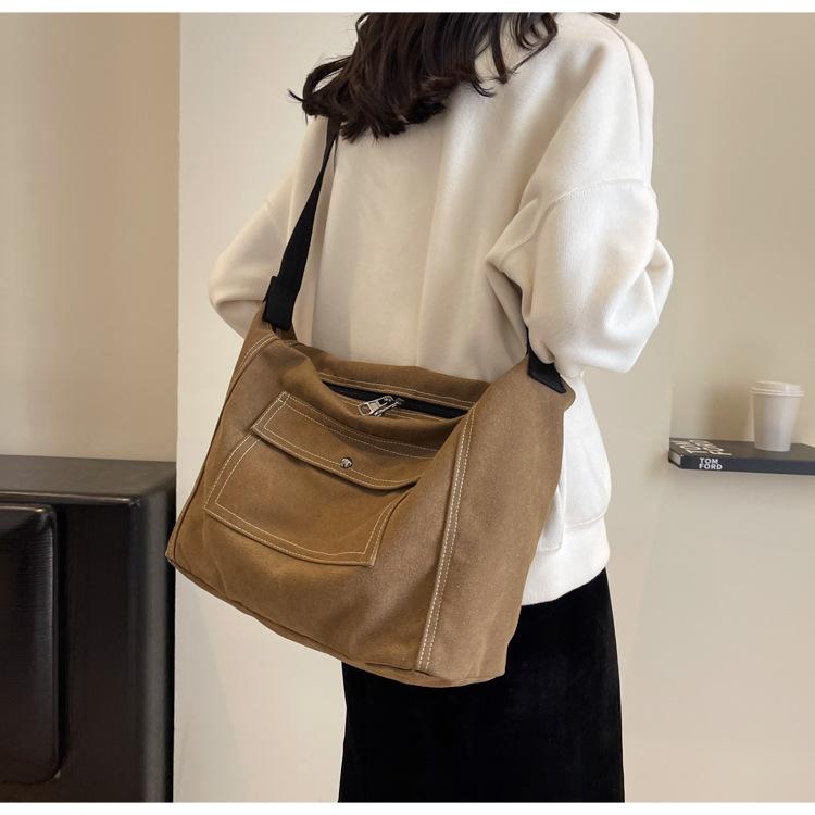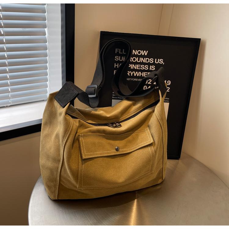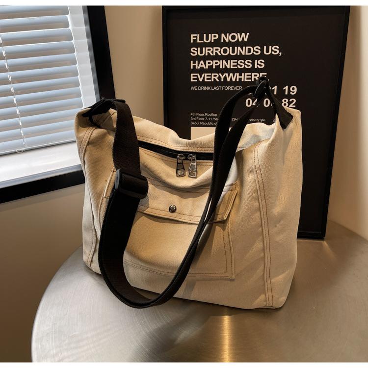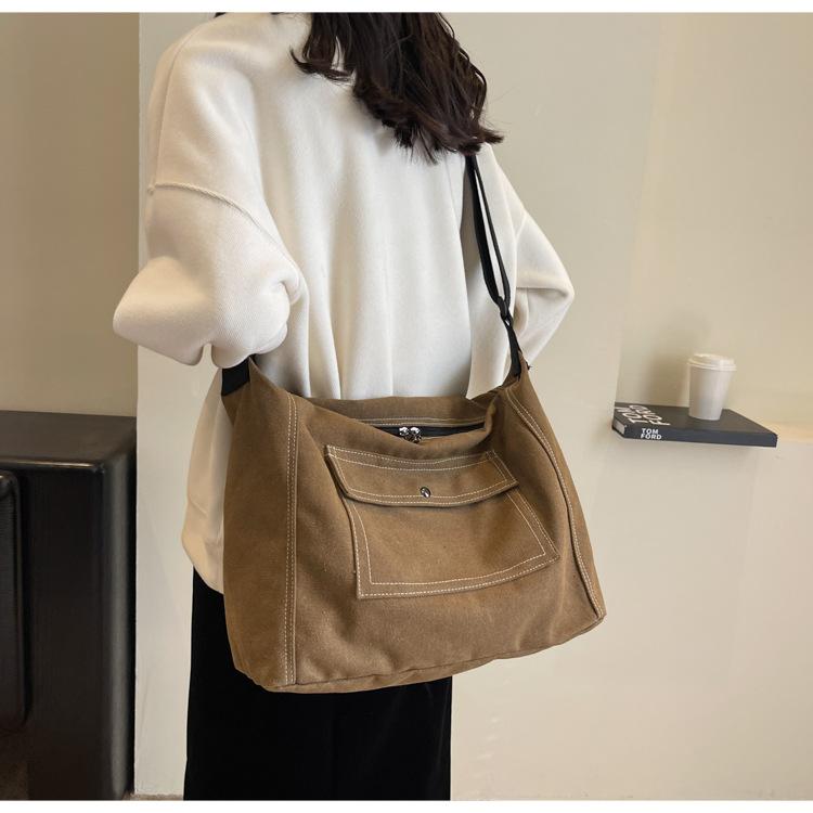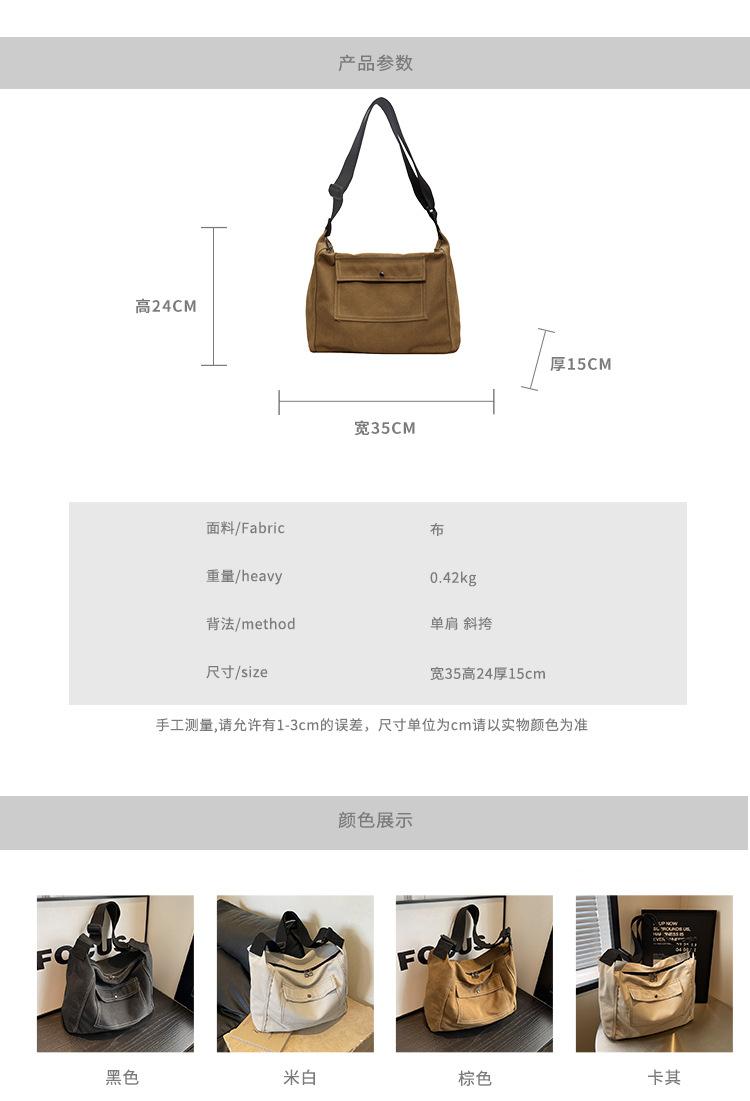 Bolsa de Lona Individual Extranjera Estilo K Nueva 2025 Bolsa para Mujer Gran Capacidad Bandolera Clase Estudiante Sencilla Casual Bolsa de Hombro