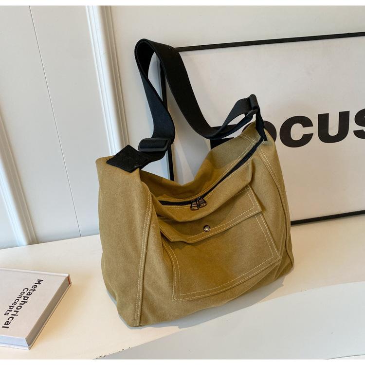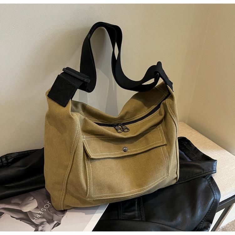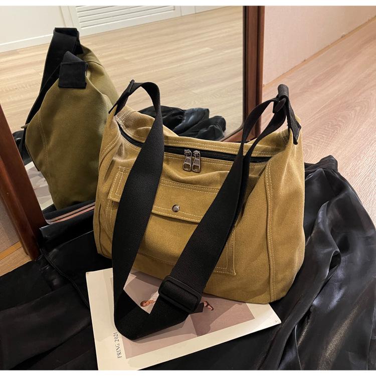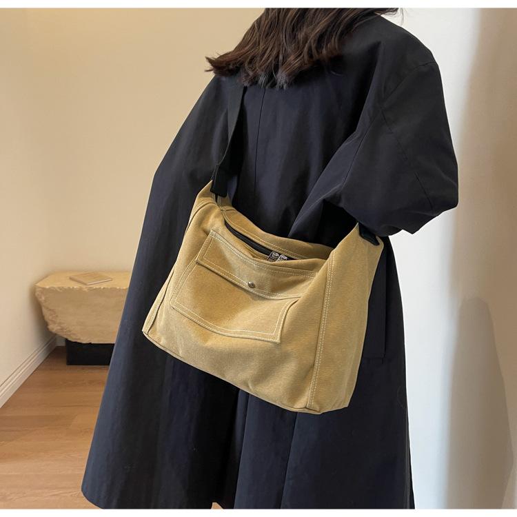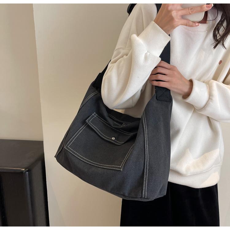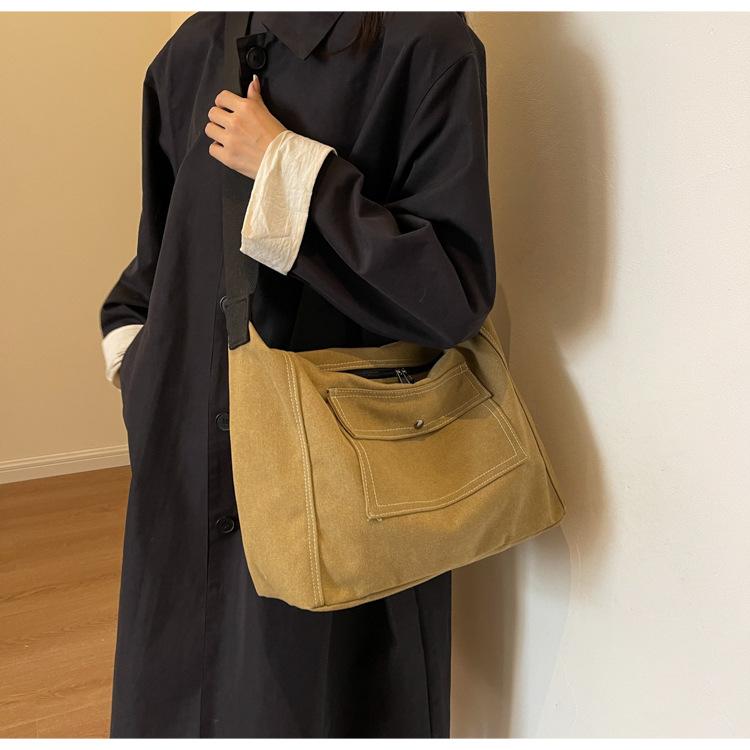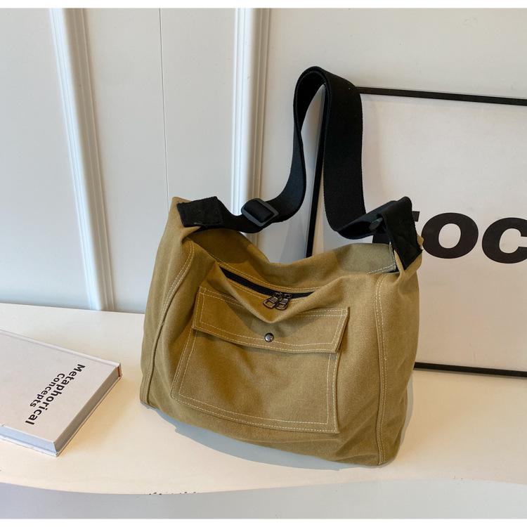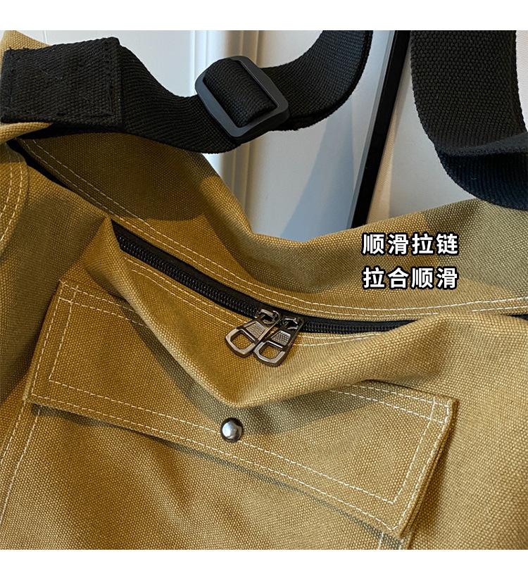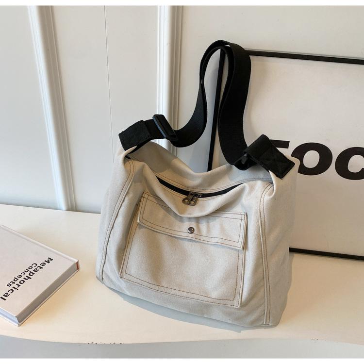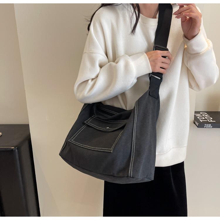 Bolsa de Lona Individual Extranjera Estilo K Nueva 2025 Bolsa para Mujer Gran Capacidad Bandolera Clase Estudiante Sencilla Casual Bolsa de Hombro
