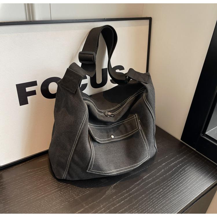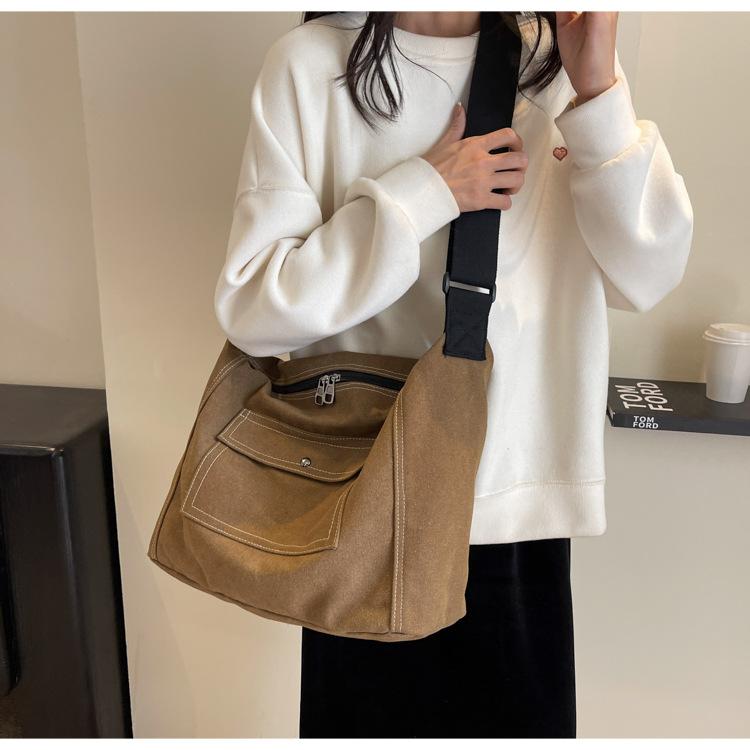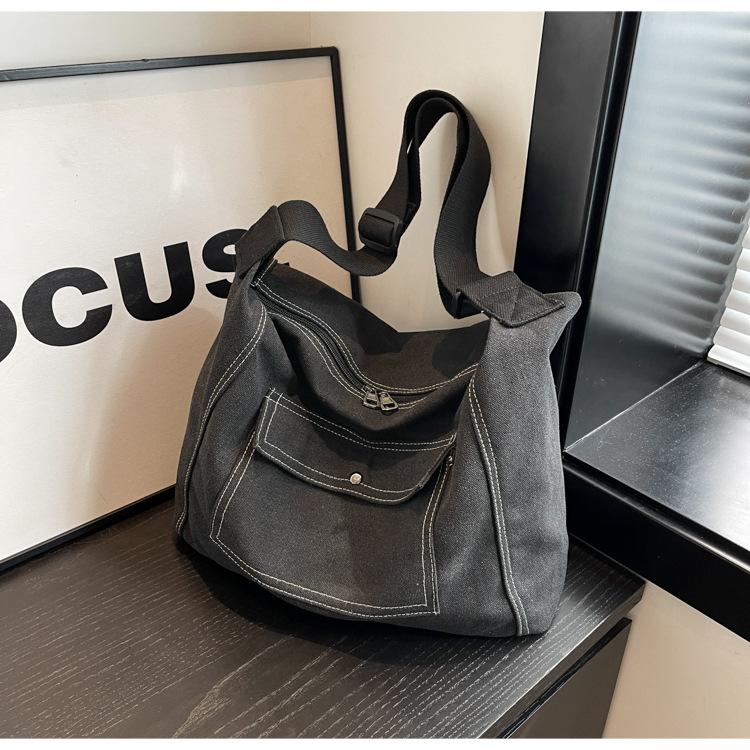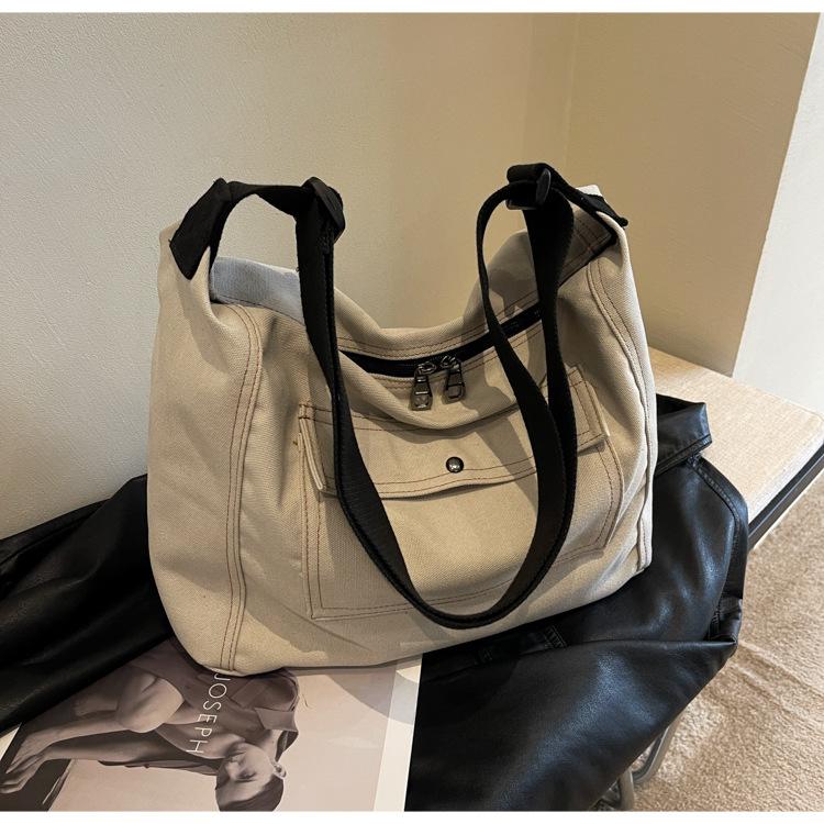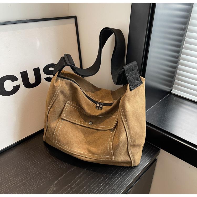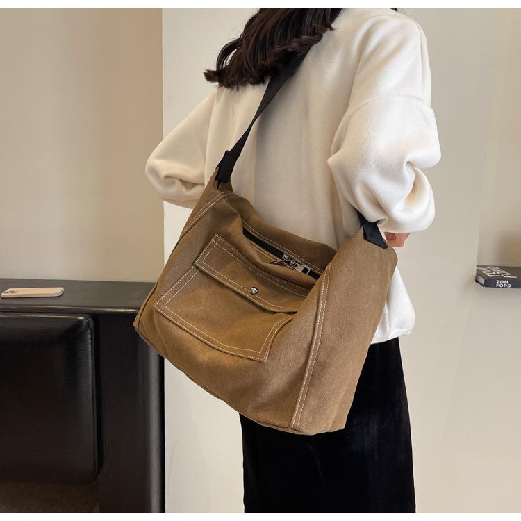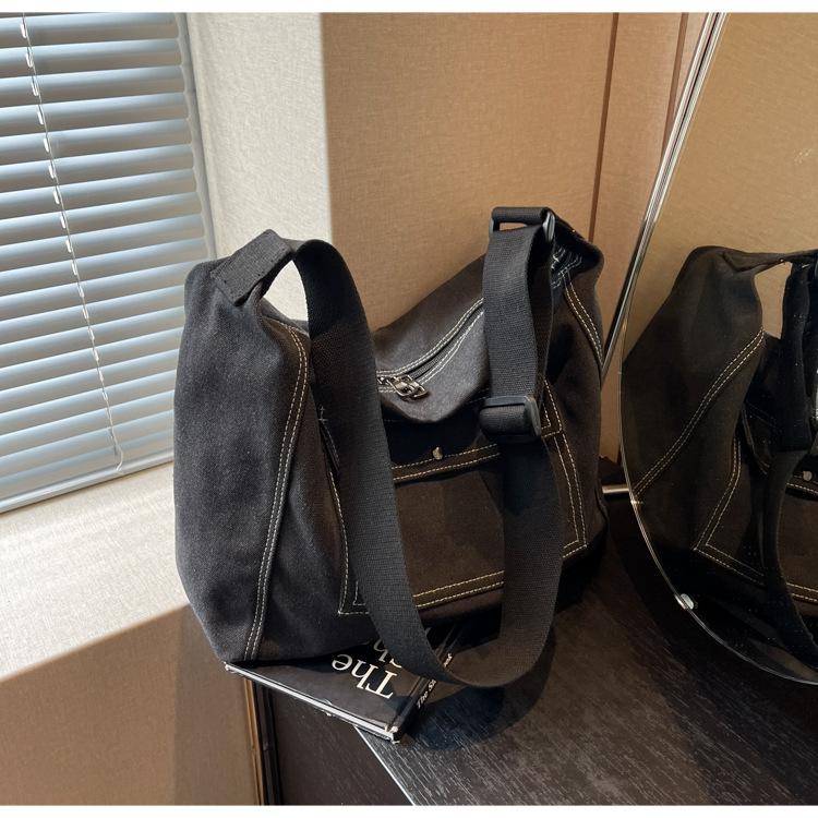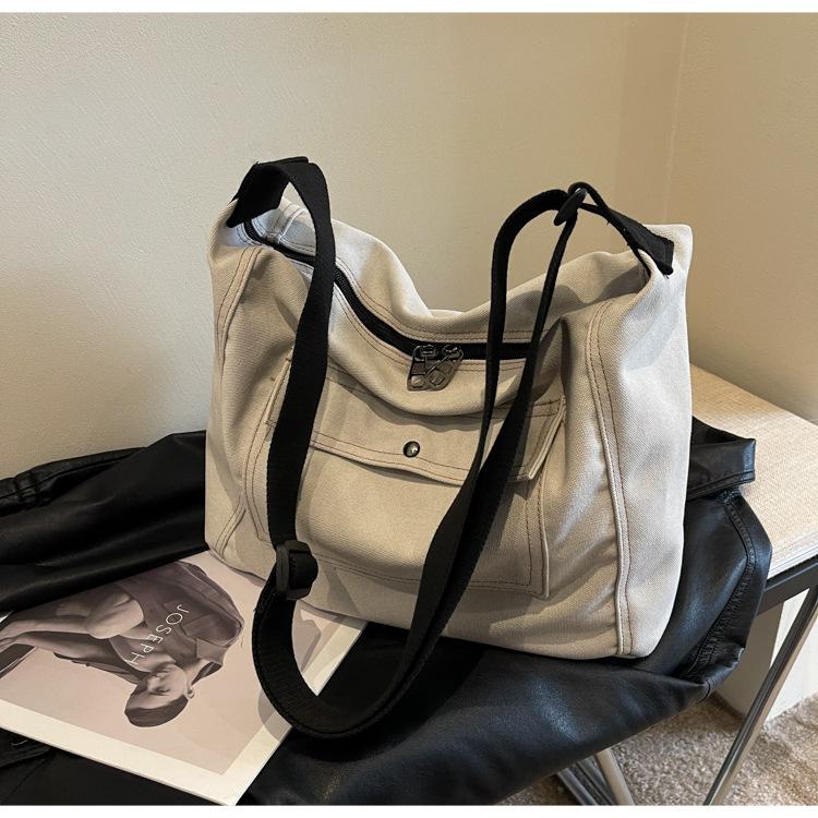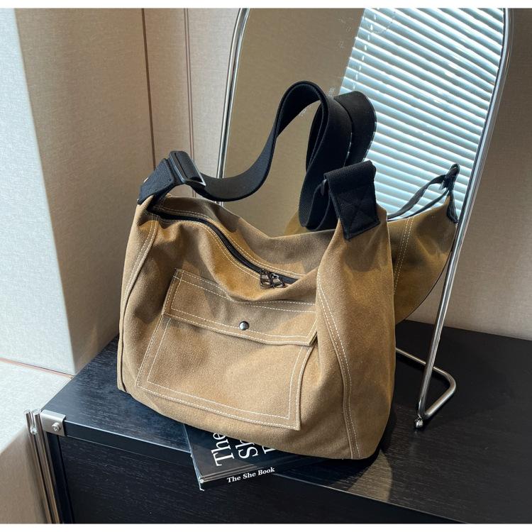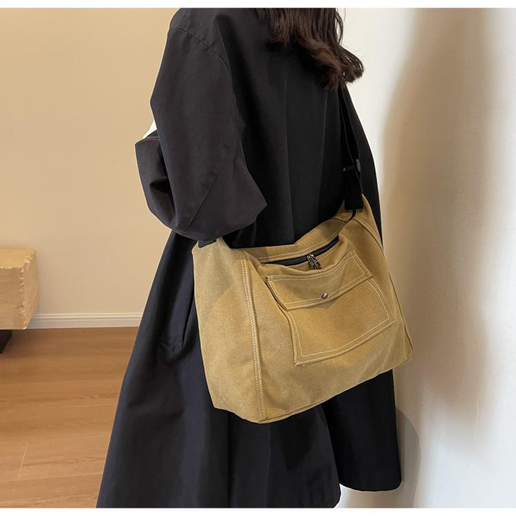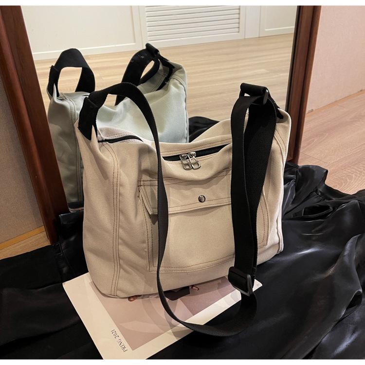 Bolsa de Lona Individual Extranjera Estilo K Nueva 2025 Bolsa para Mujer Gran Capacidad Bandolera Clase Estudiante Sencilla Casual Bolsa de Hombro