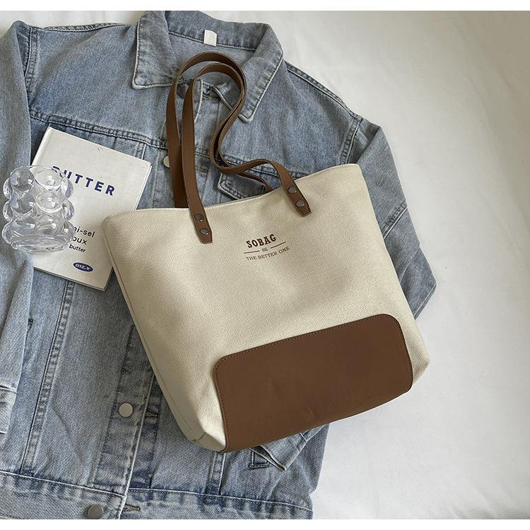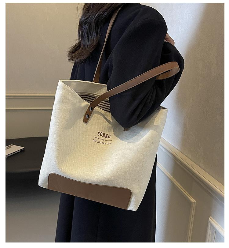 Compra Bolso de lona de gran capacidad para mujer, nuevo bolso de mano de moda 2024, bolso de hombro de diseño exclusivo para estudiantes universitarios y viajeros. al por mayor en Joom.pro