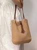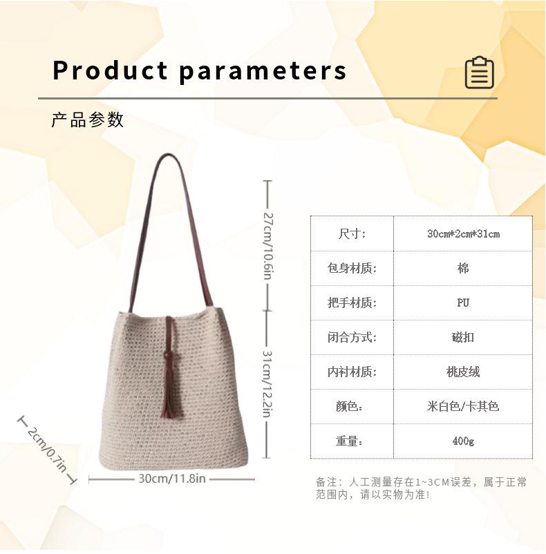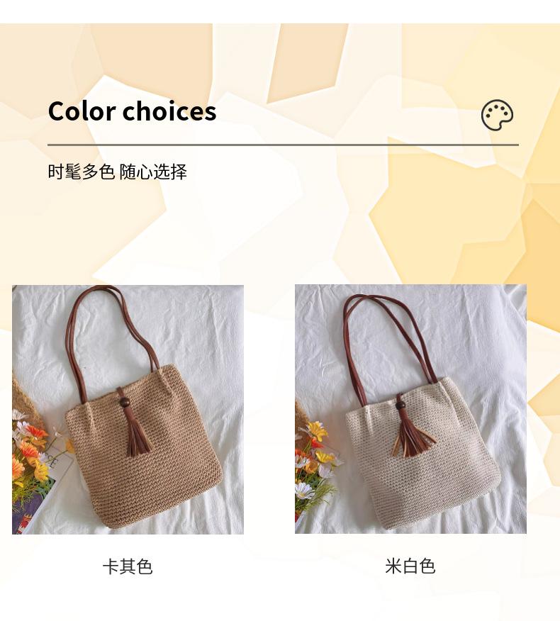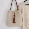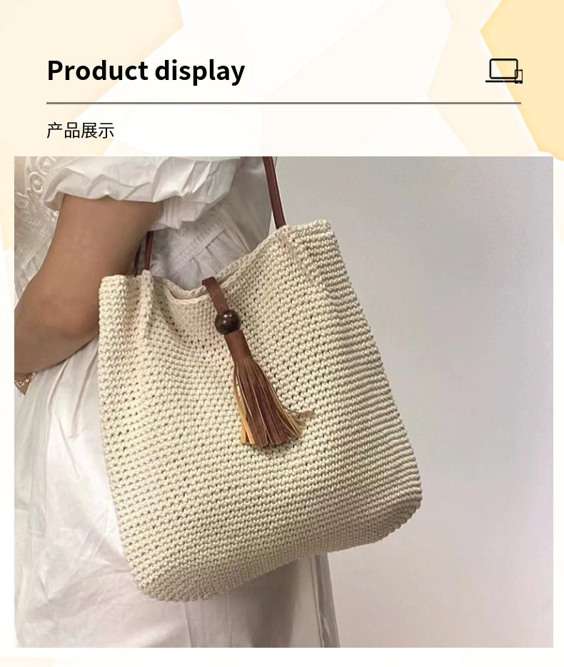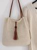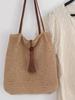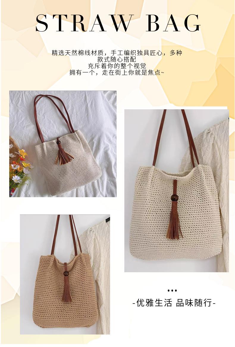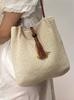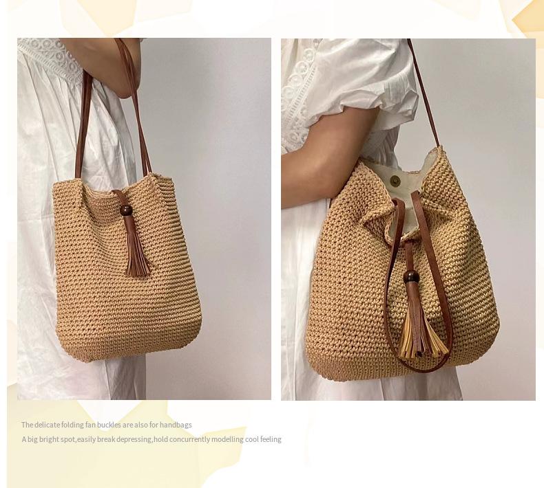 Nuevo Bolso de Paja con Borla de Algodón Bolso Tejido a Mano Bolso de Axila Hombro Bolso de Mano para Mujer Bolso de Playa para Vacaciones