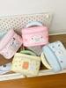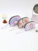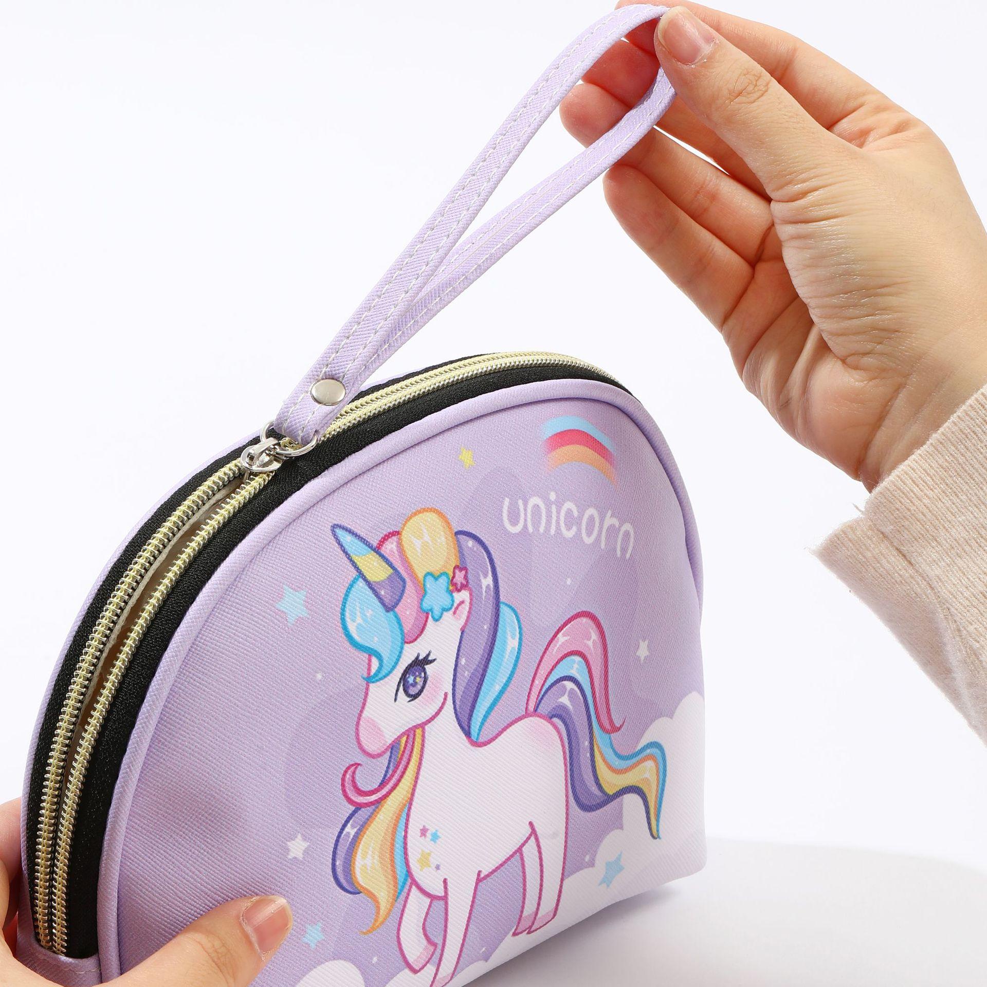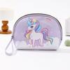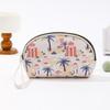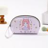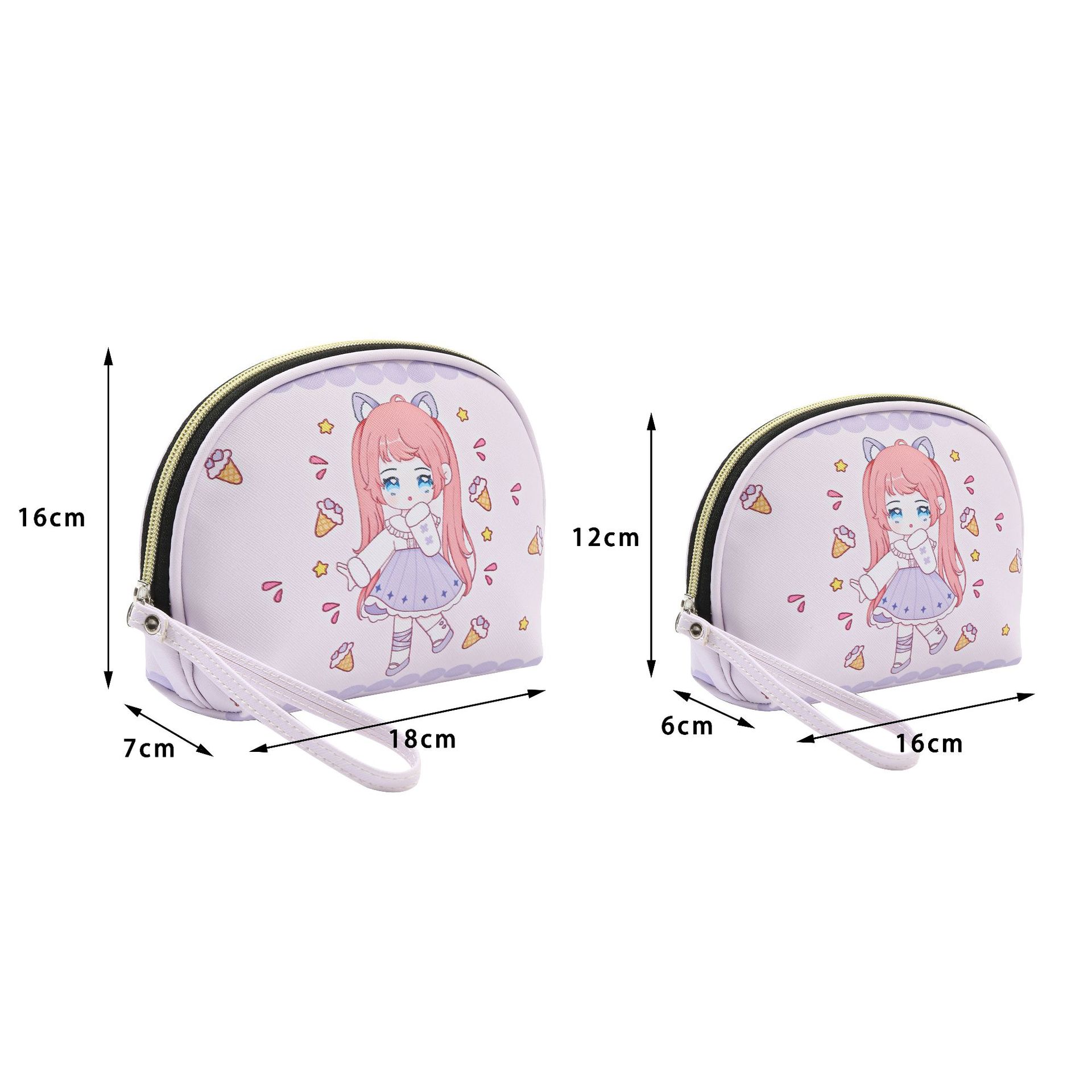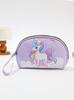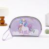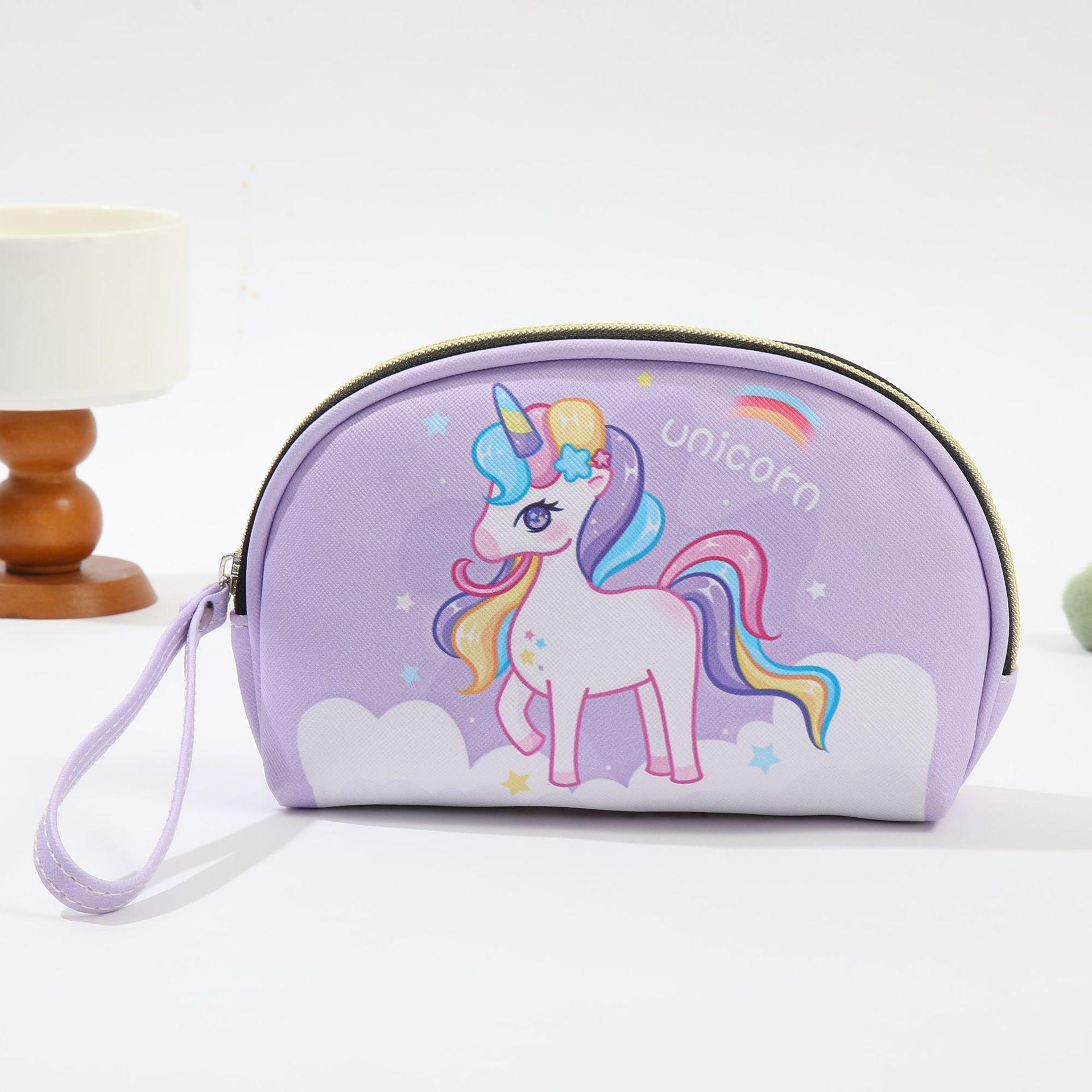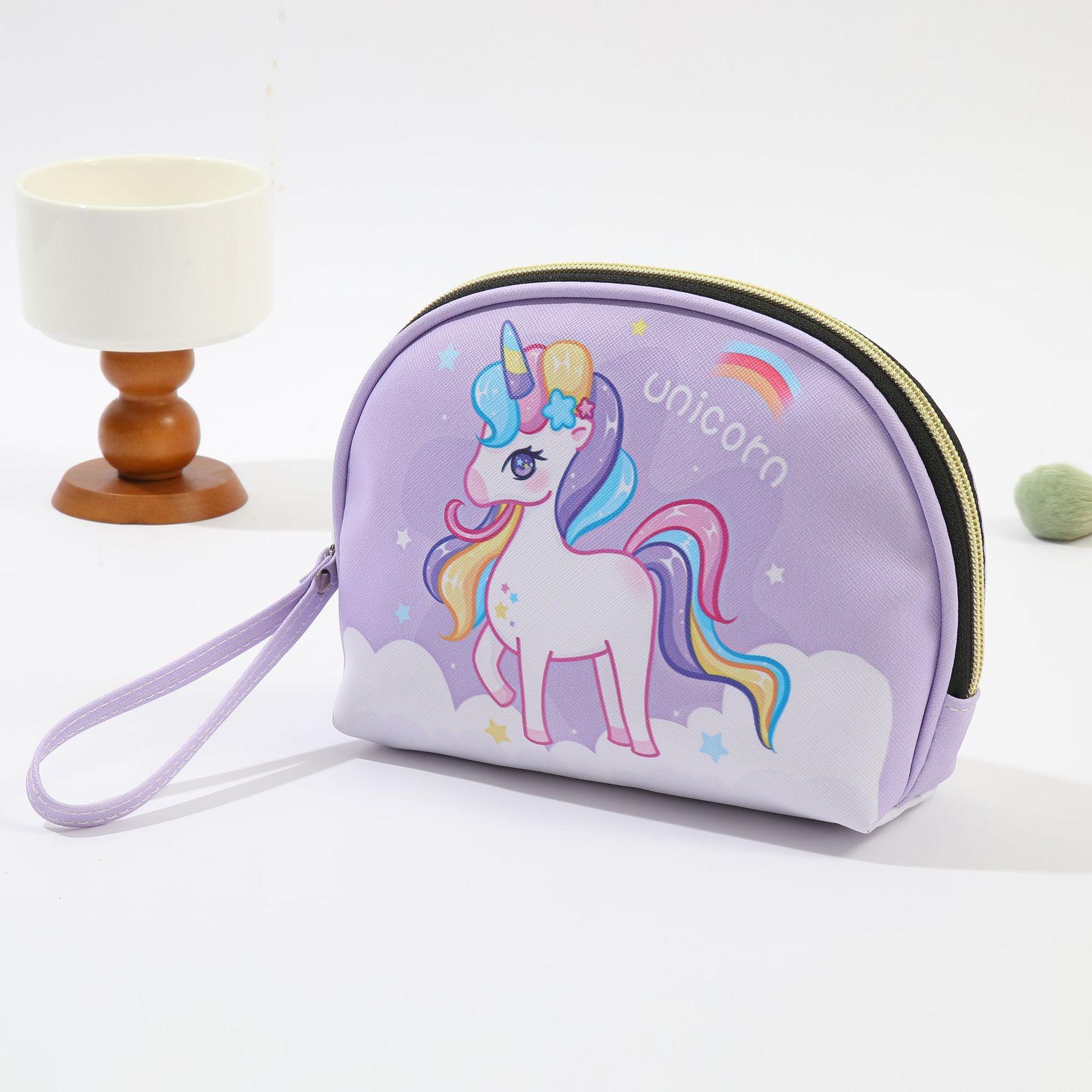En stock, nueva bolsa de cosméticos de PU con estampado de dibujos animados en forma de semicírculo, bonita bolsa de almacenamiento portátil para niñas, bolsa de lavado para viajes al aire libre.