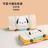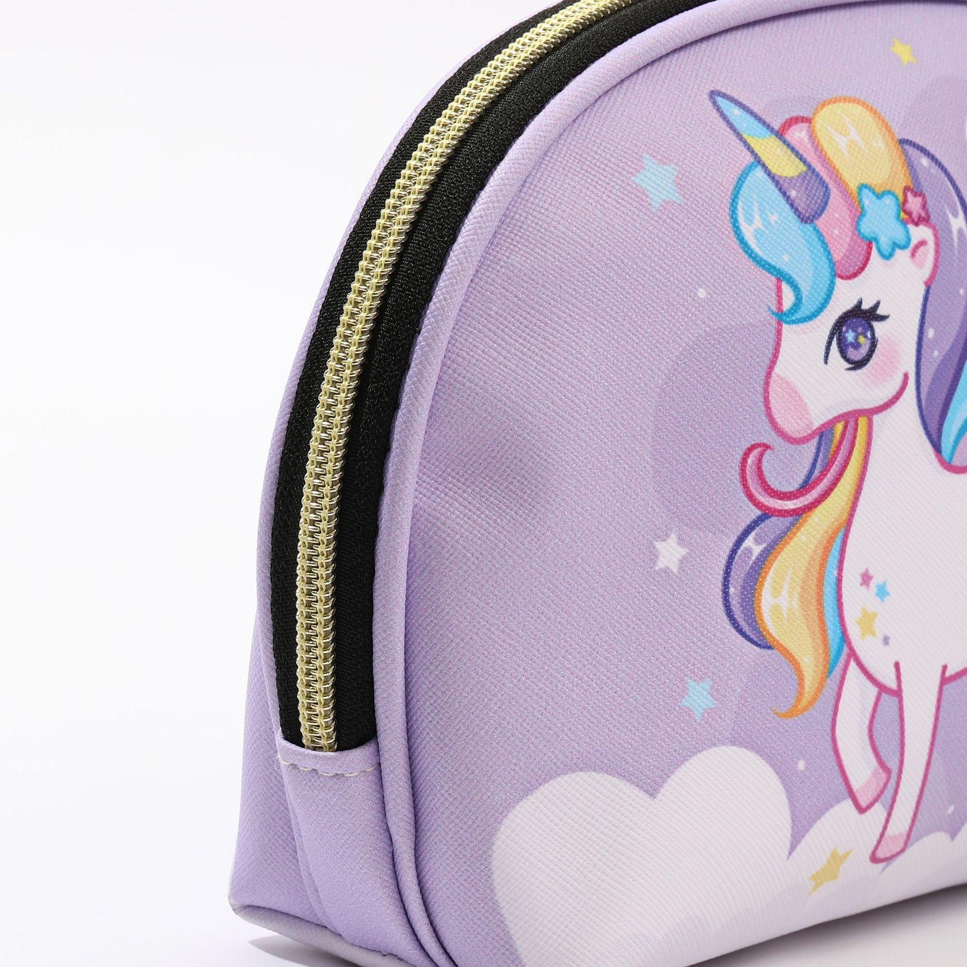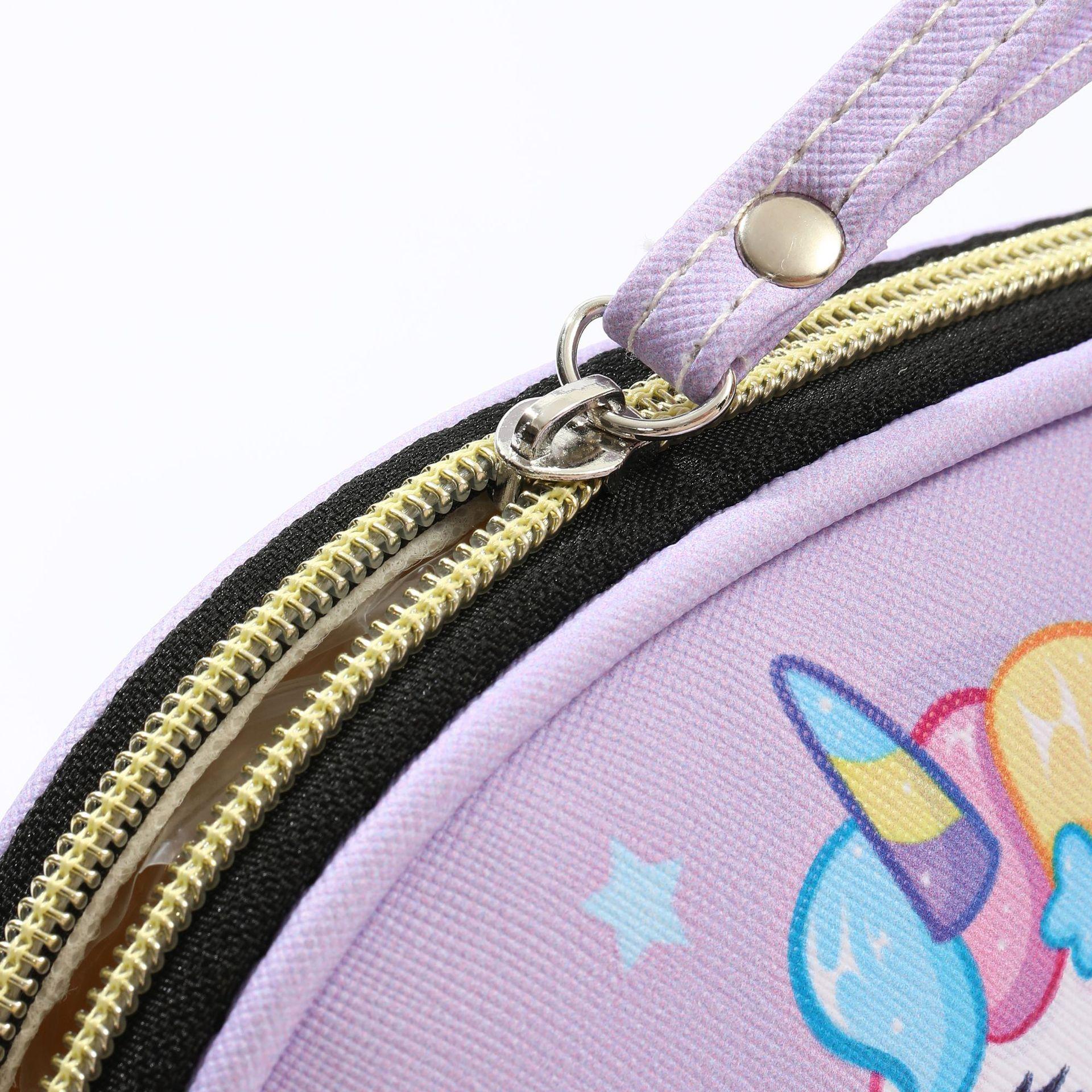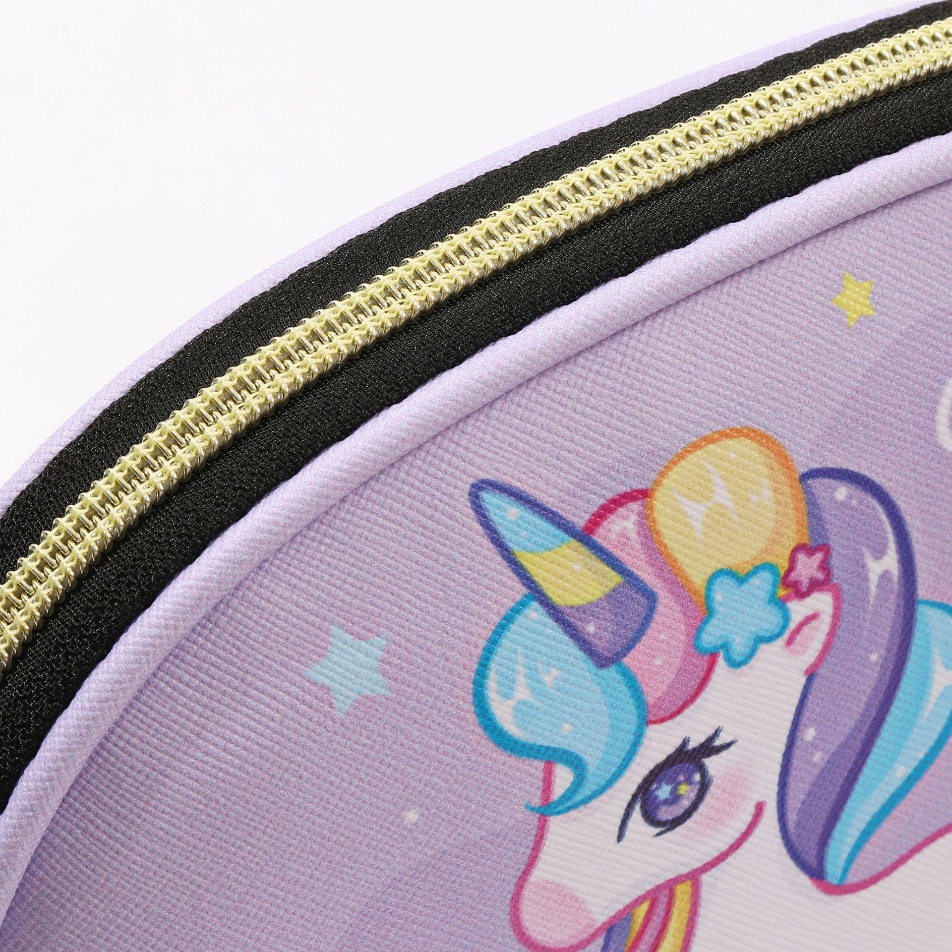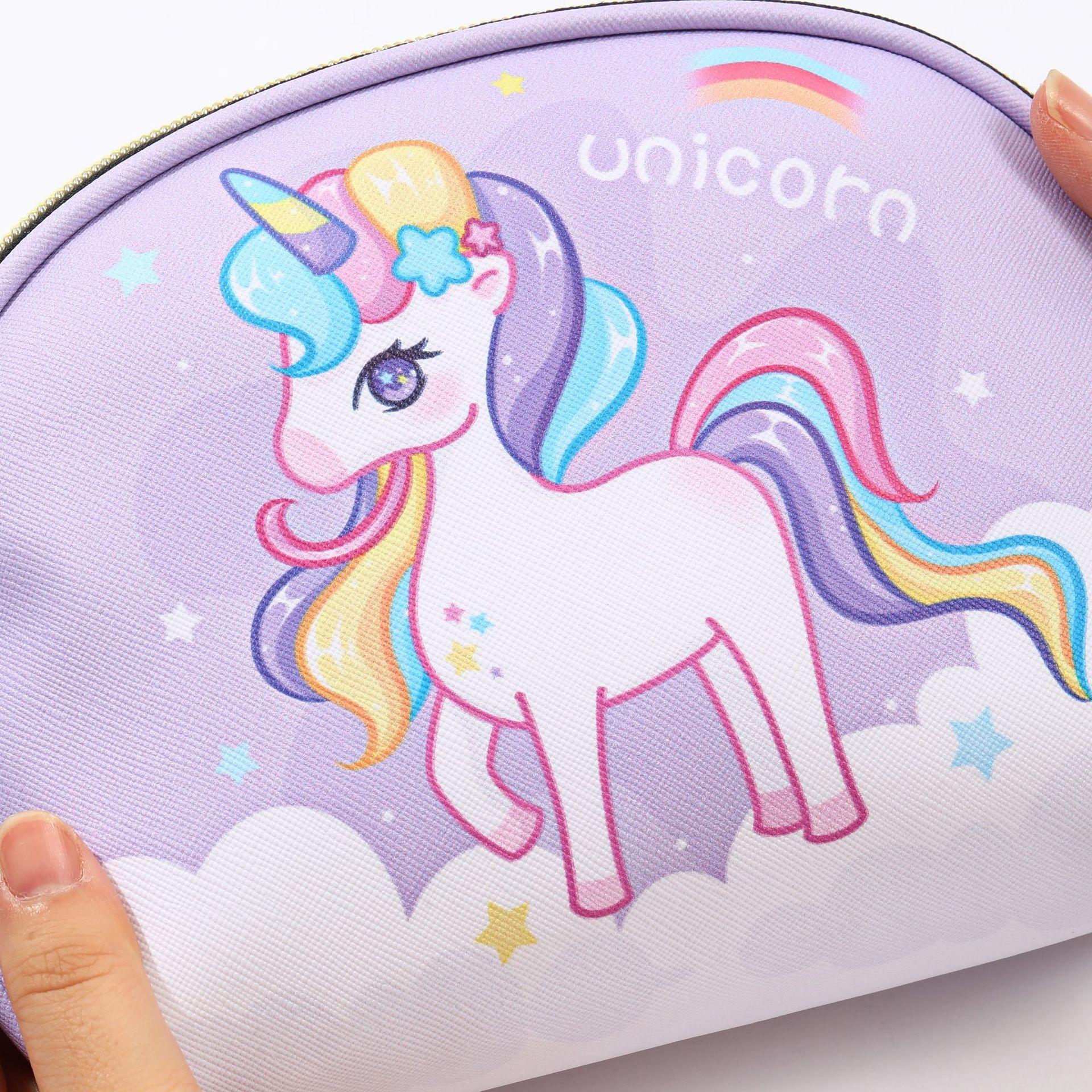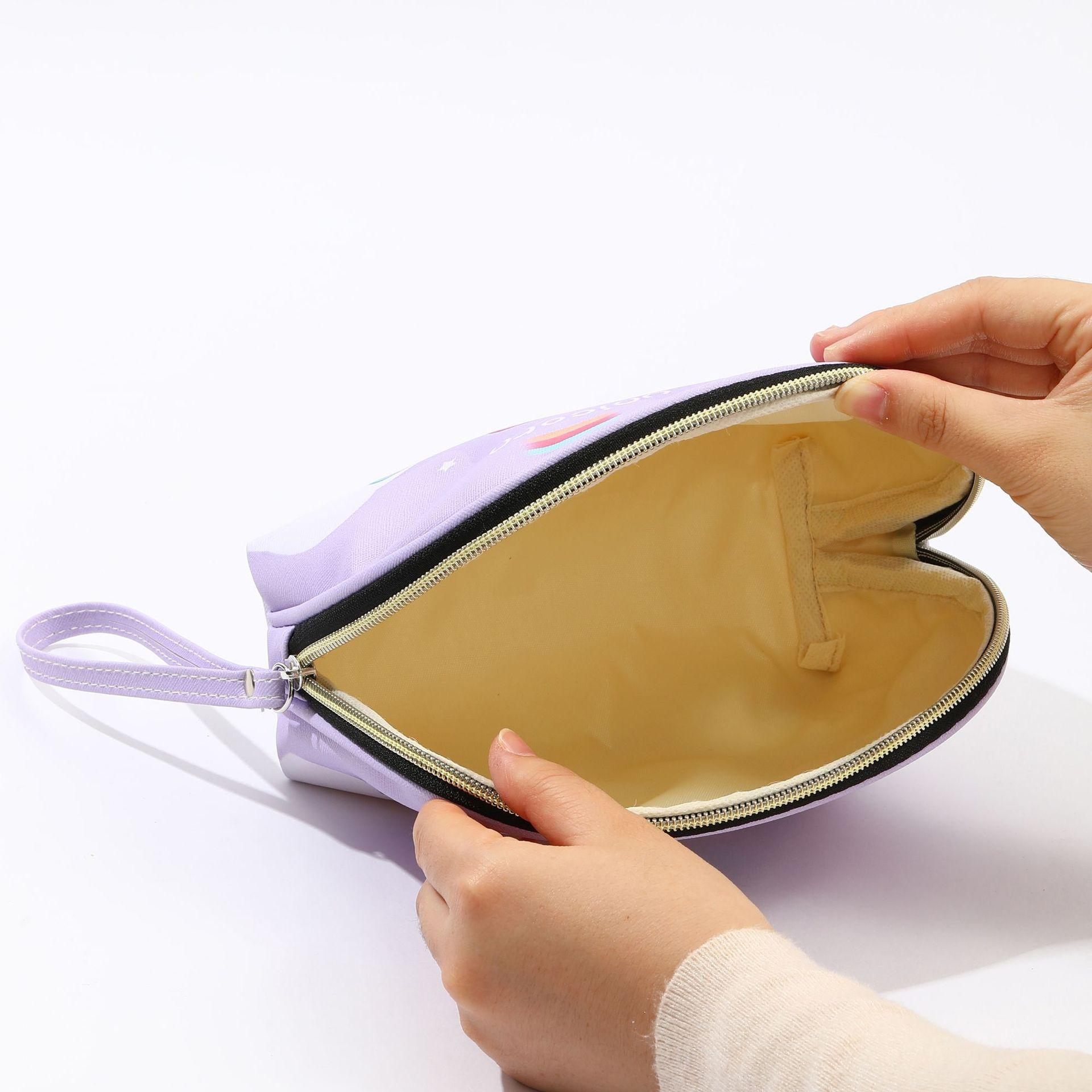 En stock, nueva bolsa de cosméticos de PU con estampado de dibujos animados en forma de semicírculo, bonita bolsa de almacenamiento portátil para niñas, bolsa de lavado para viajes al aire libre.