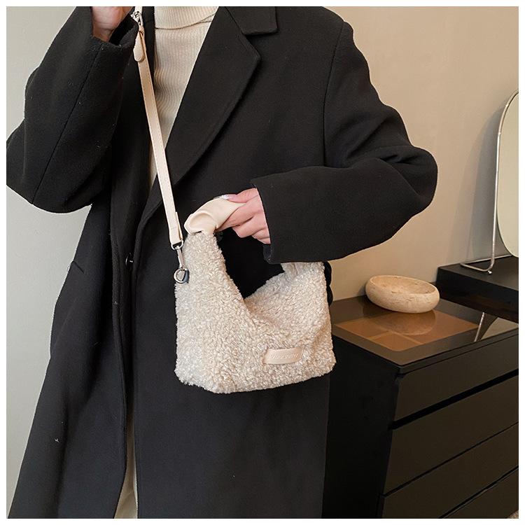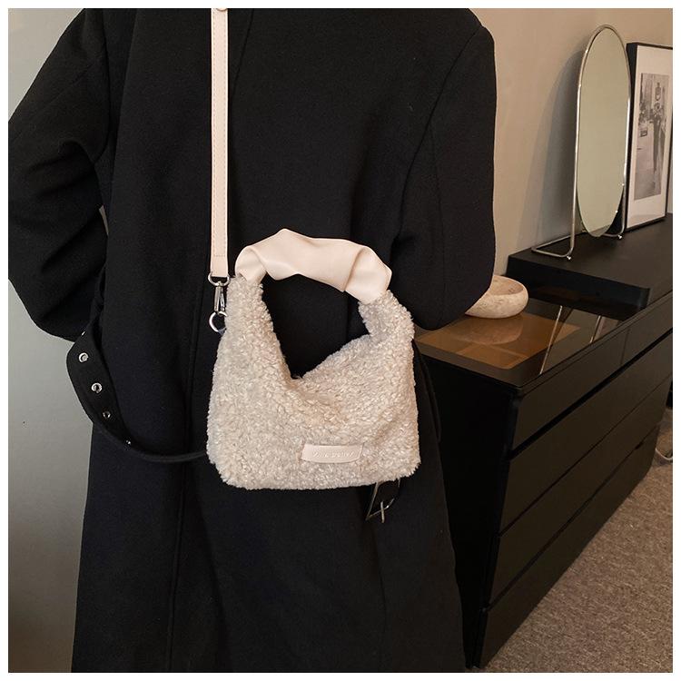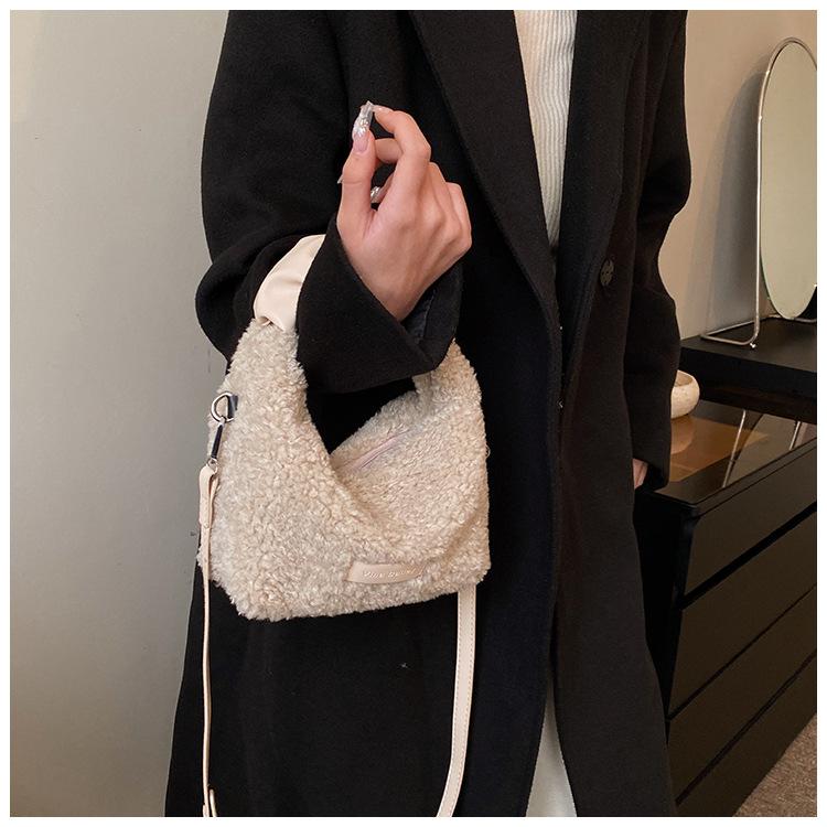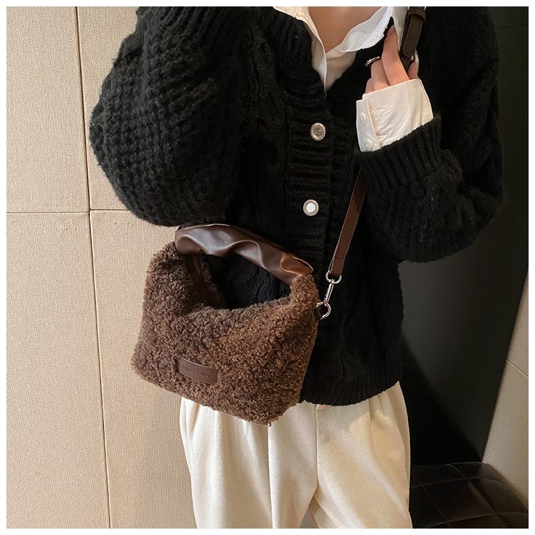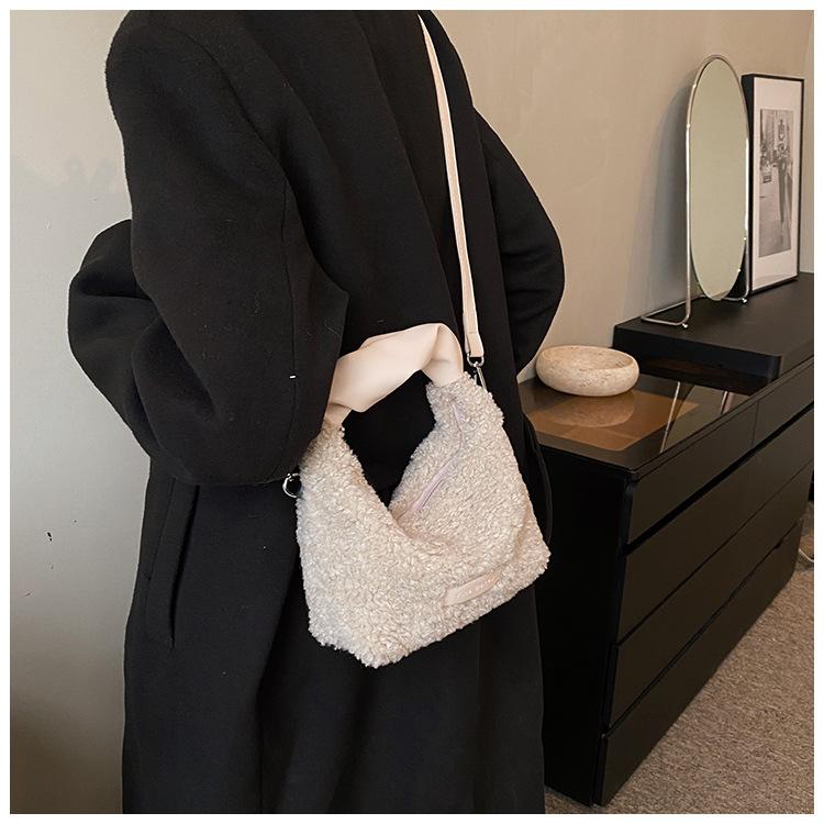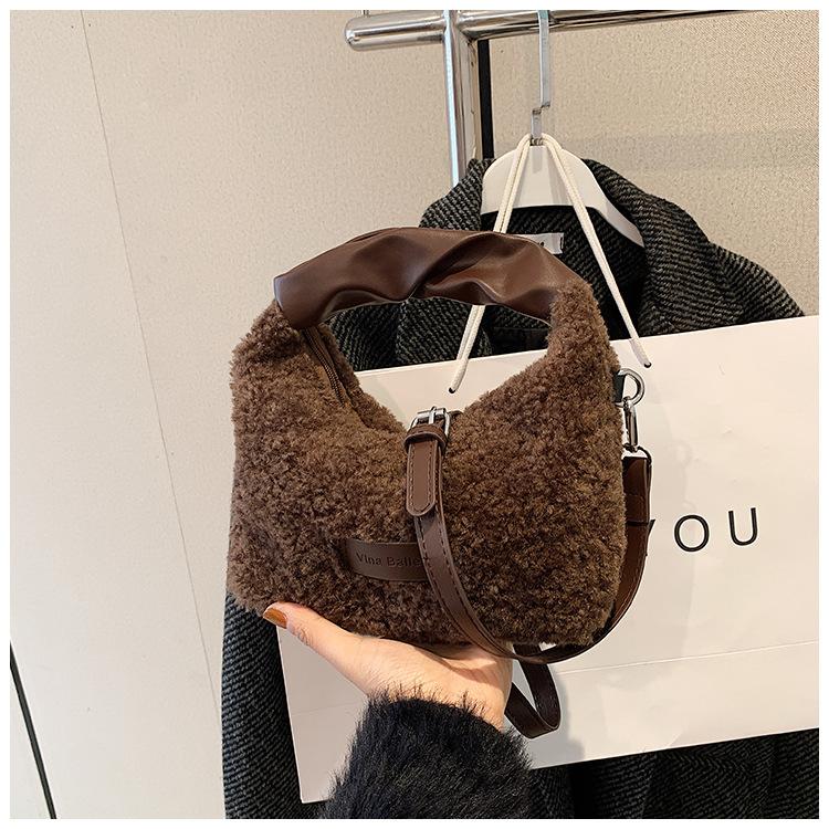 Bolso Dumpling Portátil de Lana de Cordero Transfronterizo 2024 Otoño e Invierno Nuevo Casual Mao Mao Hombro Combinable Moda Crossbody Bolso de Mujer