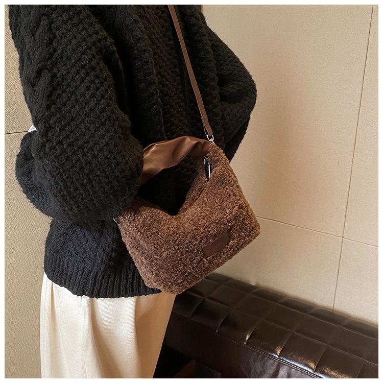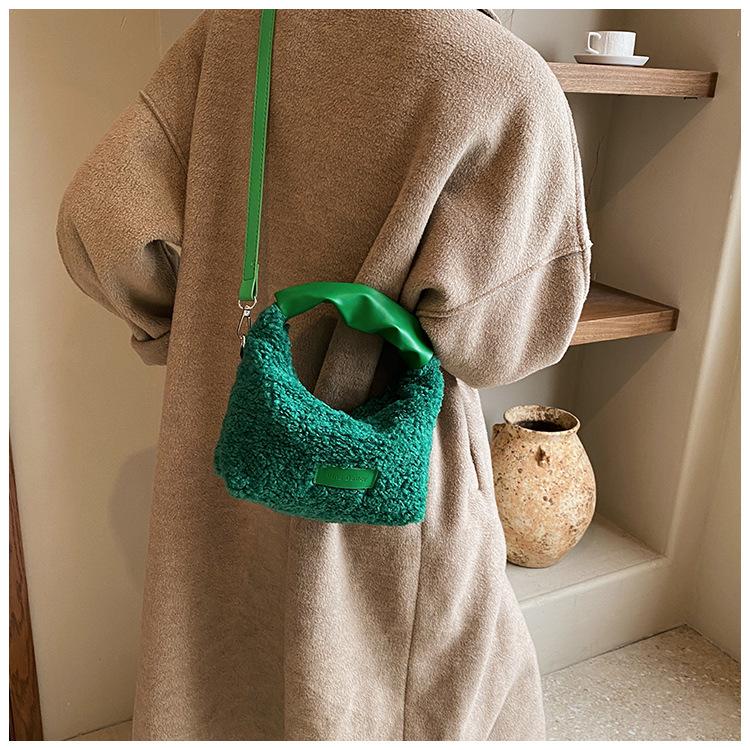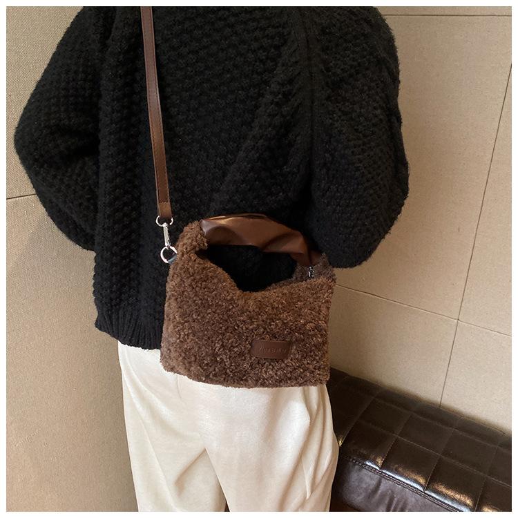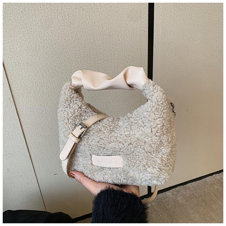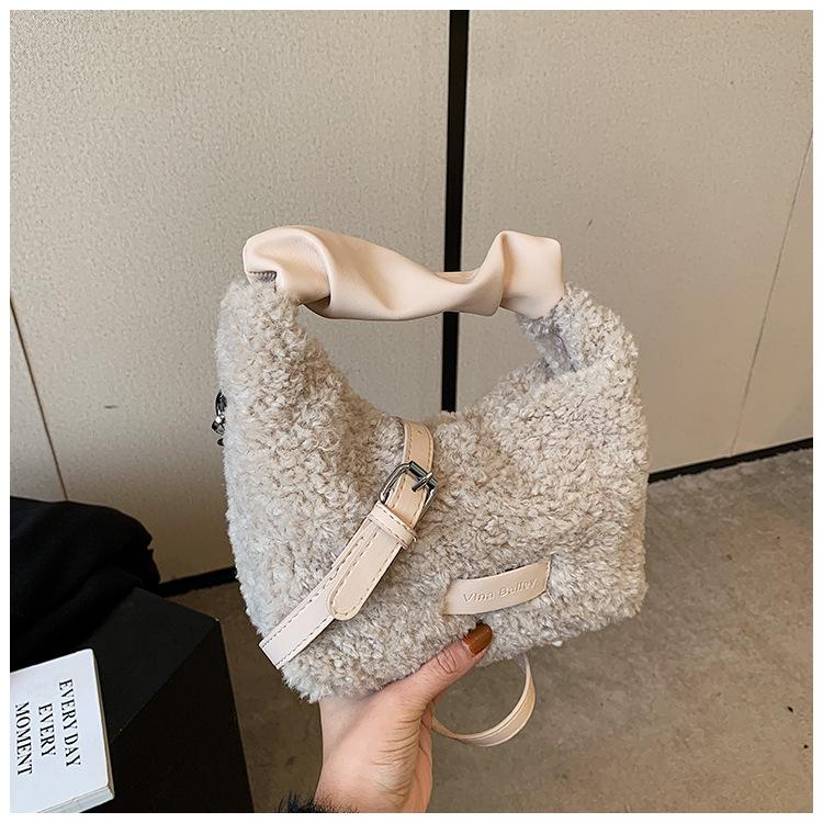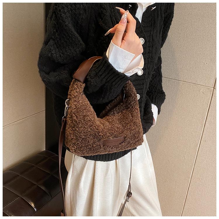 Bolso Dumpling Portátil de Lana de Cordero Transfronterizo 2024 Otoño e Invierno Nuevo Casual Mao Mao Hombro Combinable Moda Crossbody Bolso de Mujer