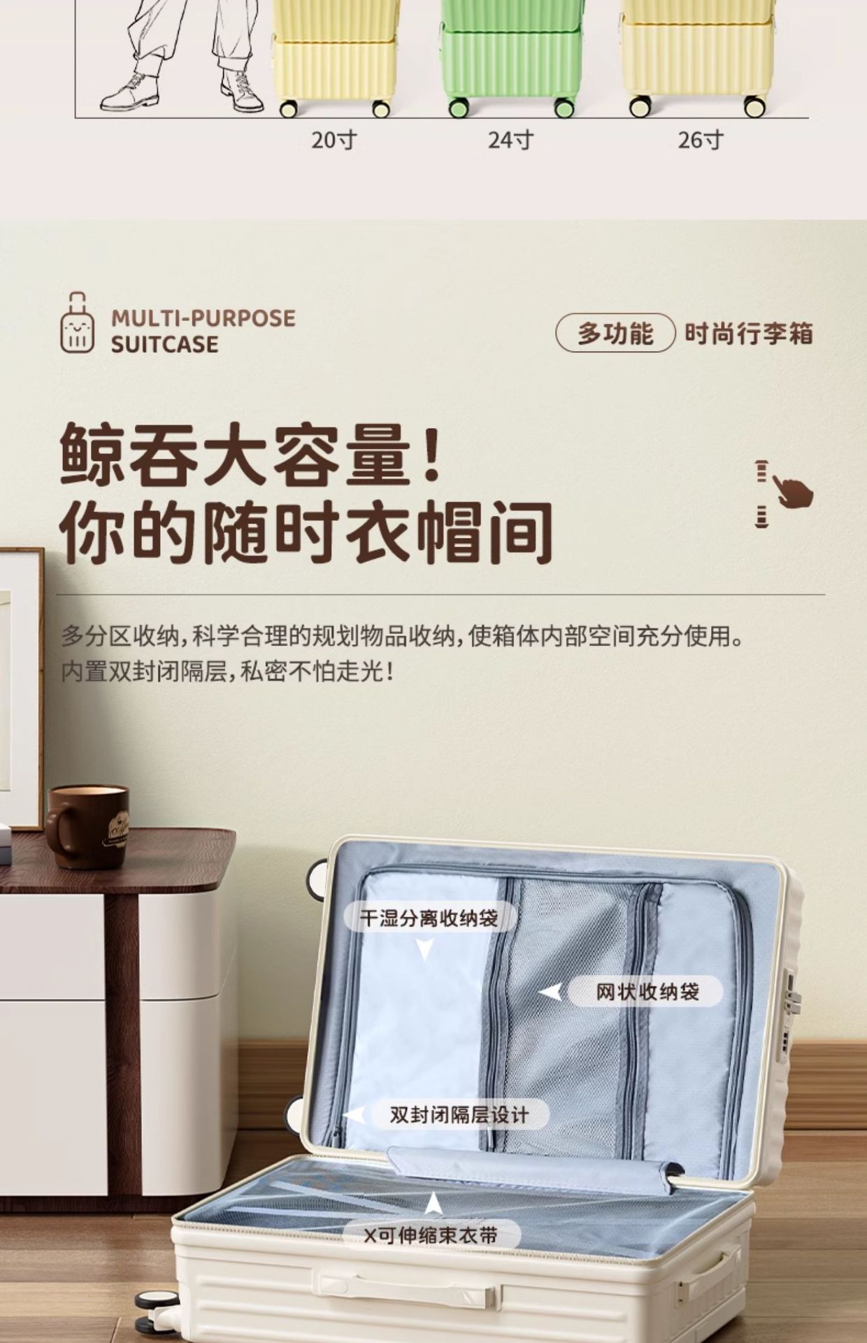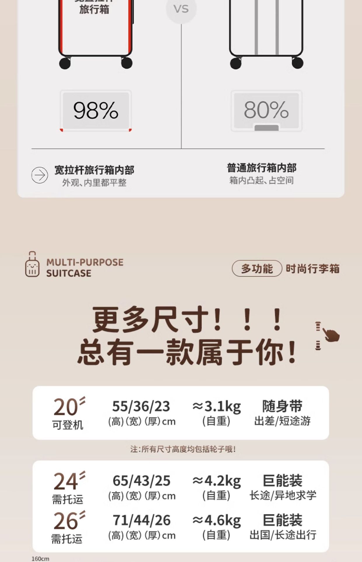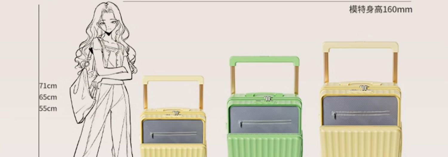 20inch [wide pull rod + front opening], 24inch [wide pull rod + front opening], 26inch [wide pull rod + front opening]