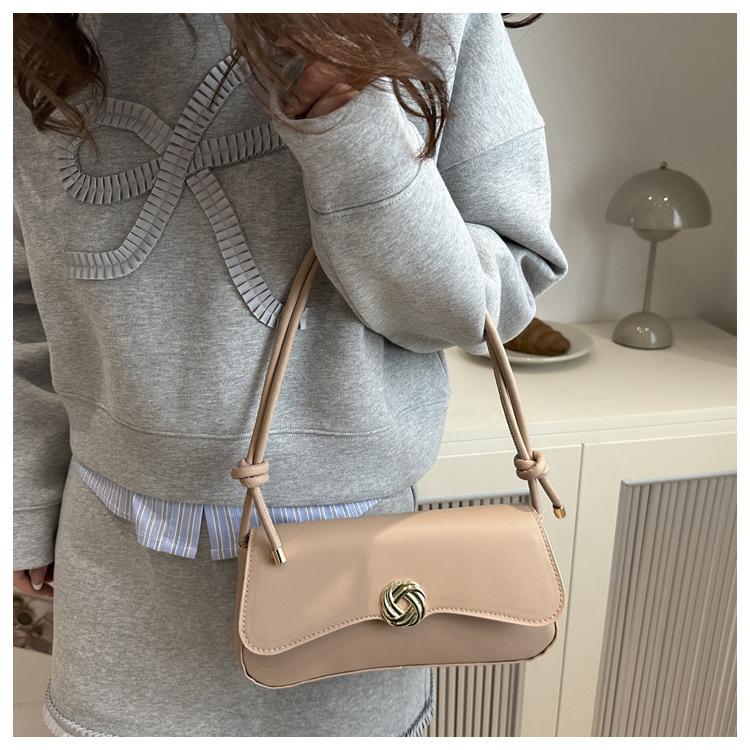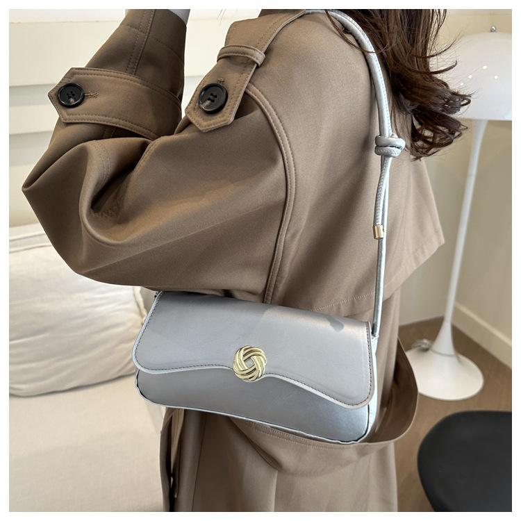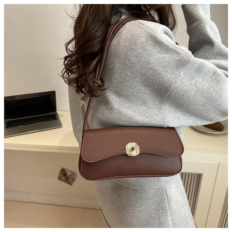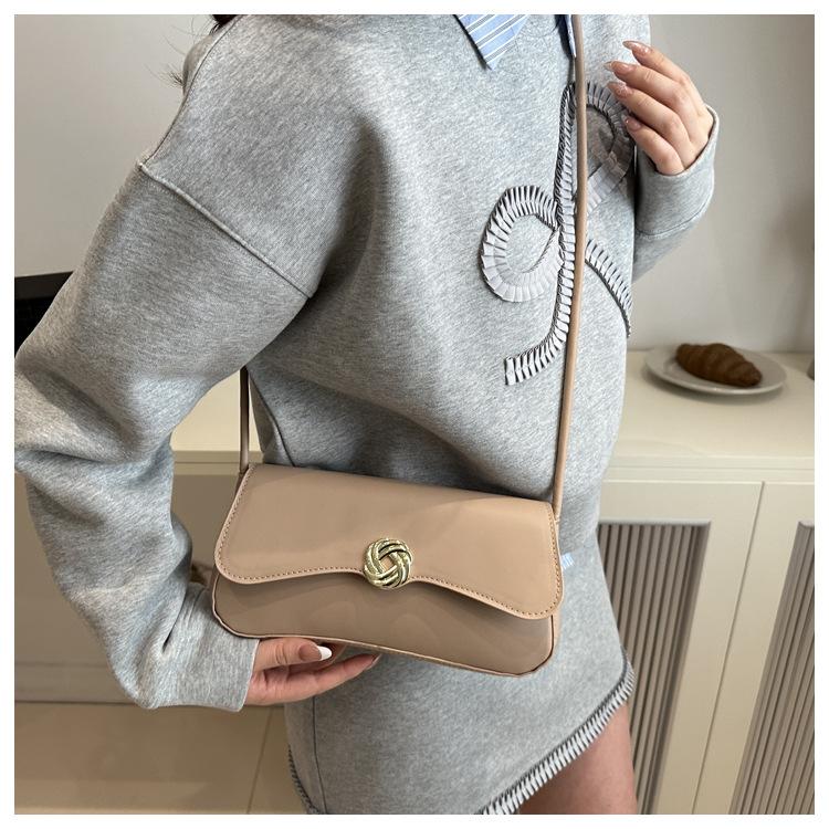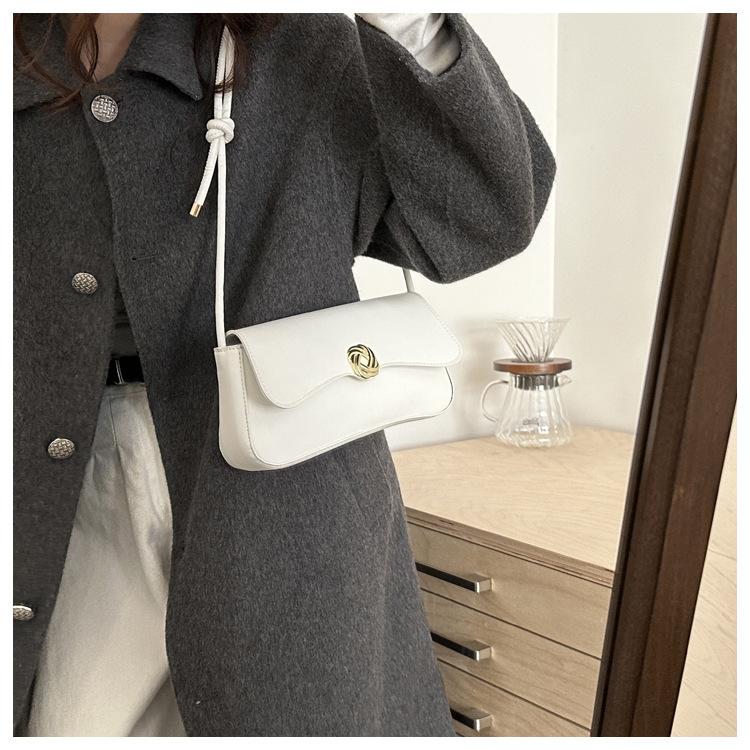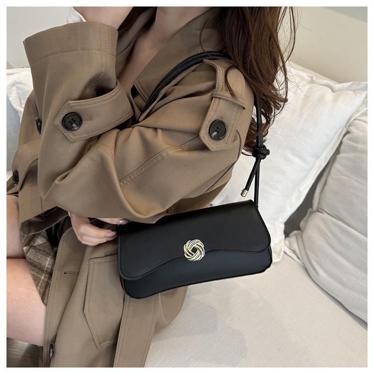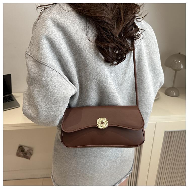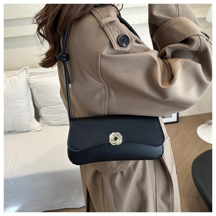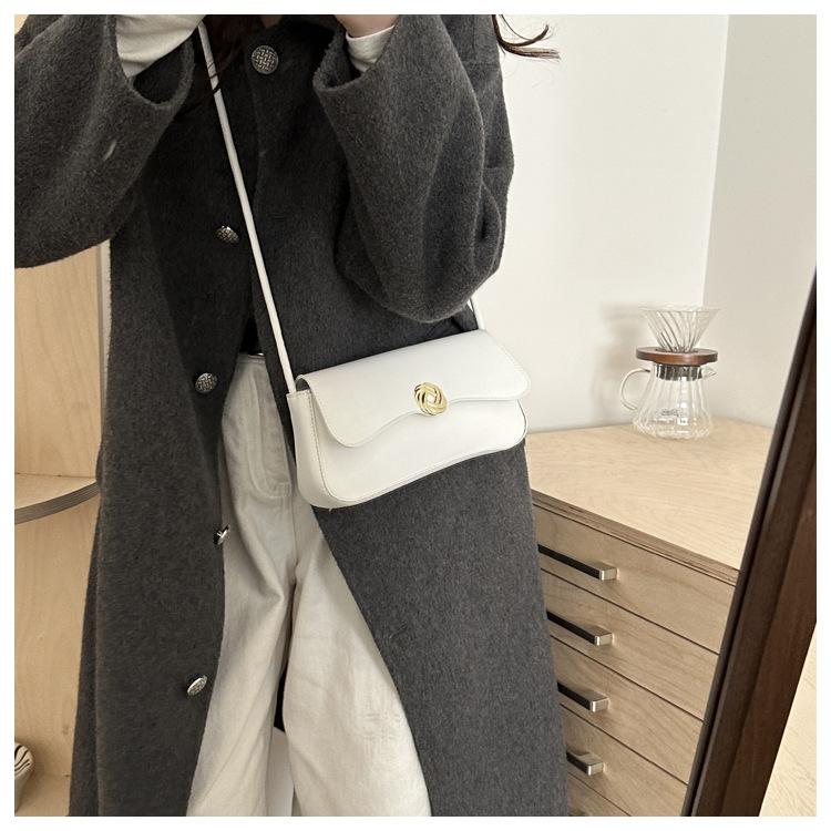 Bolso de hombro para mujer, estilo otoño-invierno 2024, sencillo, redondo, con hebilla de flor, informal, con cadena a juego, pequeño, cuadrado.