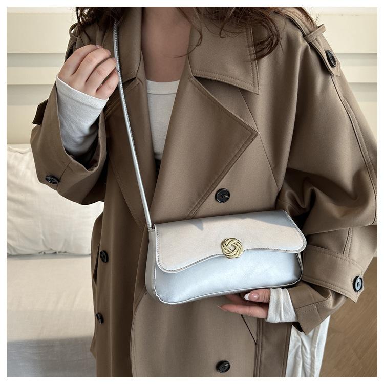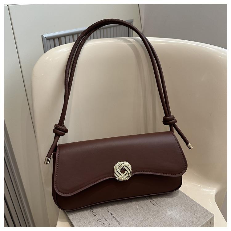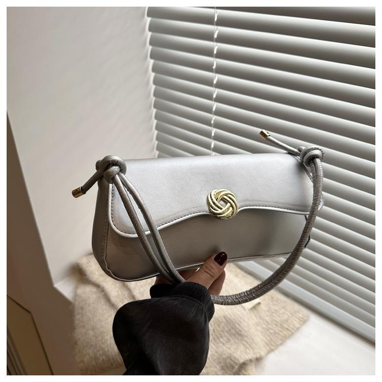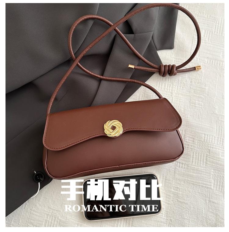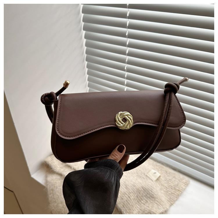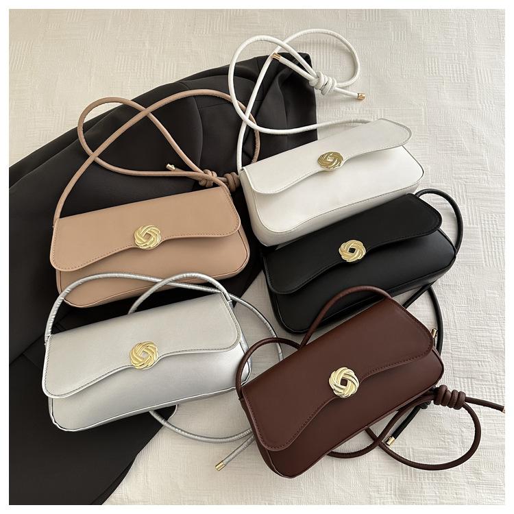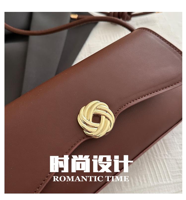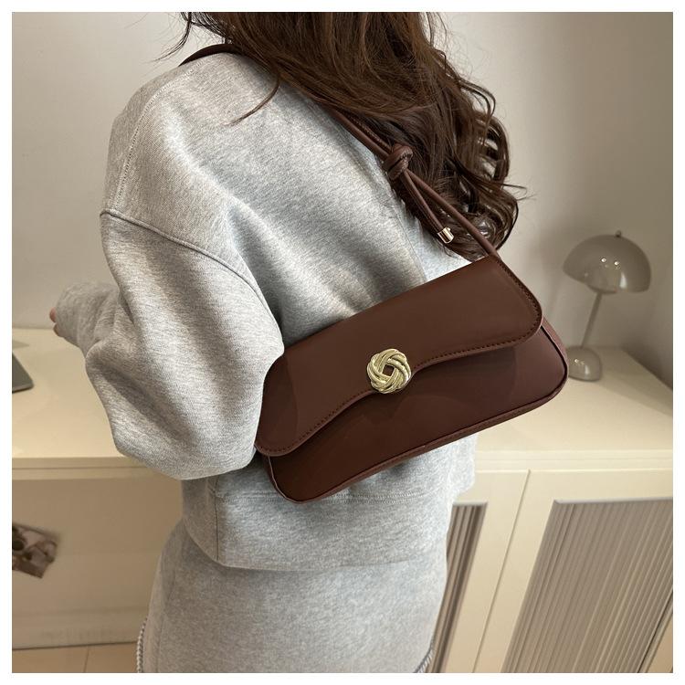 Bolso de hombro para mujer, estilo otoño-invierno 2024, sencillo, redondo, con hebilla de flor, informal, con cadena a juego, pequeño, cuadrado.