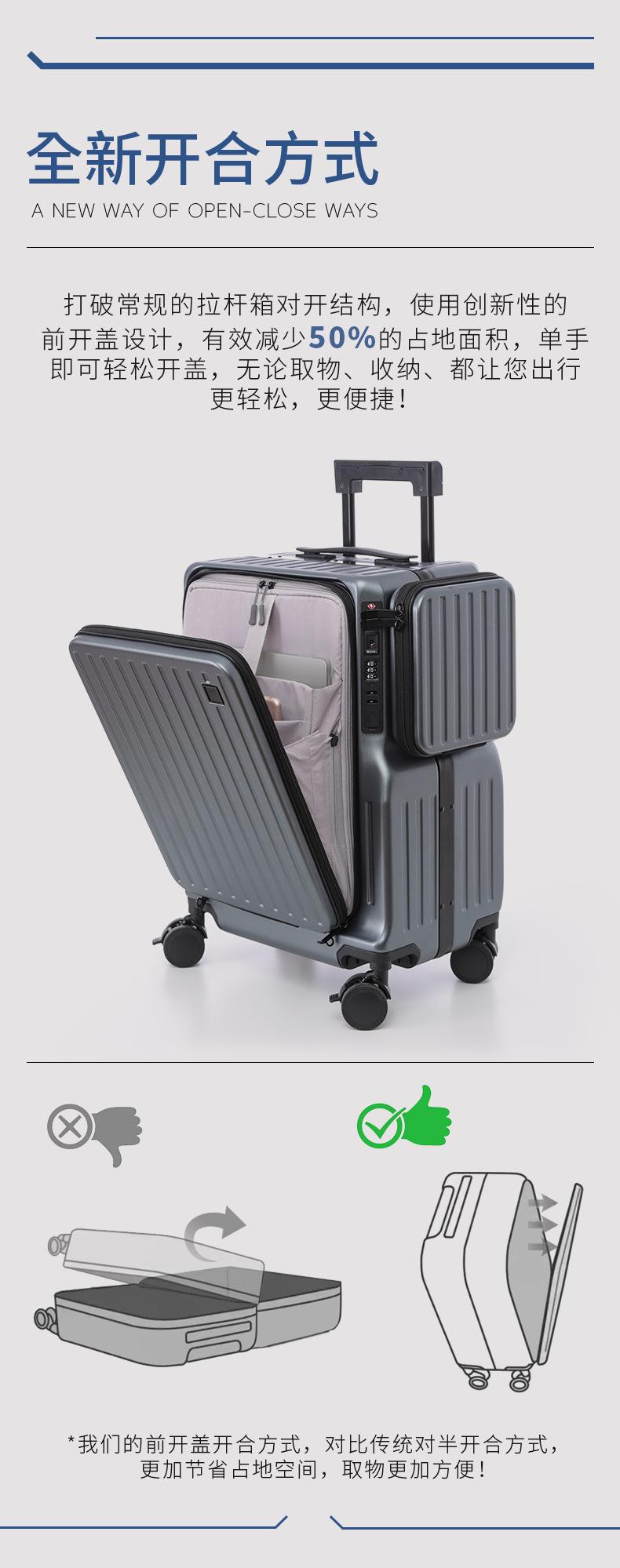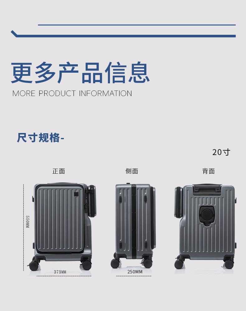 Nuevo Equipaje Transfronterizo de Apertura Frontal con Cremallera, Caja Multifuncional con Ruedas de 20 pulgadas, Maleta de Doble Apertura