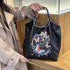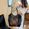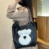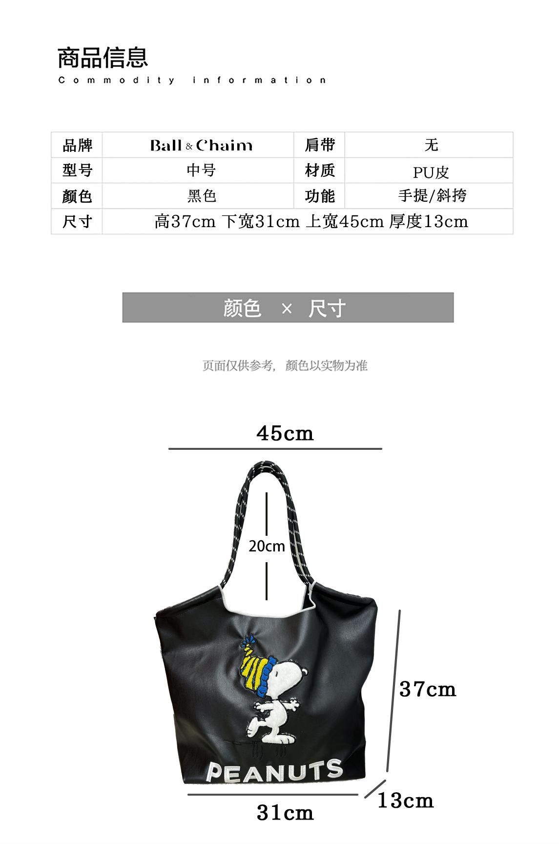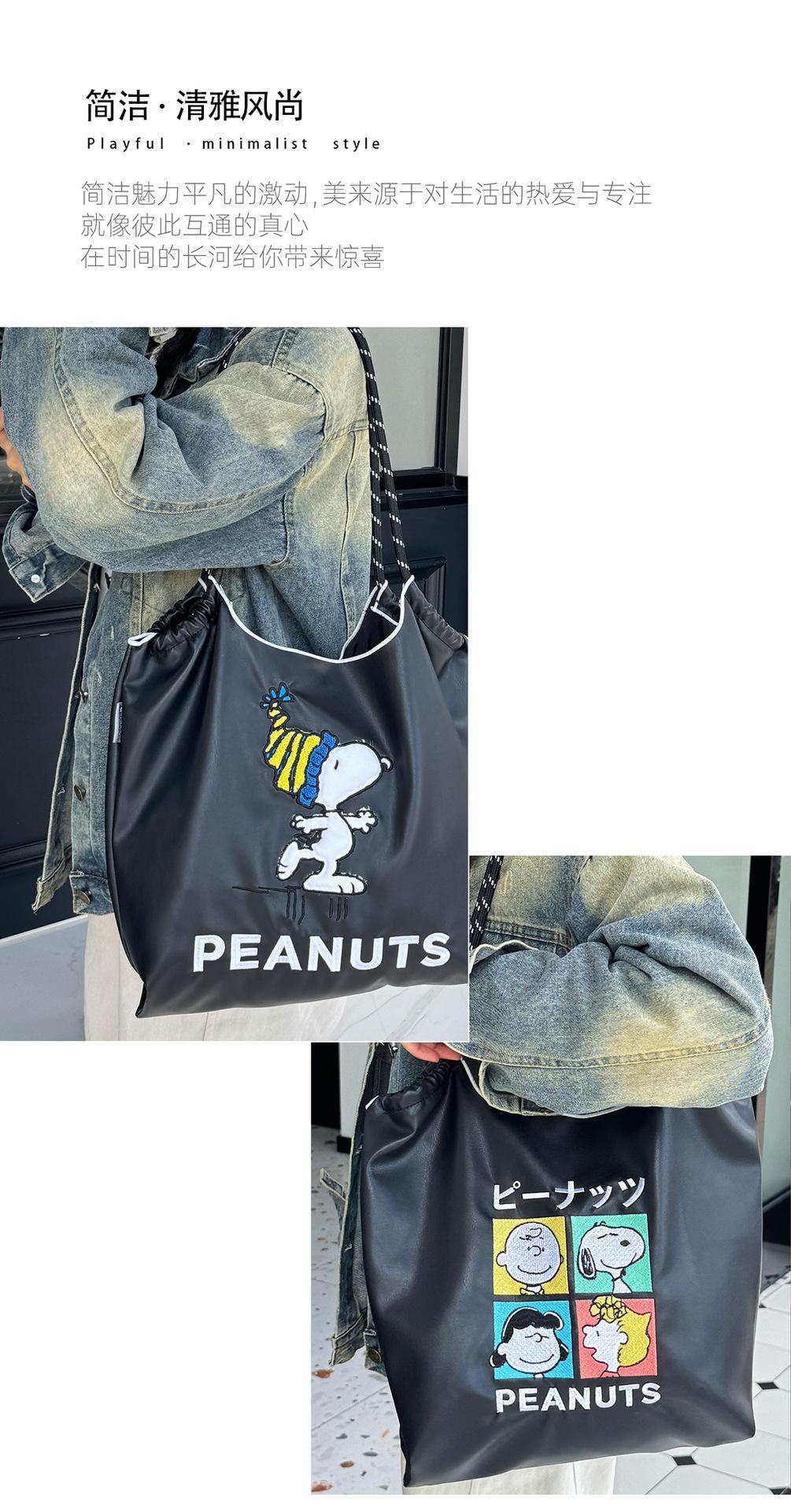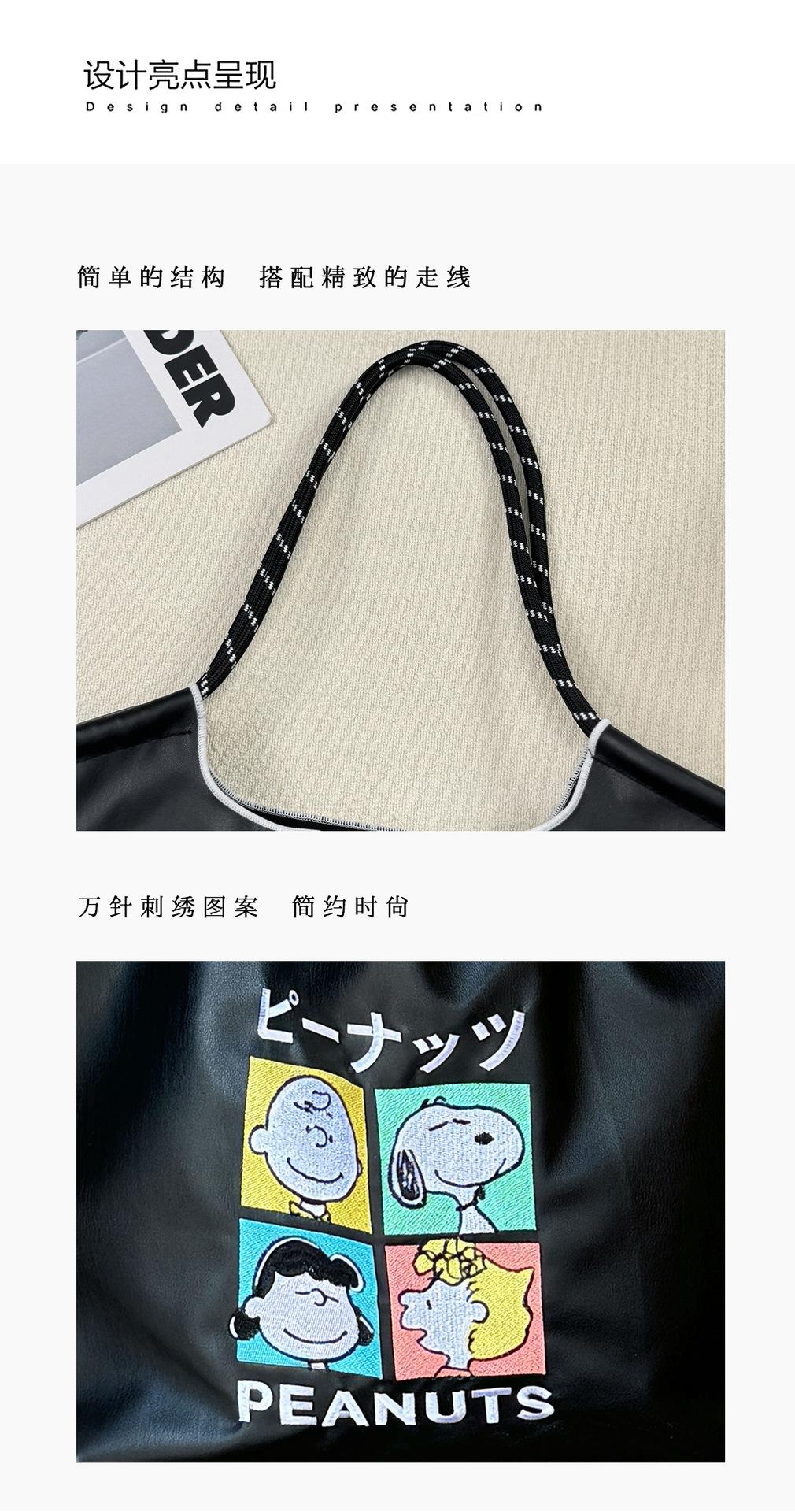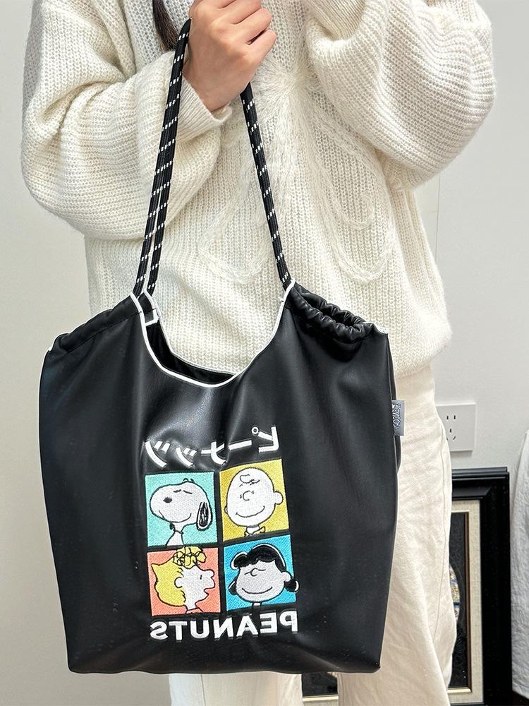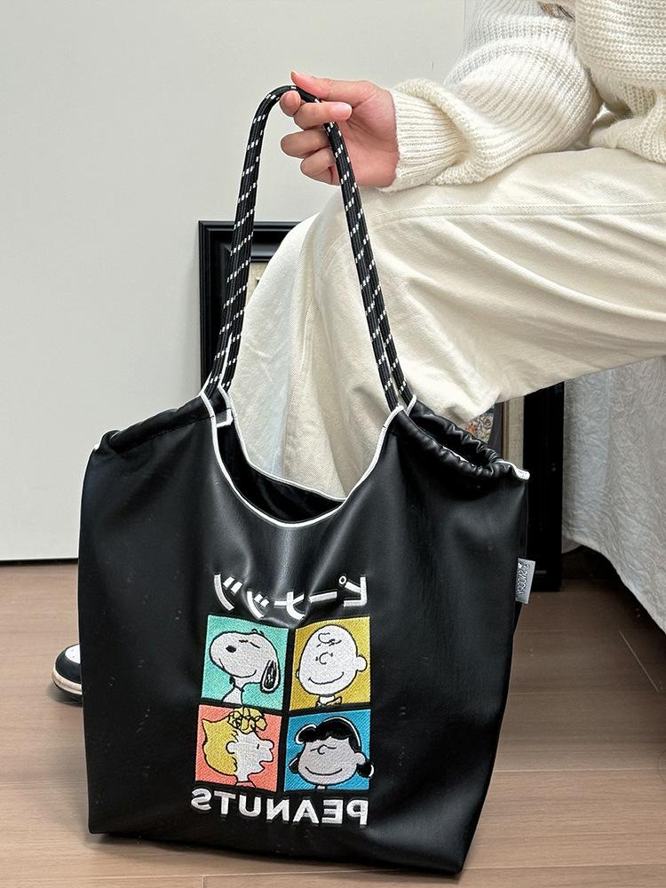 2025 Nuevo Bolso Tote de PU para Mujer de Gran Capacidad Negro Bolso de Hombro Cruzado Snoopy Lindo Bordado Bolso de Compras