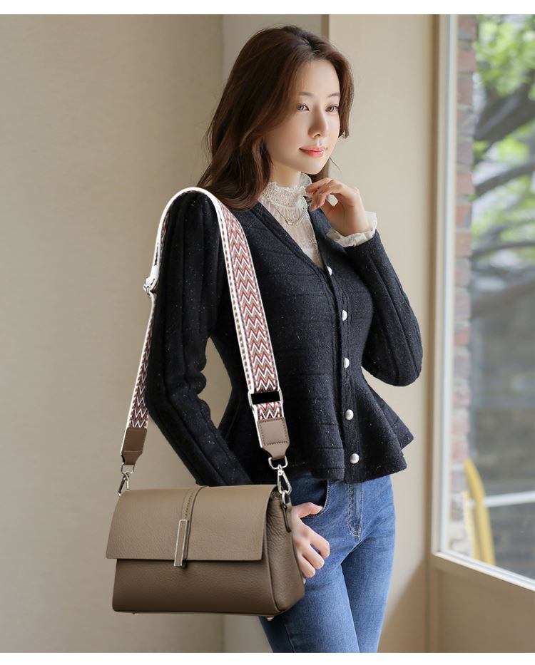 Bolso Tote de Cuero Vacuno de Alta Gama para Mujer Bolso Cruzado Nuevo para Mujer 2025 Bolso de Hombro Simple de Cuero Genuino para Madre Bolso de Mujer