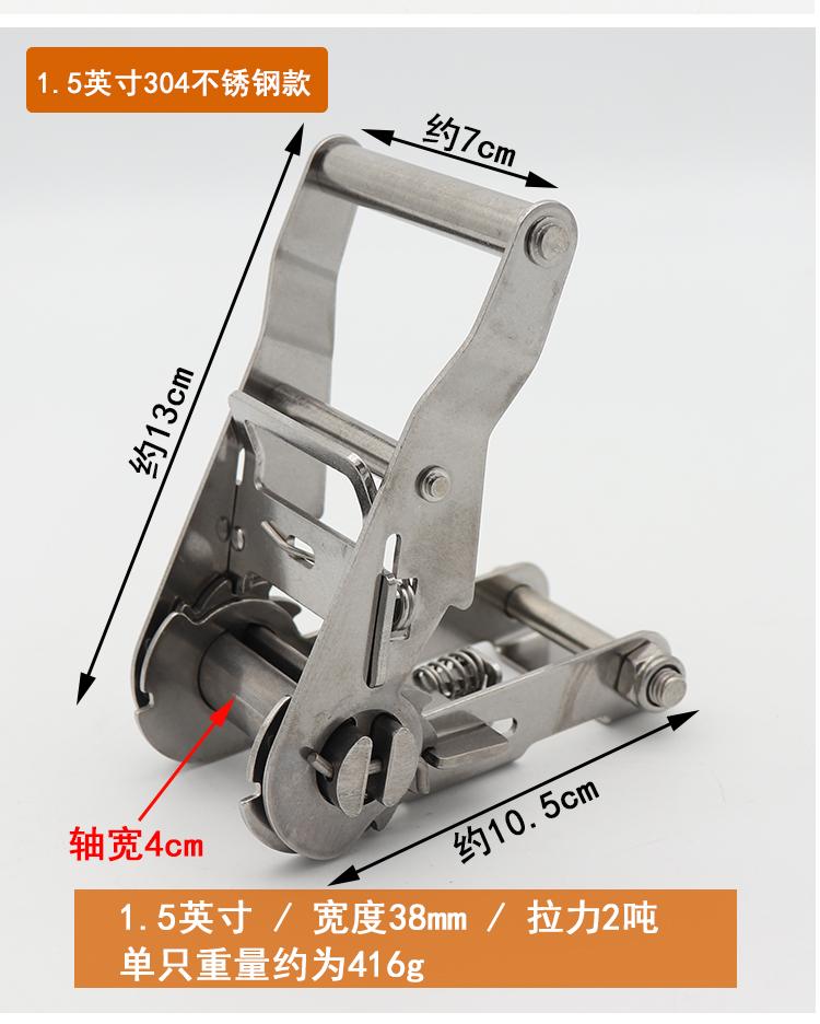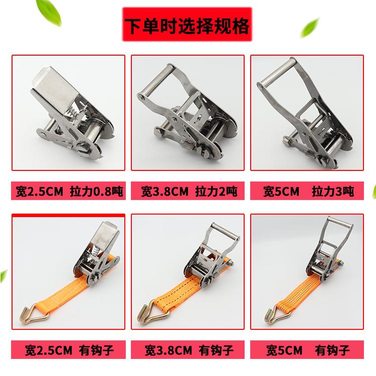 Tensor de trinquete de acero inoxidable 304 para correa de sujeción de carga, tensor de cuerda de paso con gancho y estante fijo para automóvil