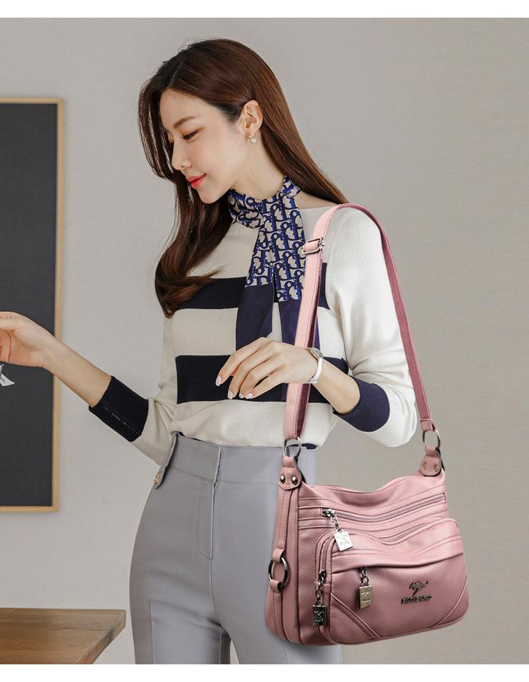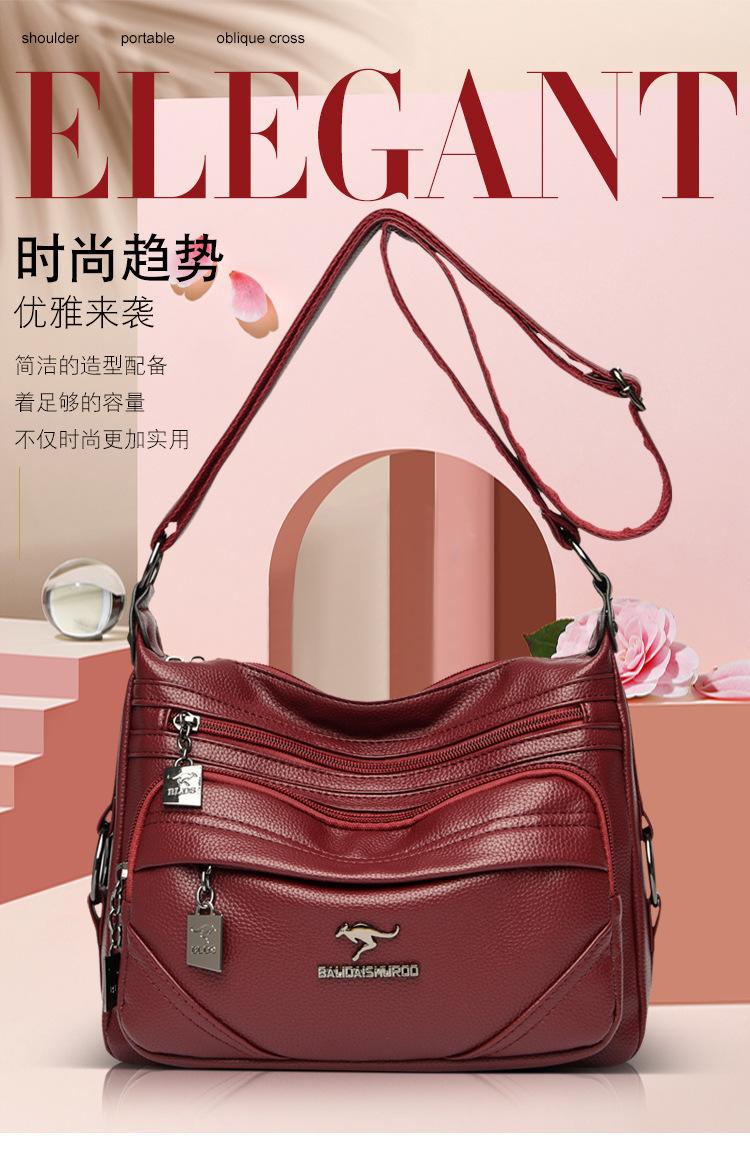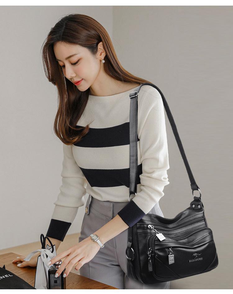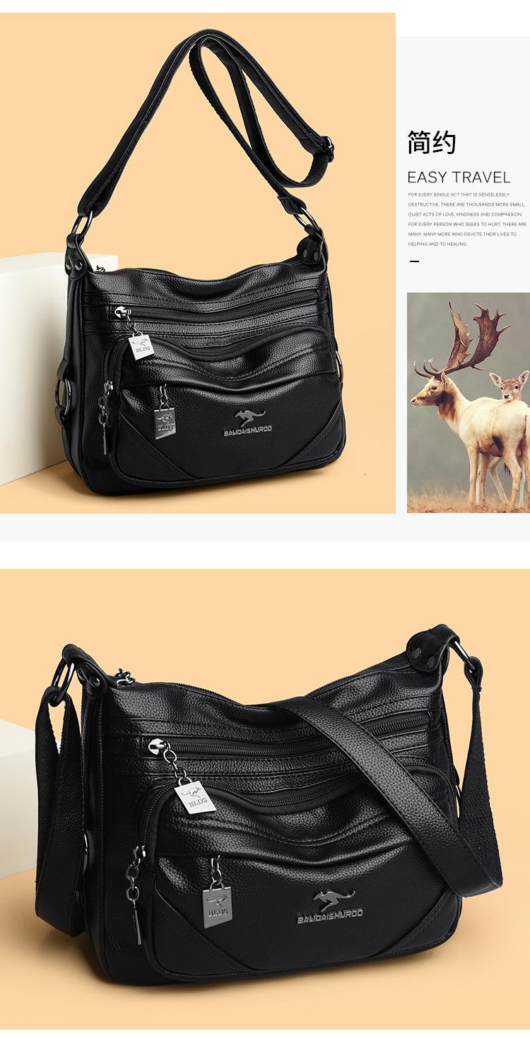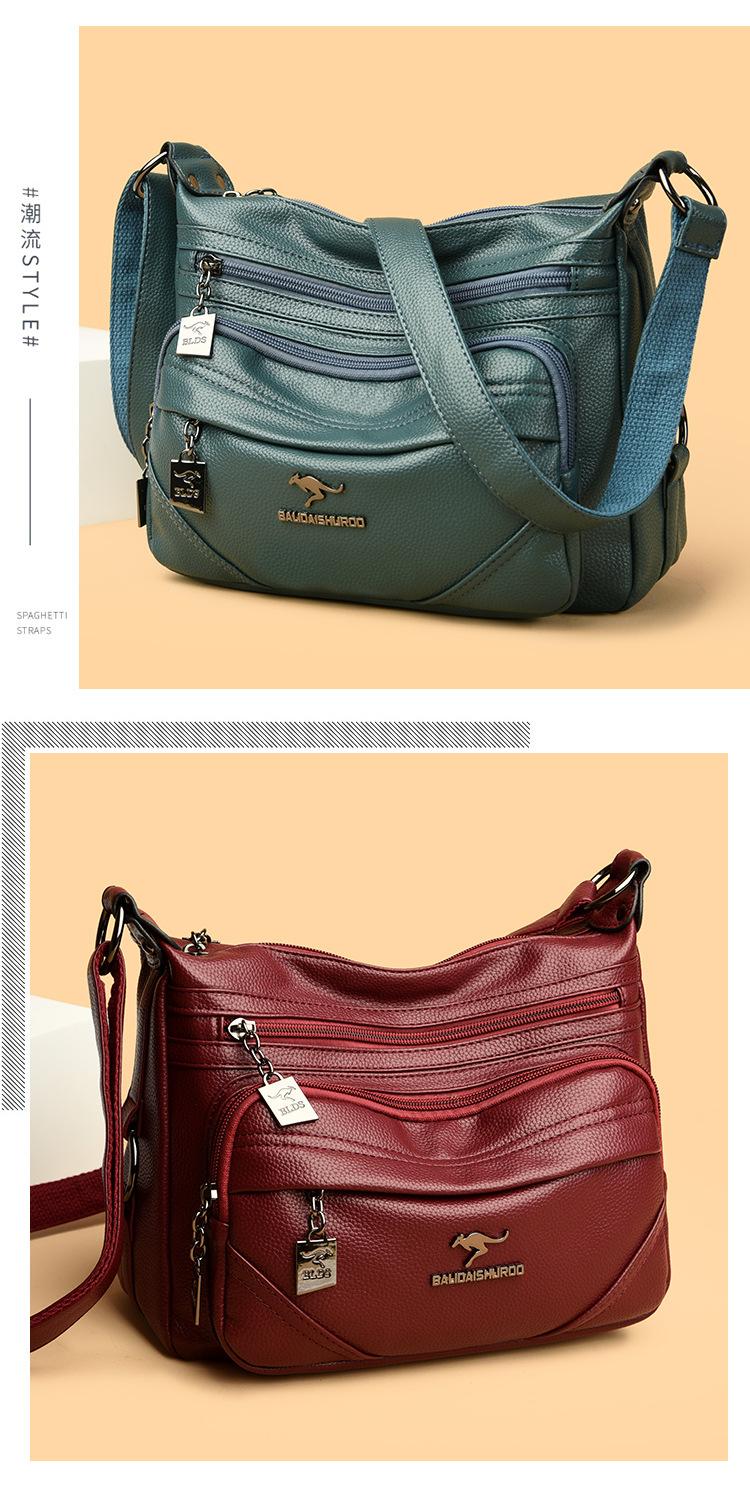 Bolso de Cuero Suave Multicapa para Mujer 2024 Nueva Llegada Moda Combinable Bolso para Madre de Mediana Edad y Adulta Mayor Bolso Bandolera de Hombro de Gran Capacidad para Mujer