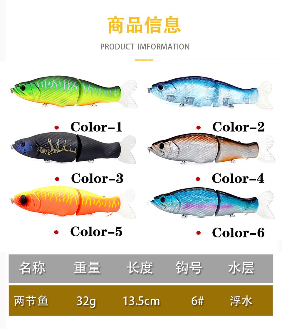 Señuelo Flotante Multisección 13.5Cm/32G Señuelo Falso de Dos Secciones Señuelo Biónico Suministro Transfronterizo de Largo Alcance Equipo de Pesca Personalización de Fábrica