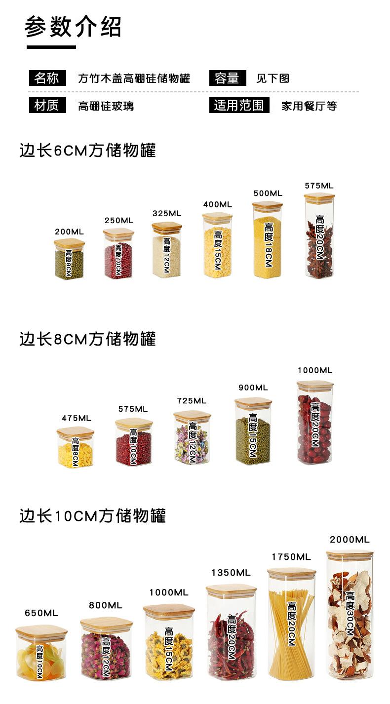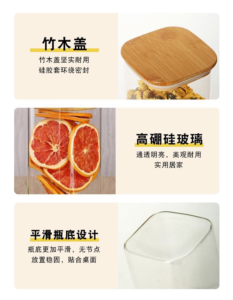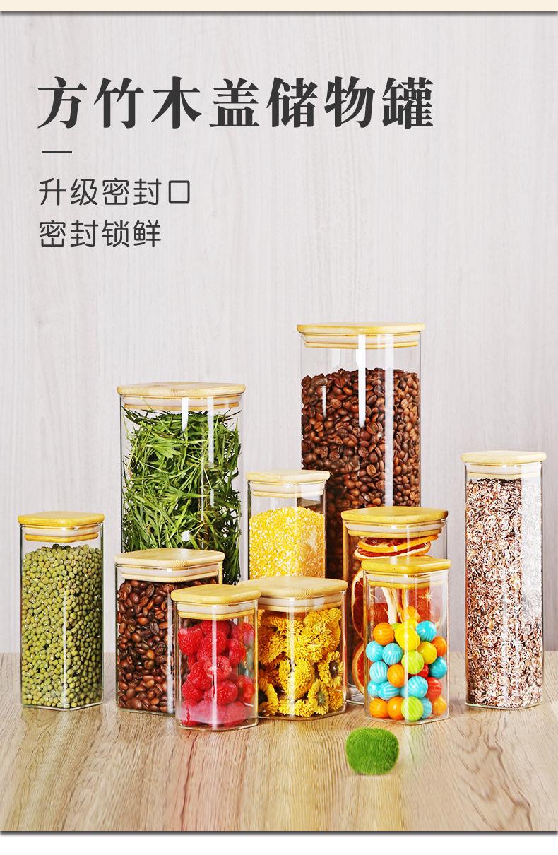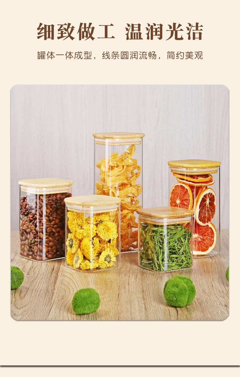 Tarro de vidrio cuadrado para almacenamiento, tarro sellado, tarro de vidrio transparente, artefacto de almacenamiento de cocina, tarro de almacenamiento de té perfumado con granos
