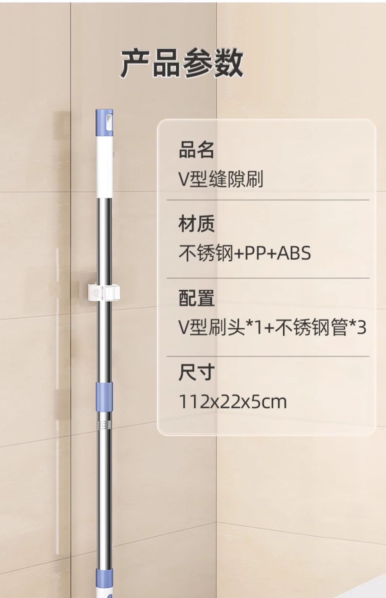 V-shaped crevice brush-telescopic pole (with mop hanger)