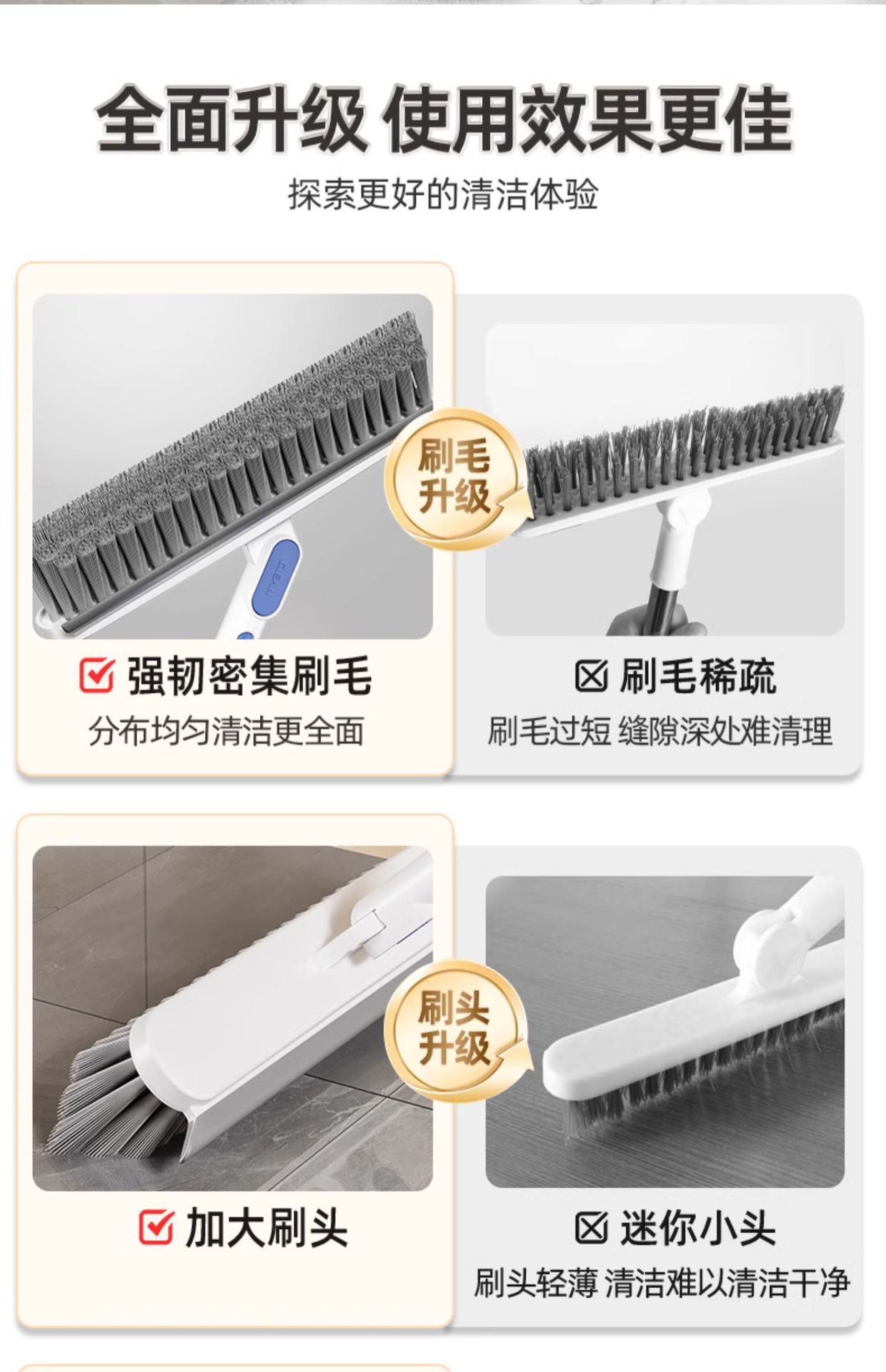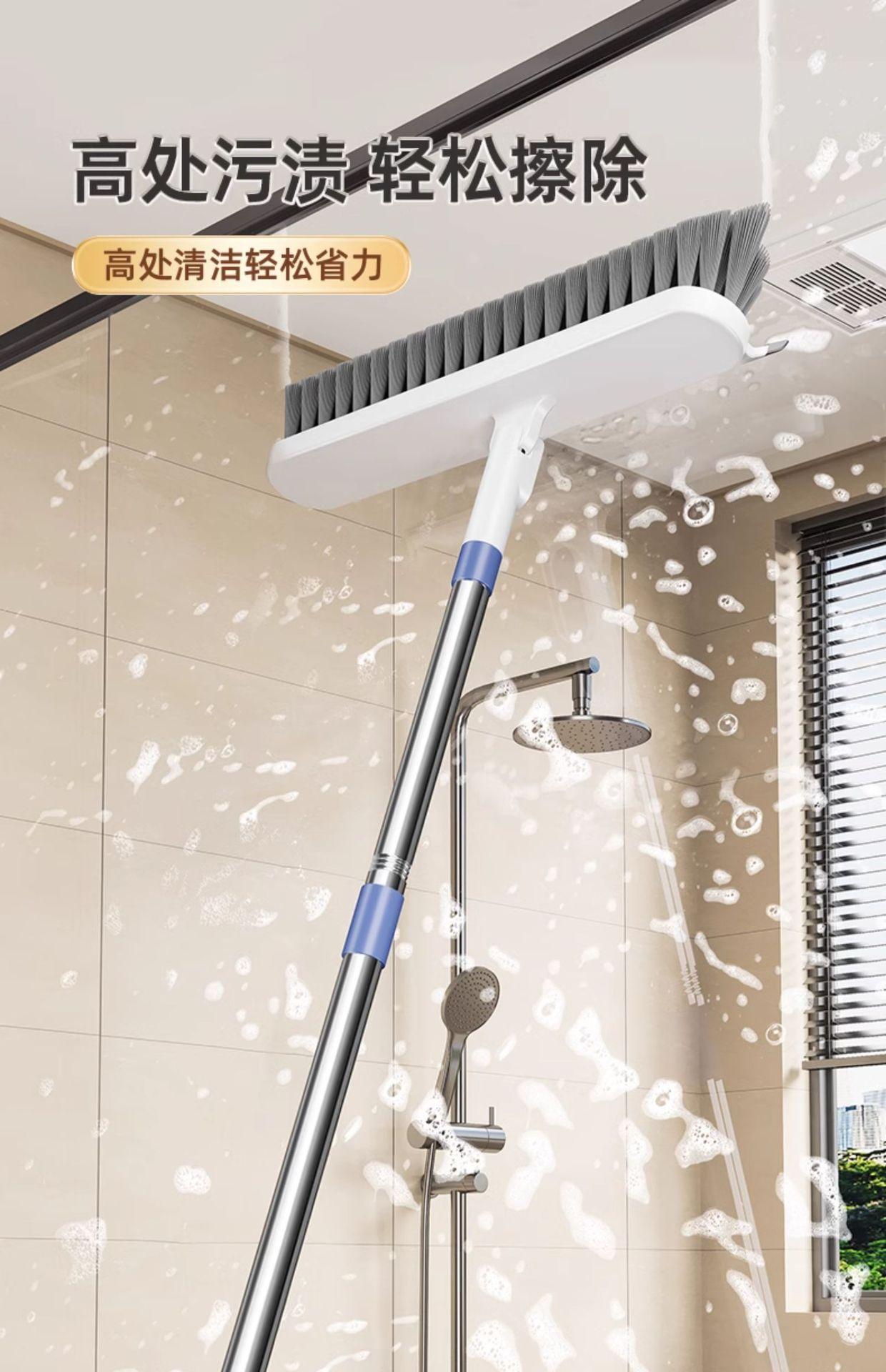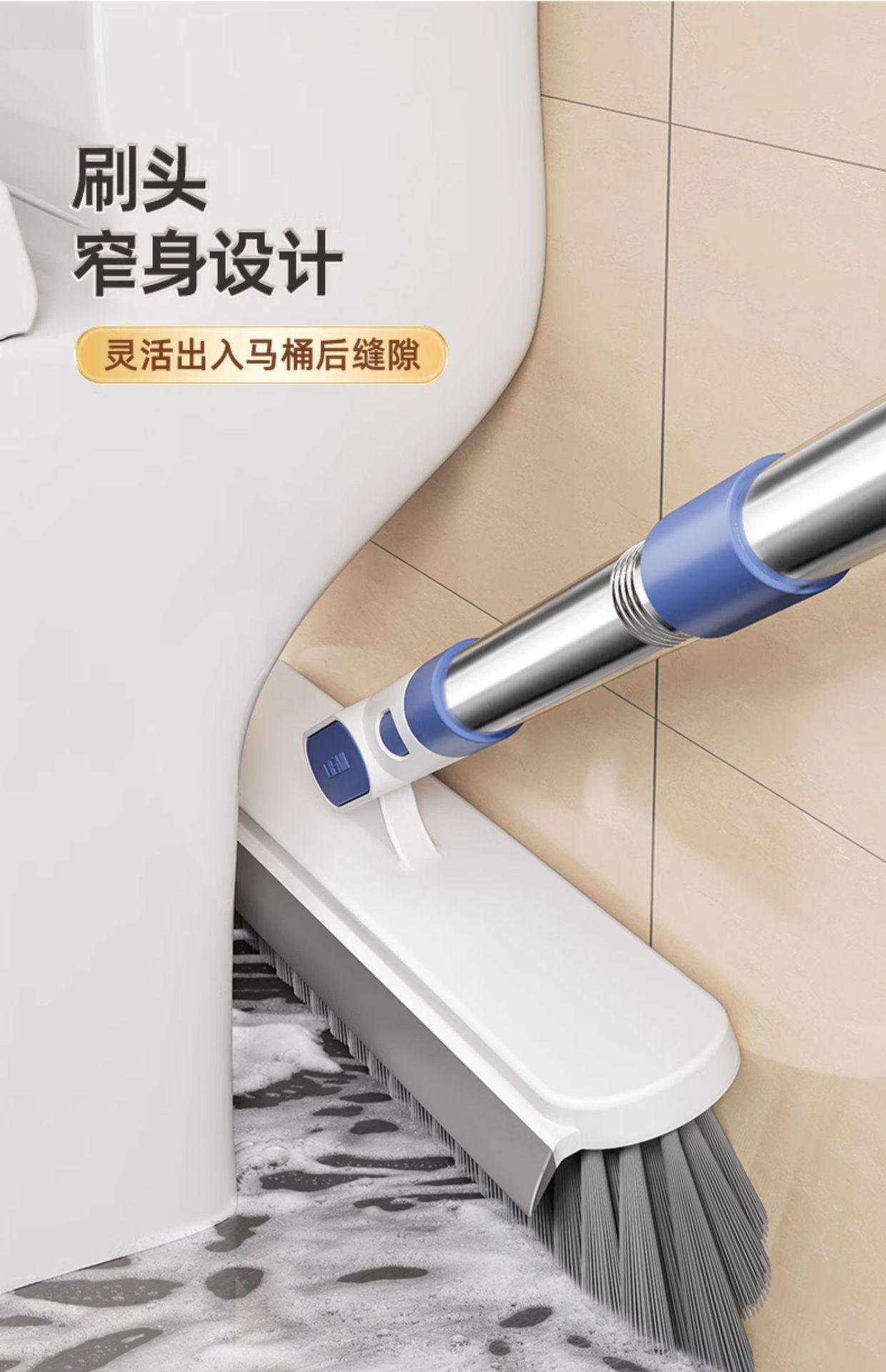 Cepillo de baño, cepillo de piso, varilla telescópica, cepillo de limpieza de inodoro con cerdas, cepillo de limpieza de esquinas muertas de doble propósito, cepillo para huecos de esquinas