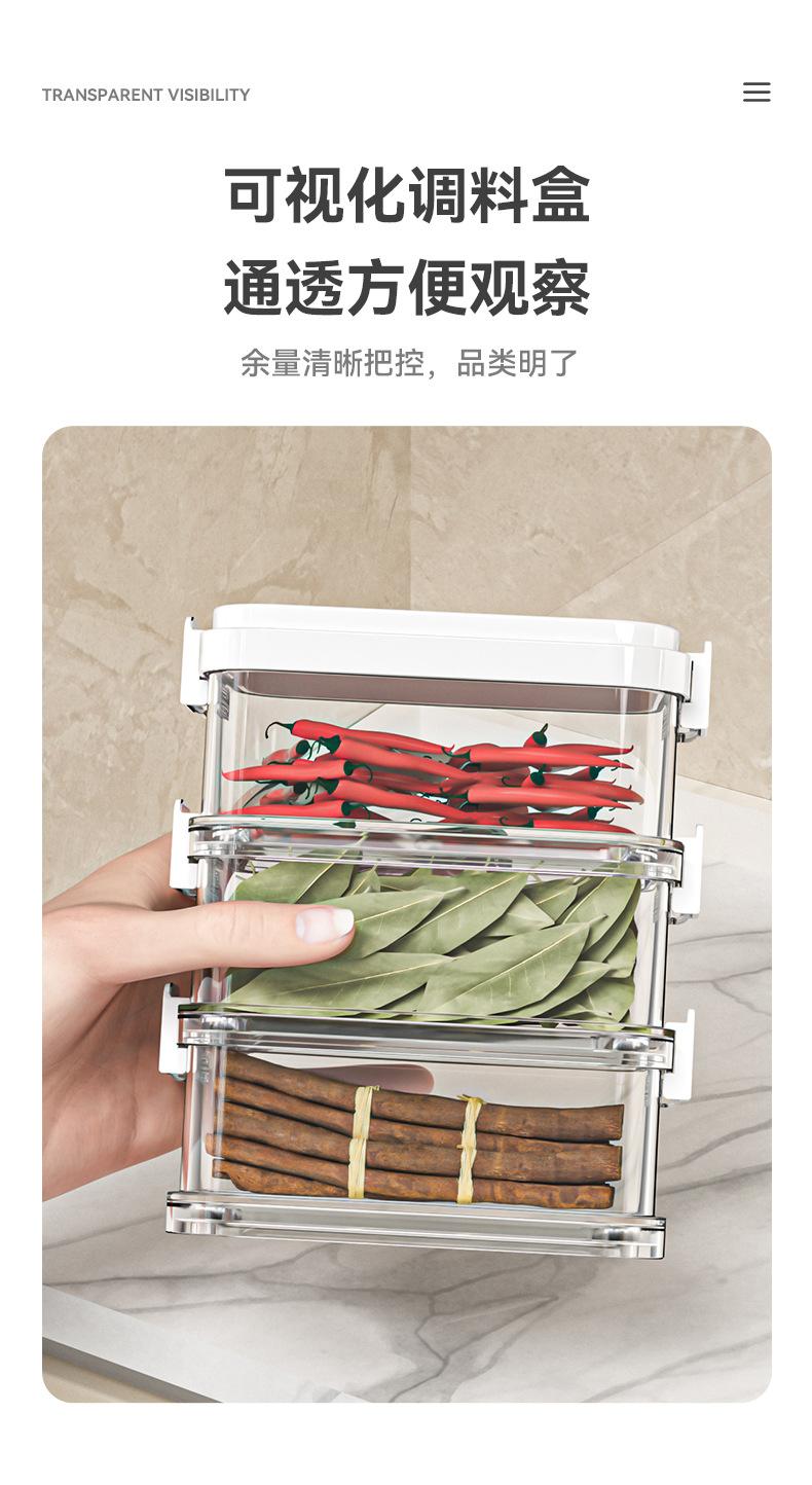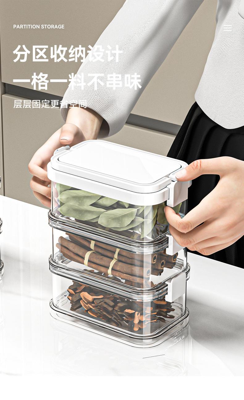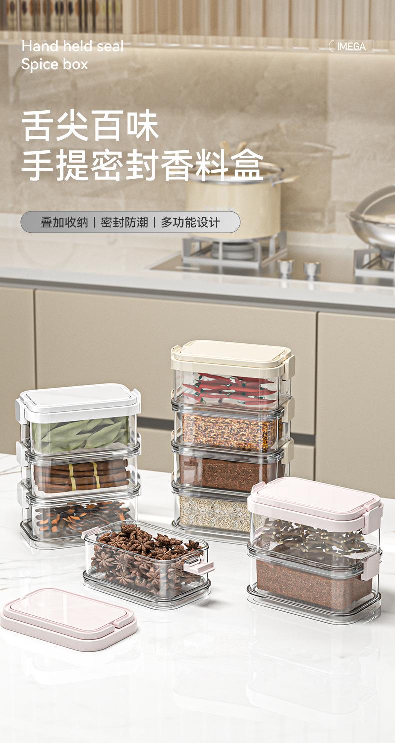 Caja de Almacenamiento de Especias, Hogar Portátil Sellada a Prueba de Humedad Cocina Apilable Grado Alimenticio Pimienta Condimento Caja de Almacenamiento