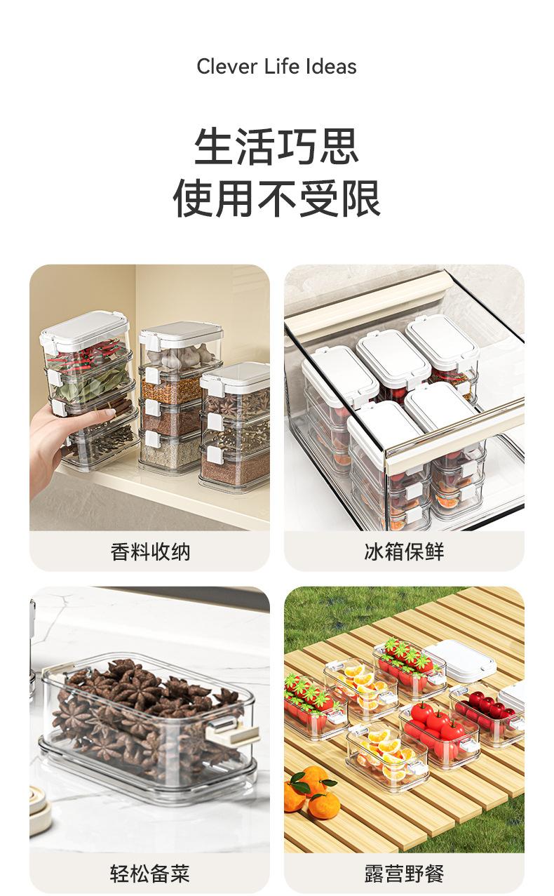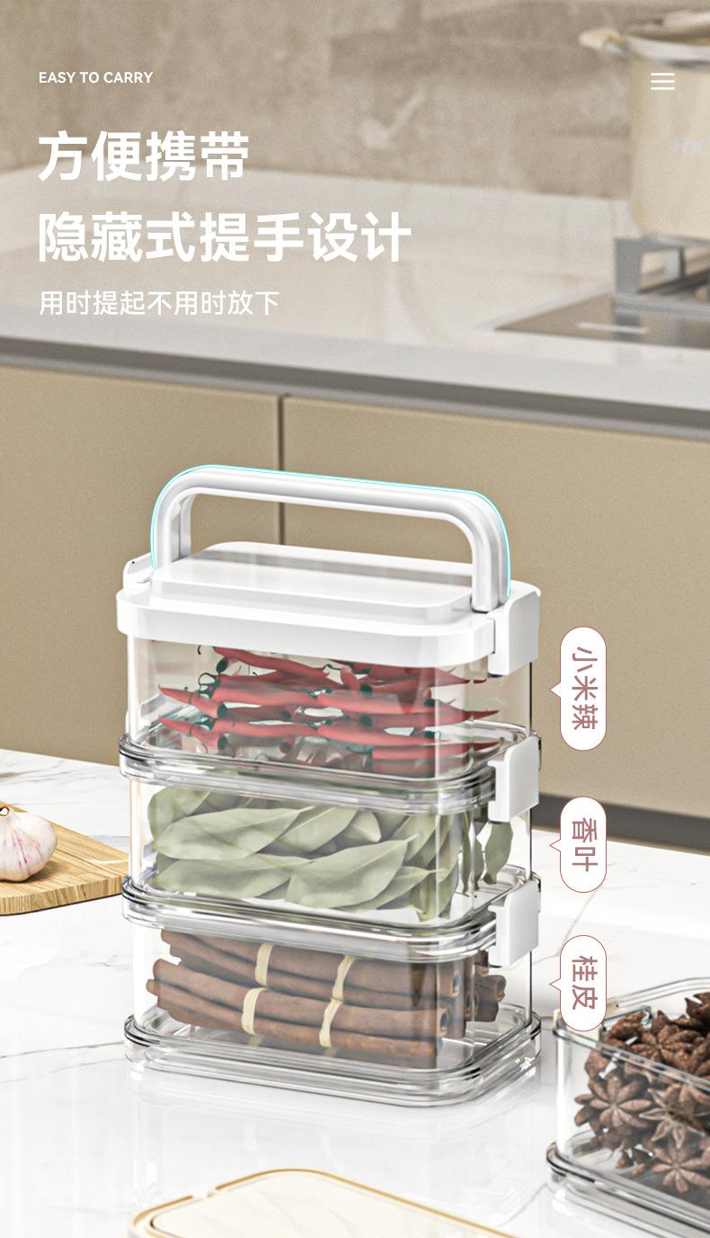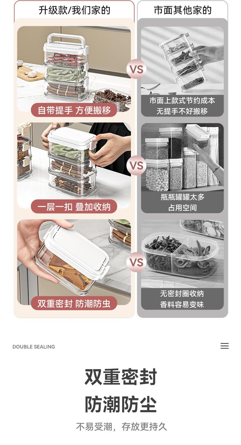 Caja de Almacenamiento de Especias, Hogar Portátil Sellada a Prueba de Humedad Cocina Apilable Grado Alimenticio Pimienta Condimento Caja de Almacenamiento