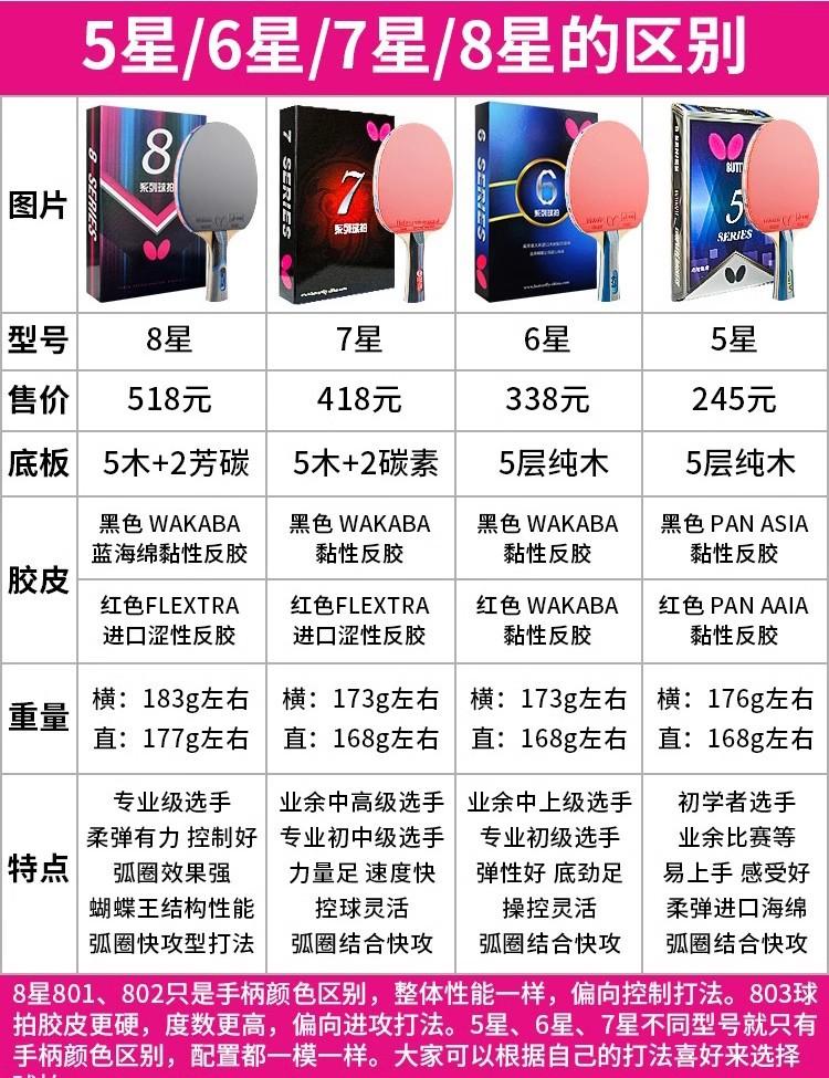 Raqueta de tenis de mesa Butterfly 8 estrellas grado profesional 7 estrellas 6 estrellas 5 estrellas soldado Butterfly raqueta individual productos genuinos