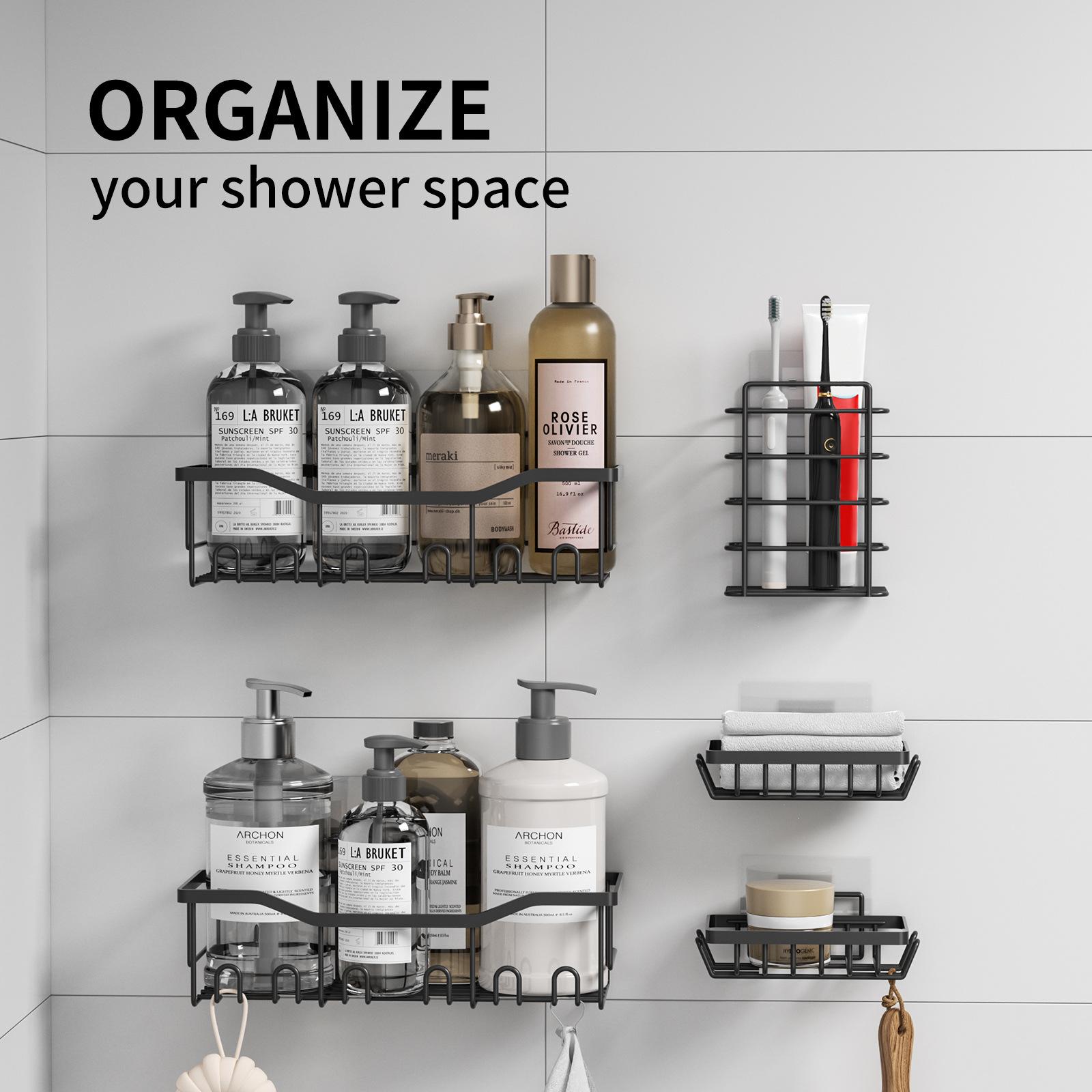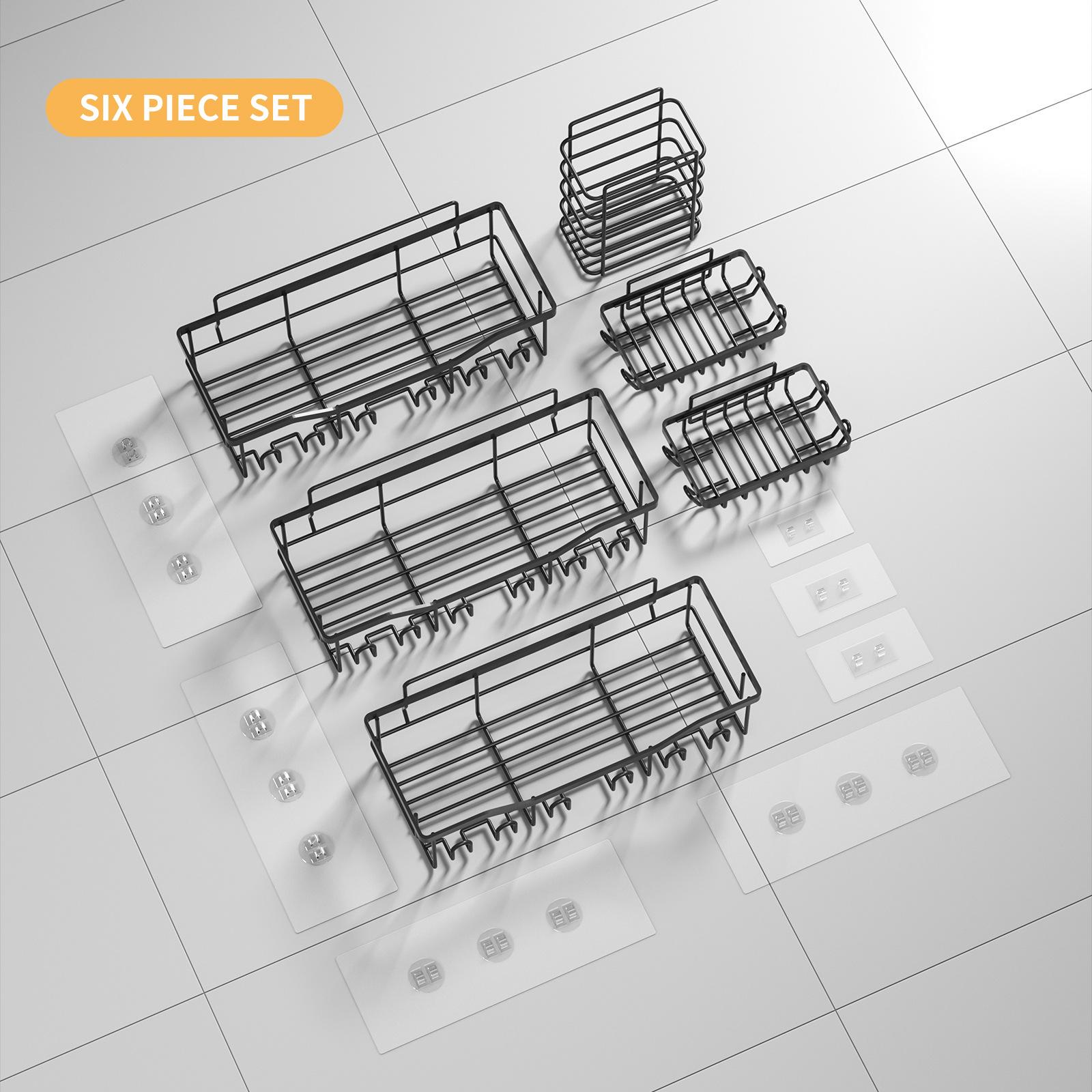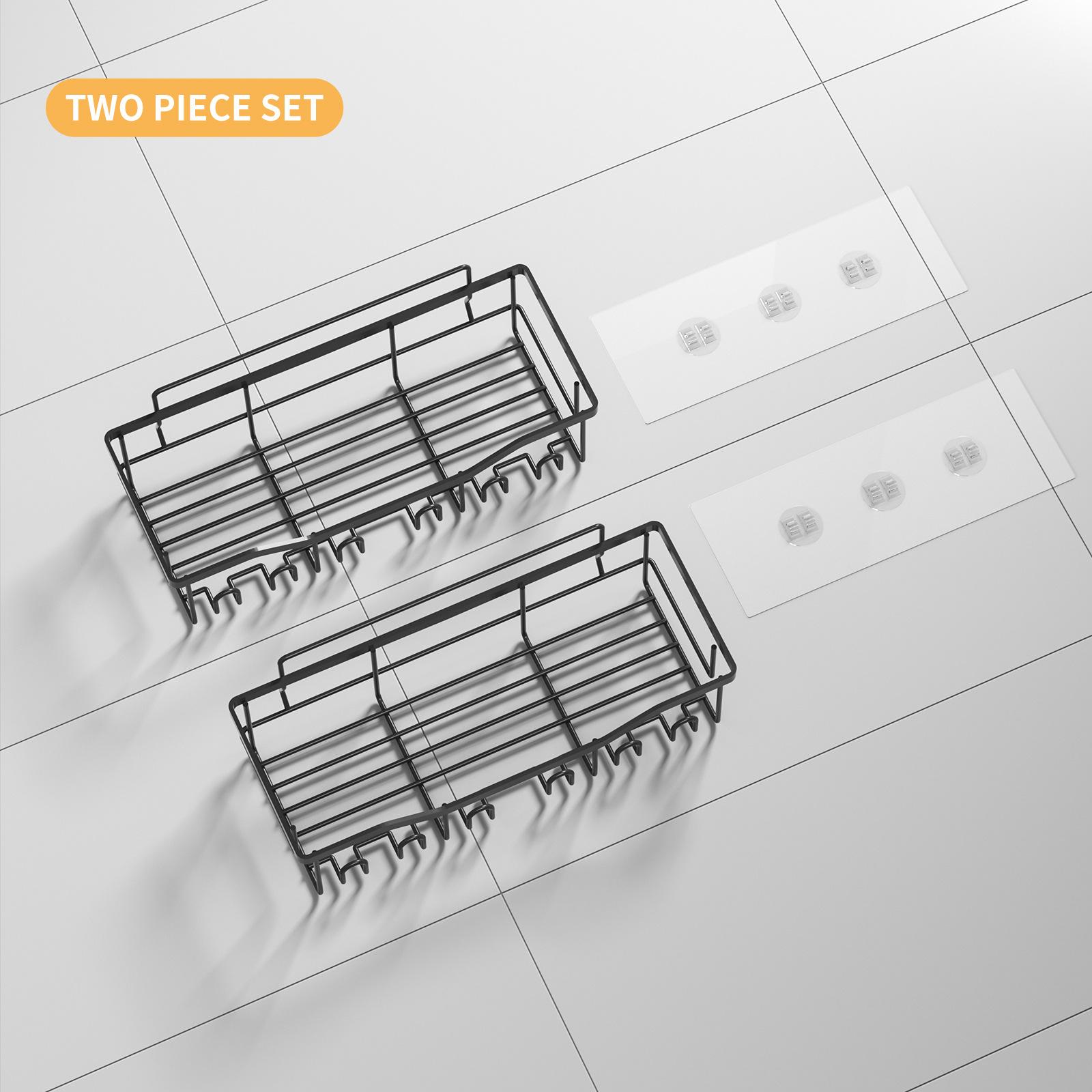 Black storage rack 2-piece set (2 6-hook baskets), Black storage rack 5-piece set (2 6-hook baskets + 2 soap d...