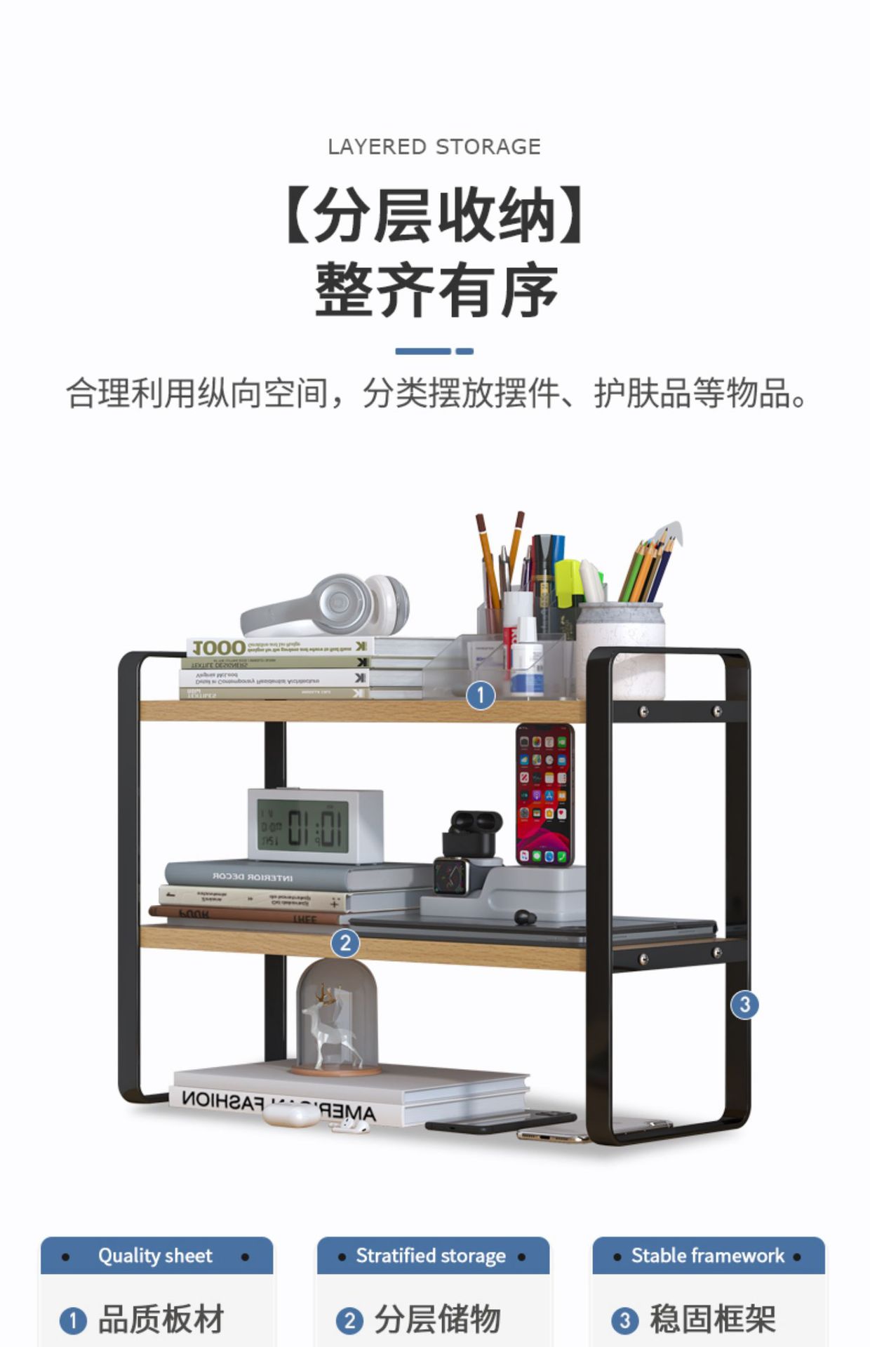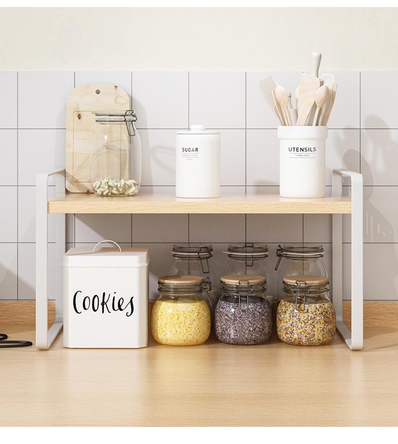 Estante de almacenamiento escalonado para encimera de cocina, estante de almacenamiento de escritorio, estante de almacenamiento multifuncional para especias y cosméticos, hecho de acero al carbono