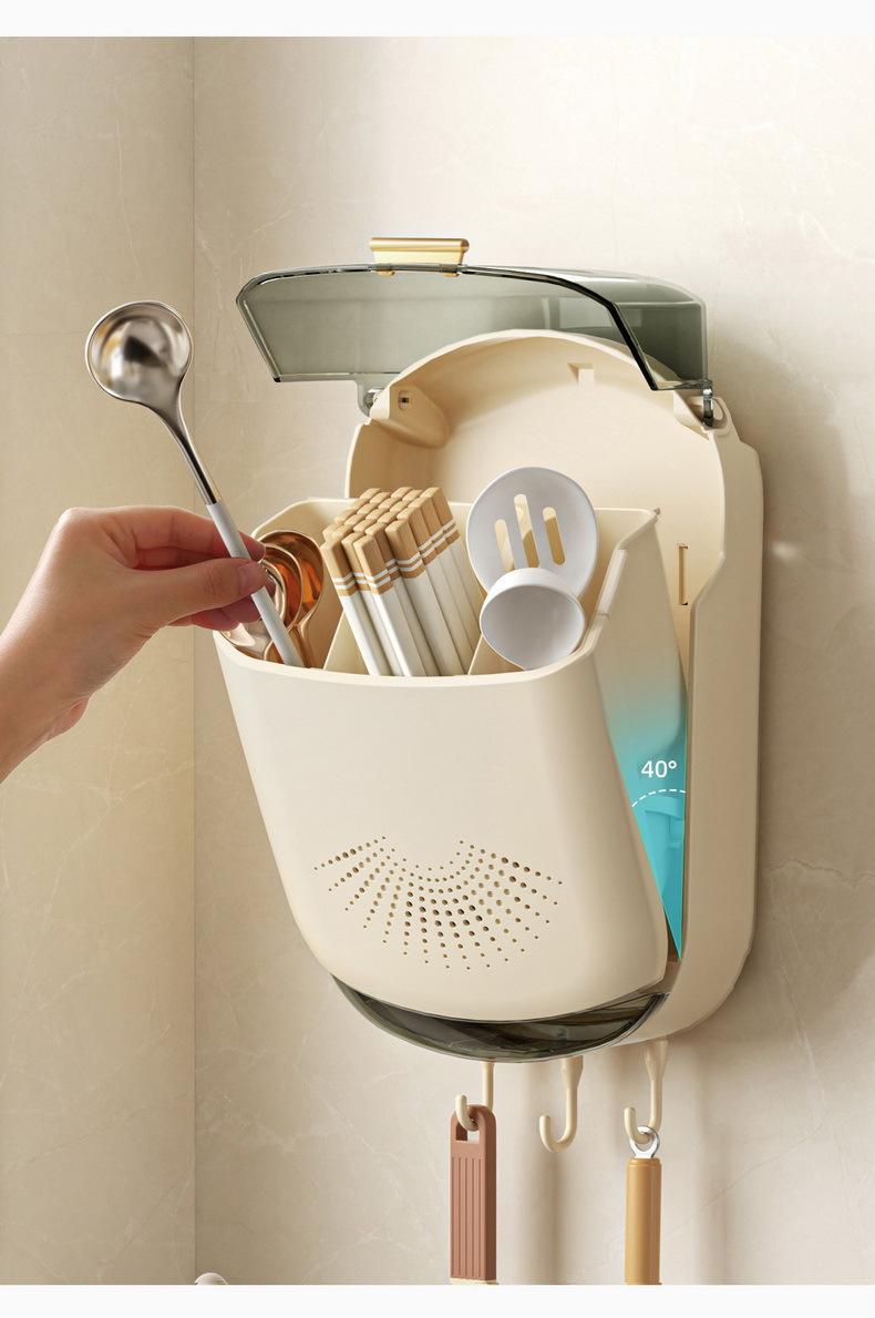 Soporte para palillos de pared, cesta para palillos sin agujeros, escurridor, jaula para palillos de cocina, estante de almacenamiento, caja para guardar palillos de cuchara, para el hogar