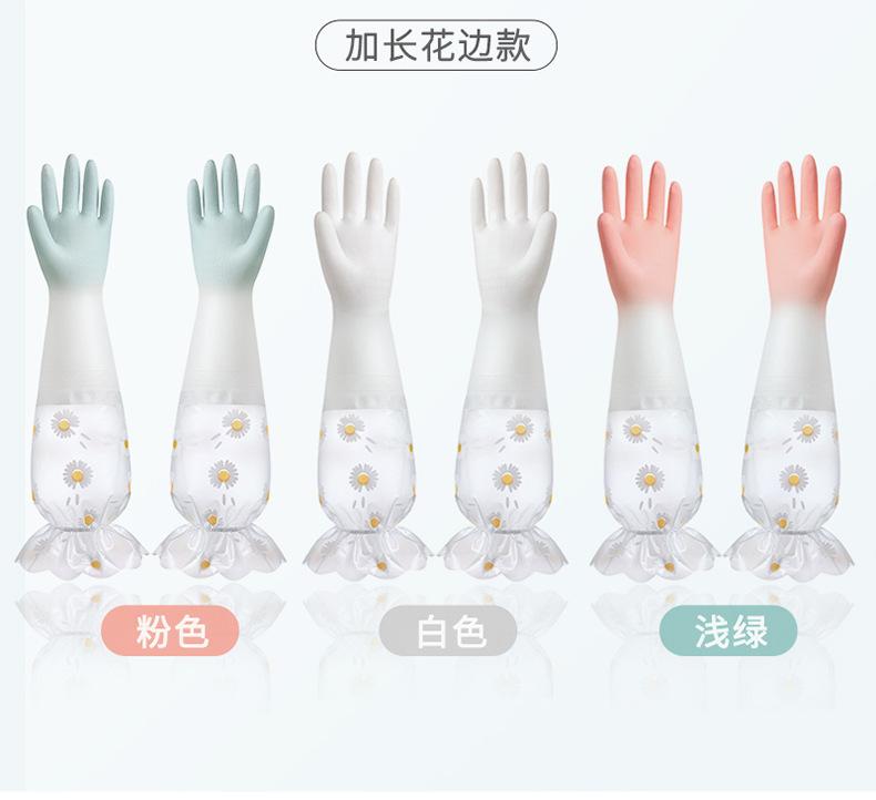 Cuatro guantes de limpieza para lavavajillas, cálidos, forrados con vellón, impermeables, resistentes al desgaste, alargados y gruesos, para uso doméstico.