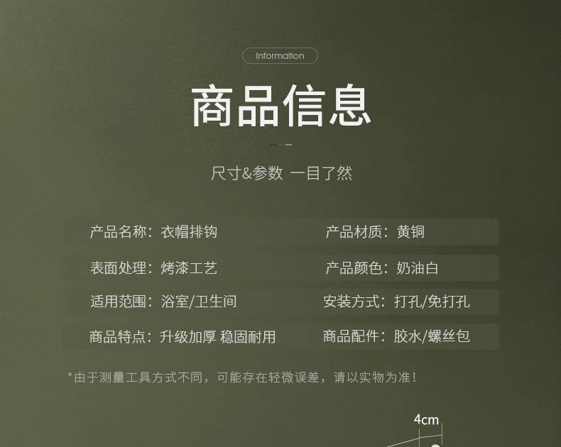 Cream white✨-full copper 4-row hook (no punching/punching installation)