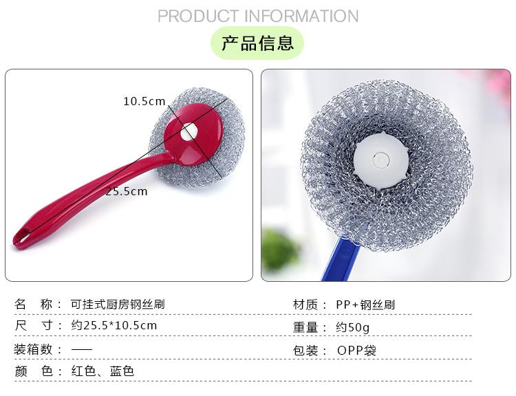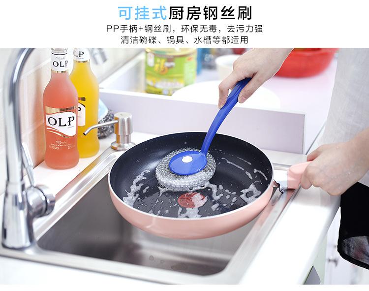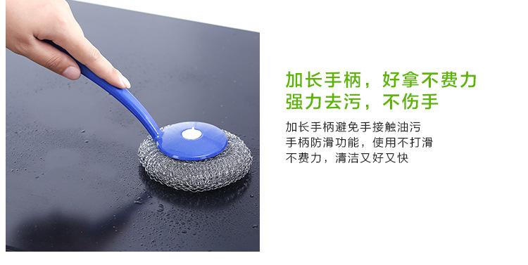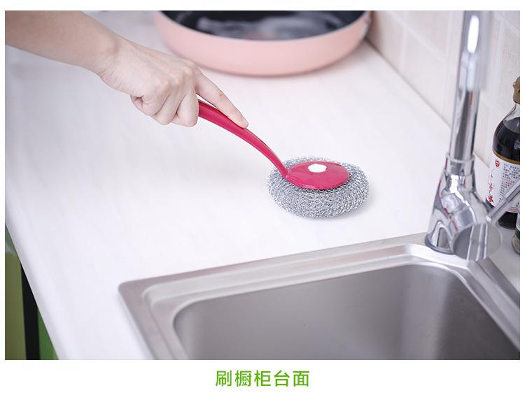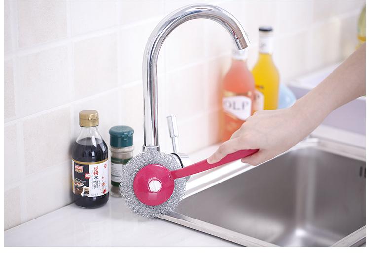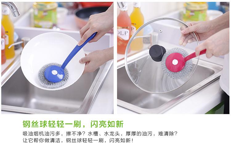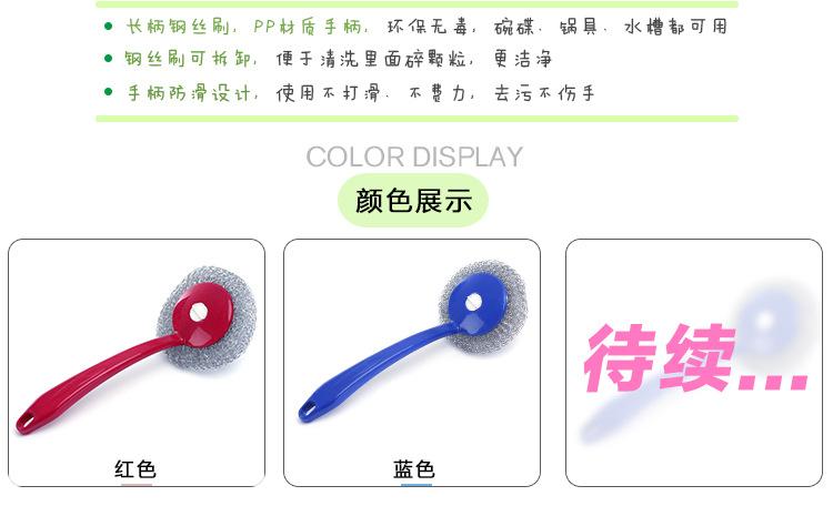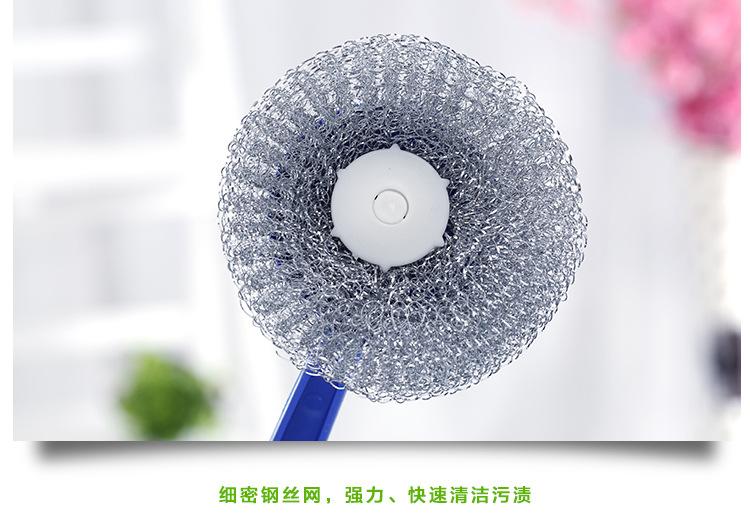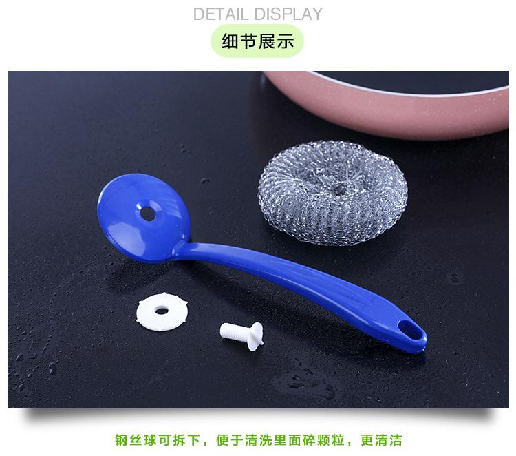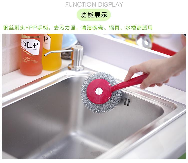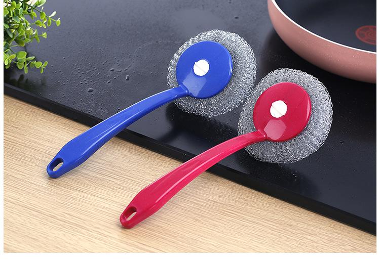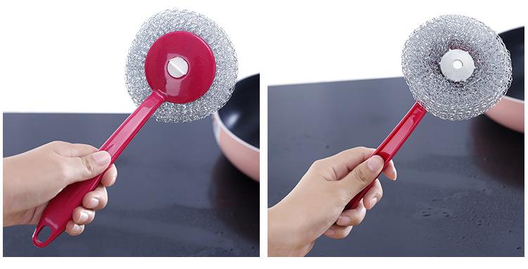 Cepillo de bola de acero con mango para lavar platos, cepillo para ollas doméstico, cepillo de mango largo con mango para limpiar bola, bola de acero