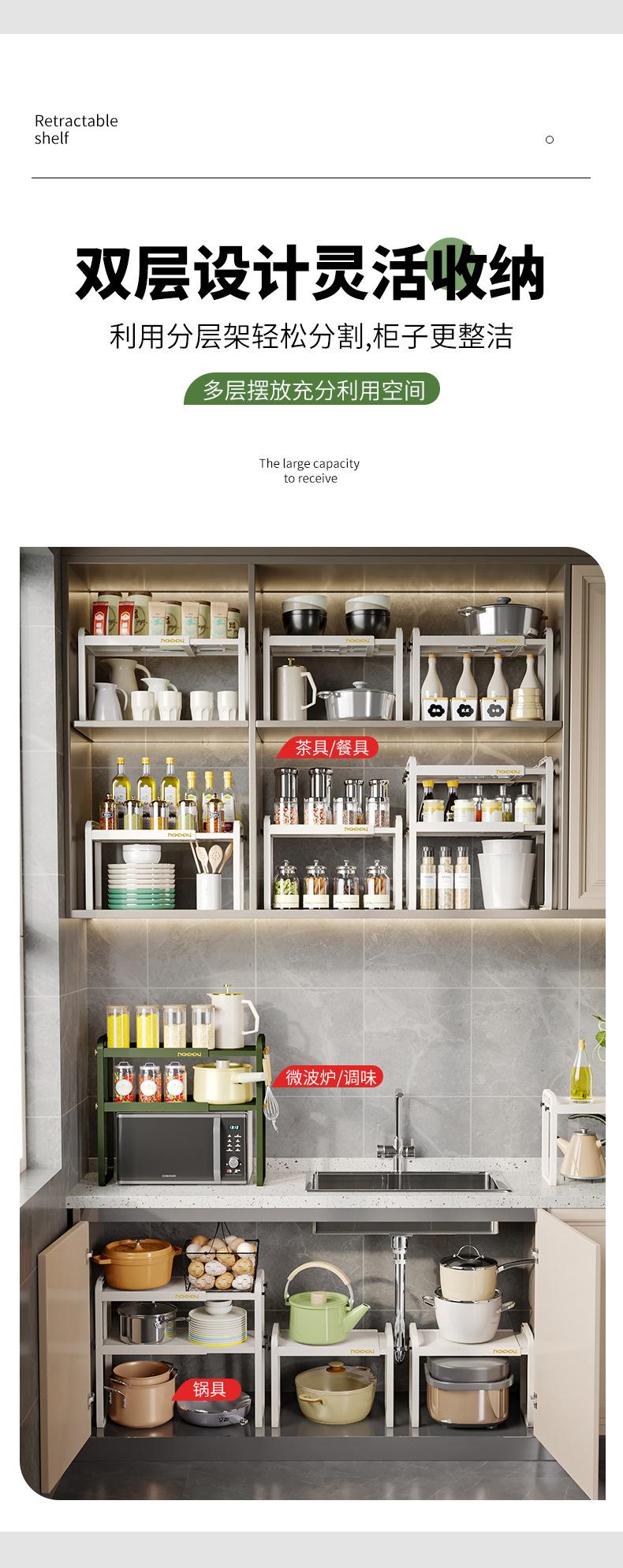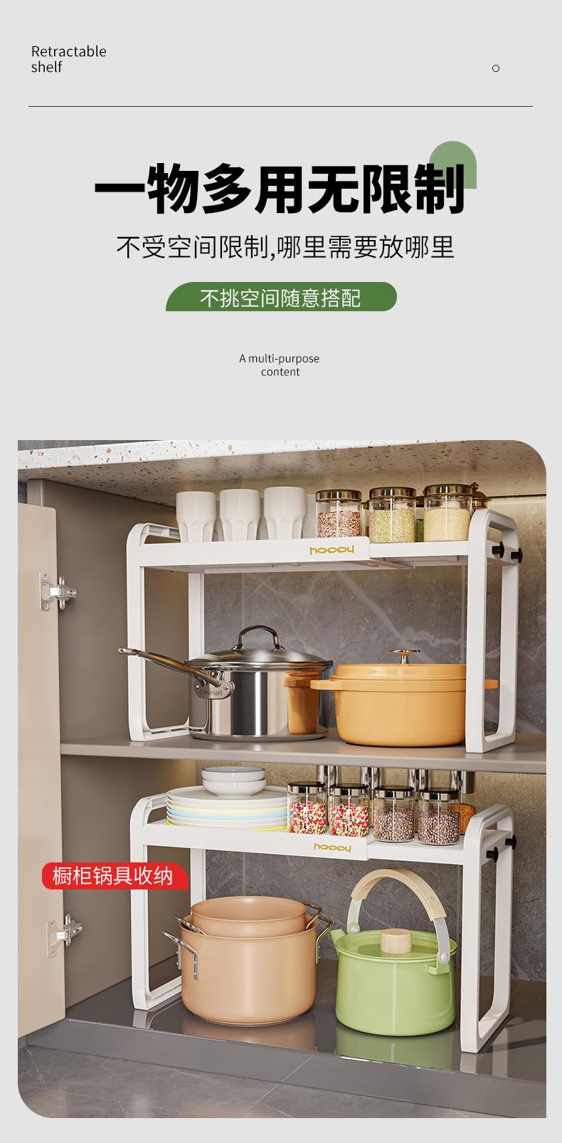 Estante de Almacenamiento Retráctil para Cocina Baño Encimera Gabinete Partición Estante de Capas Estante de Plástico para Almacenamiento Soporte para Ollas Estante Pequeño de Escritorio