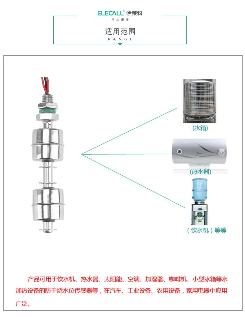 Interruptor de flotador pequeño de acero inoxidable 304 resistente a altas temperaturas Eleco, sensor controlador de nivel de agua automático