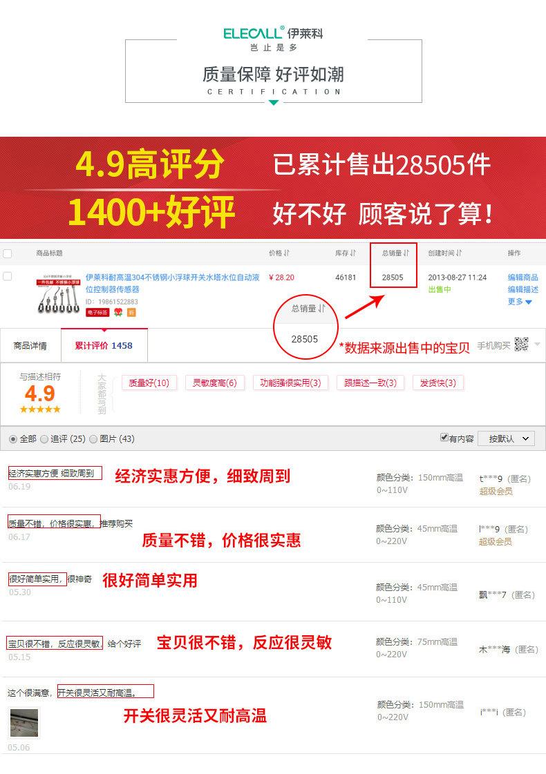 Compra Interruptor de flotador pequeño de acero inoxidable 304 resistente a altas temperaturas Eleco, sensor controlador de nivel de agua automático al por mayor en Joom.pro