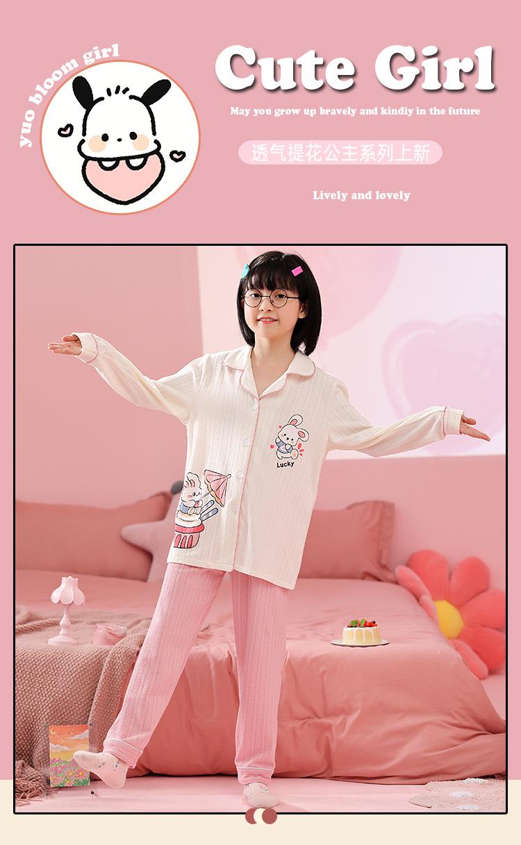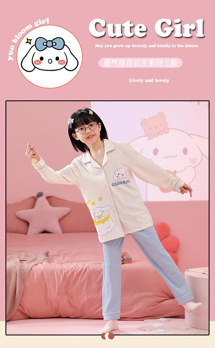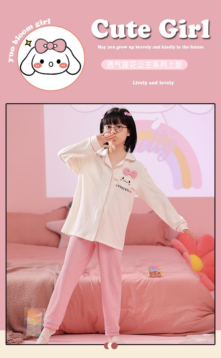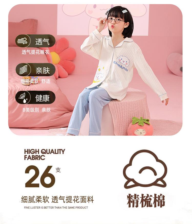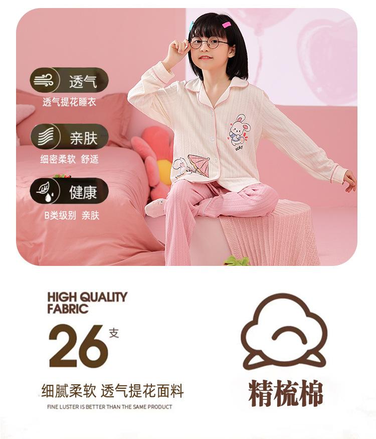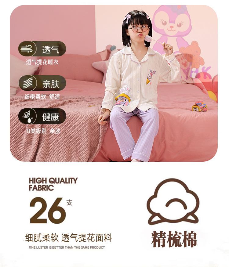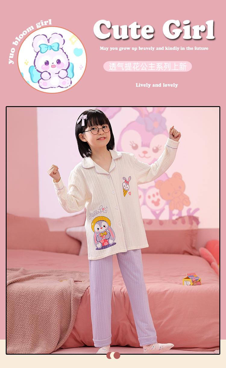 Pijama cárdigan de algodón peinado con solapa de jacquard de manga larga para niña de primavera y otoño, traje de princesa para bebé de otoño, ropa de casa