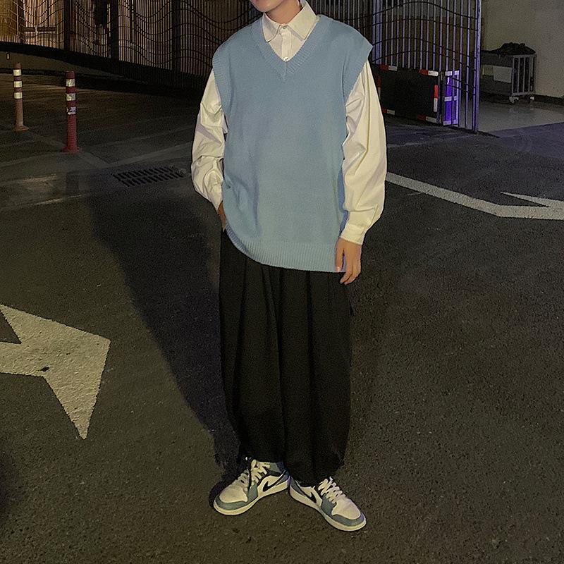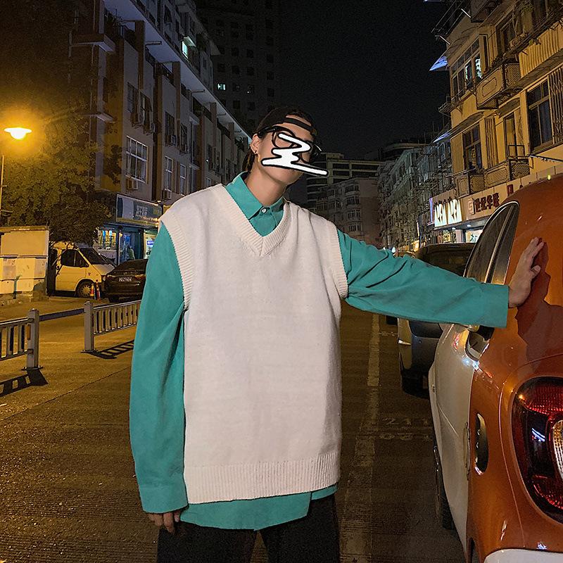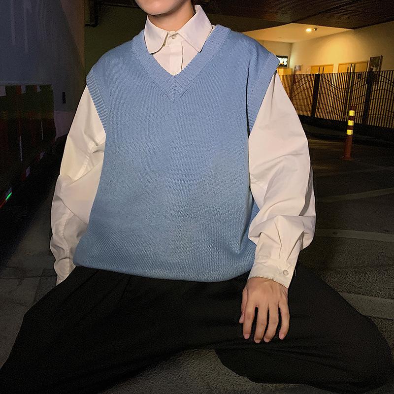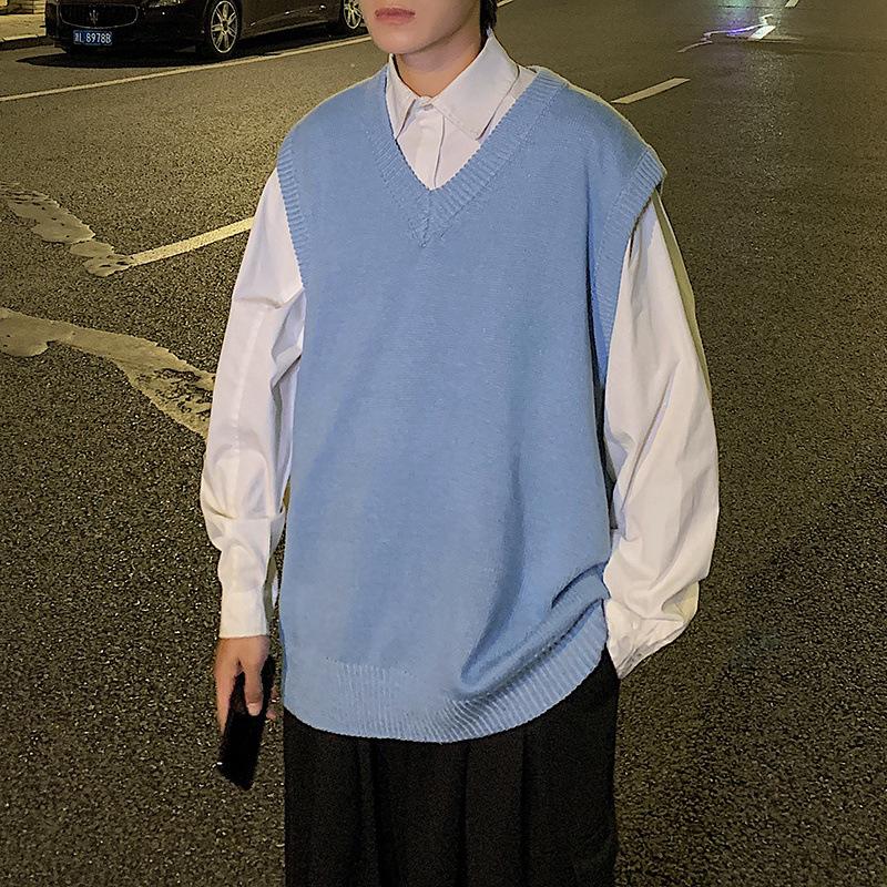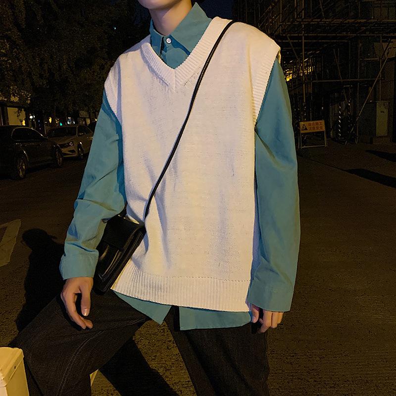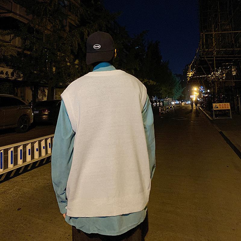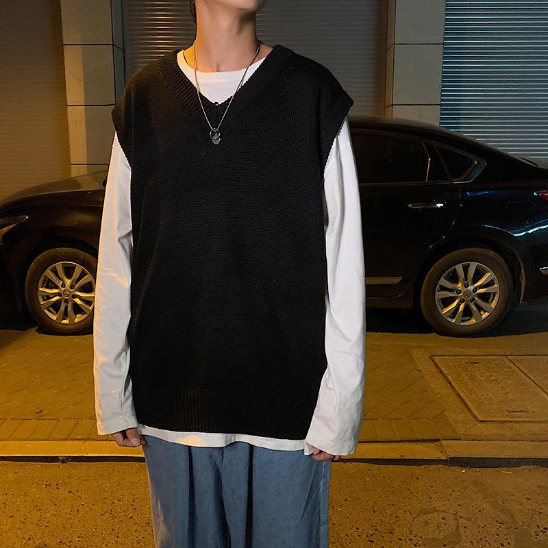 Chaleco Suéter Estilo Hong Kong 2024 para Hombre Primavera y Otoño Estilo Coreano Holgado Sin Mangas Chaqueta Marca Trendy Chaleco Tejido Ropa Exterior de Cintura Ropa de Hombre